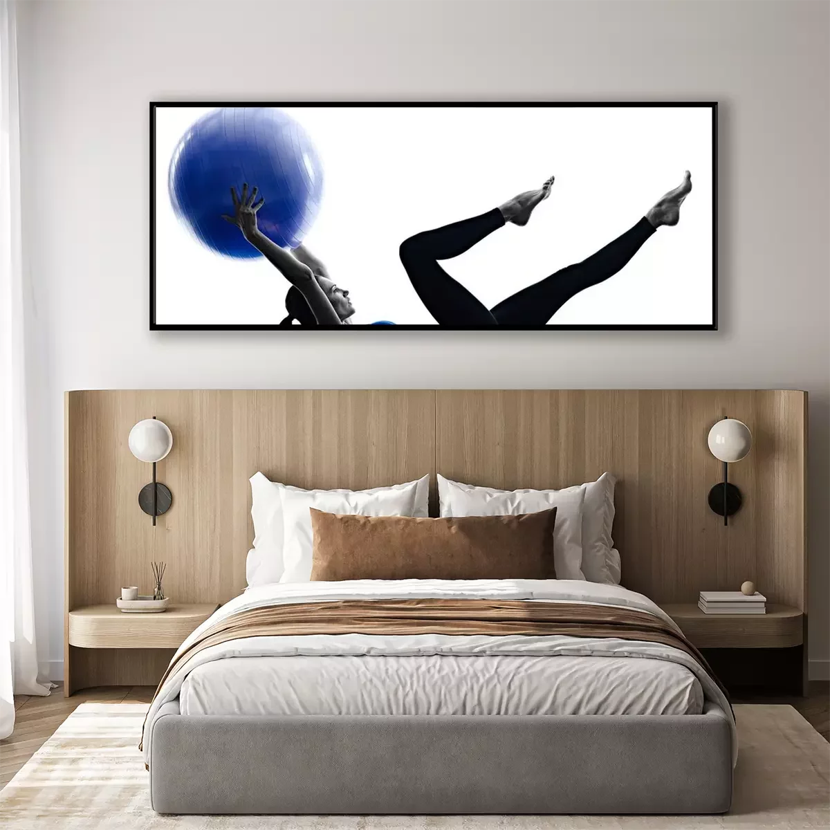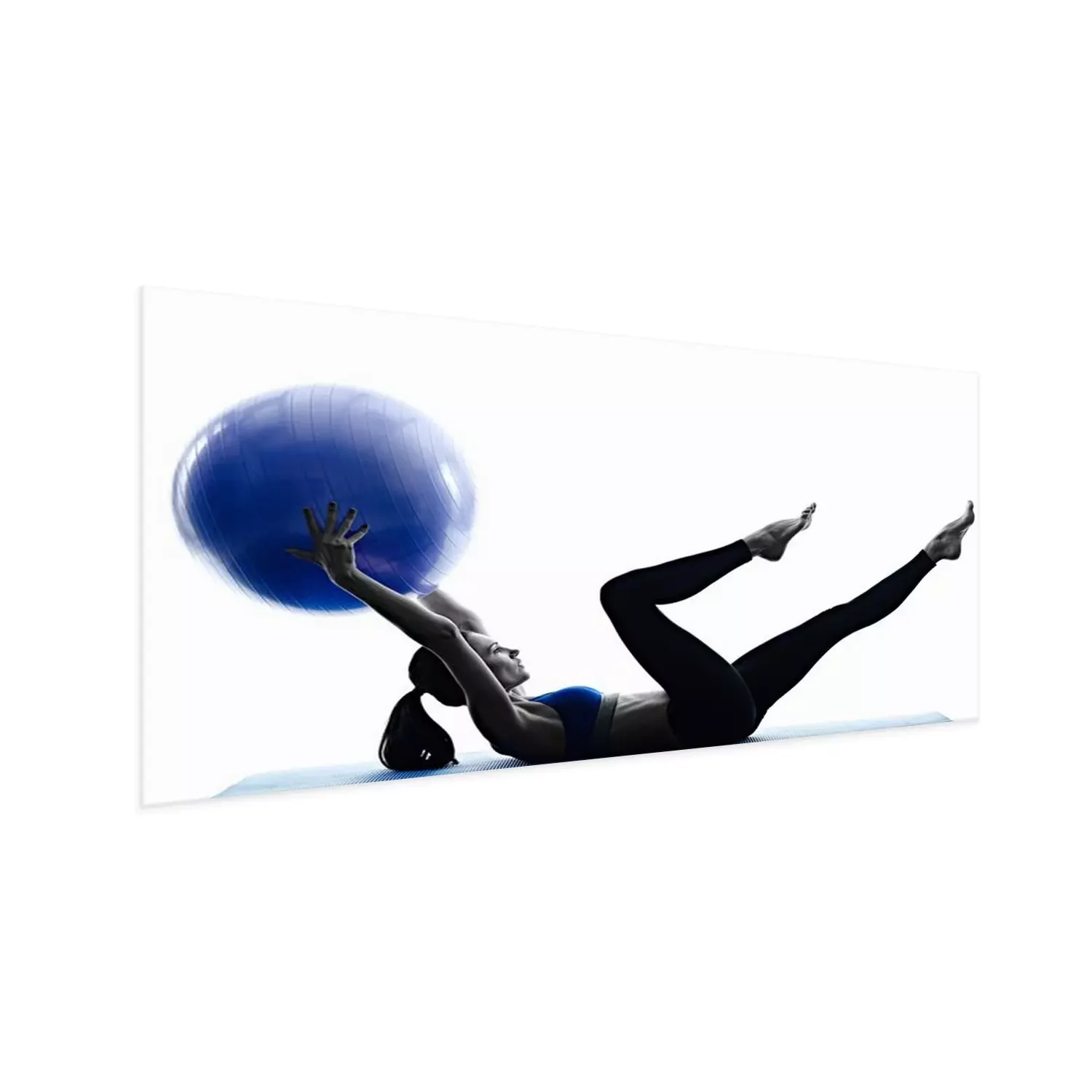 Poster : Femme, pilates, balle, exercices, aptitude, isolé