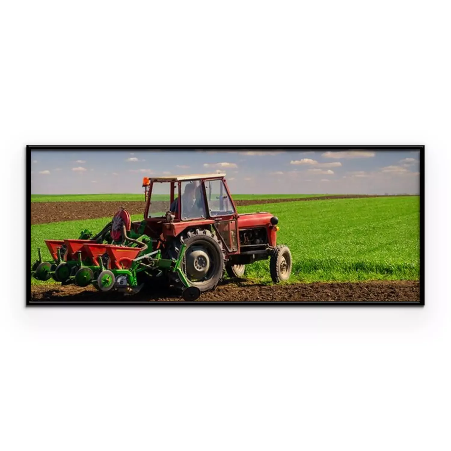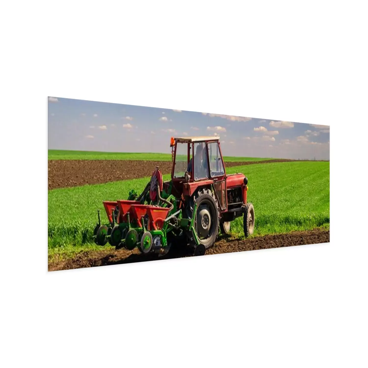 Poster  Fermier, tracteur, ensemencement, agricole, Champs, ensoleillé, sprin