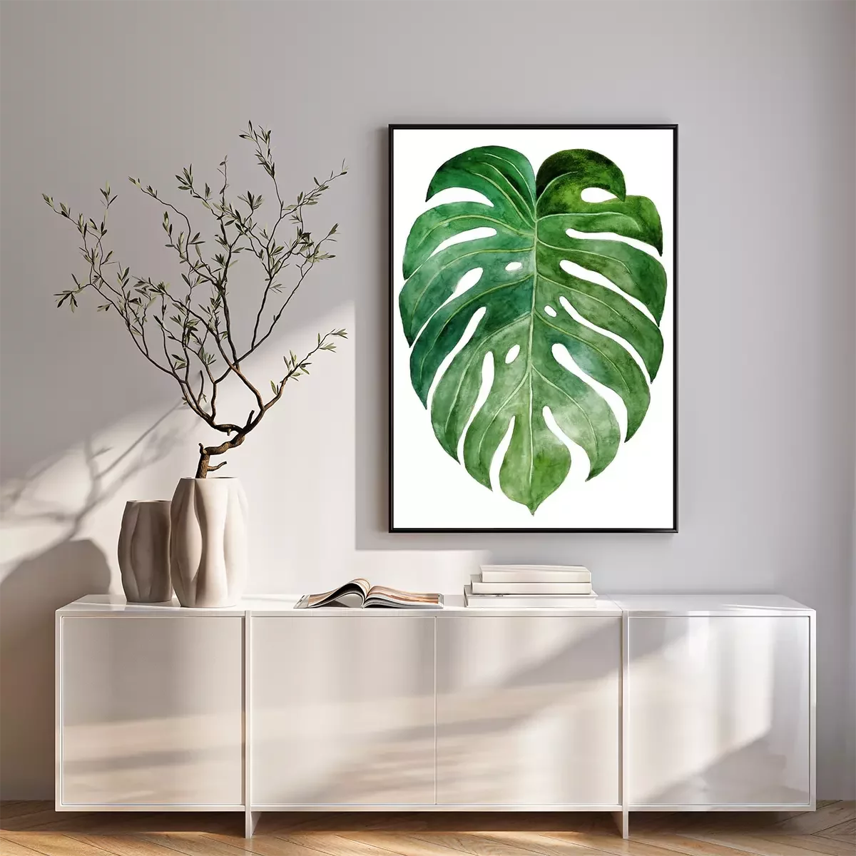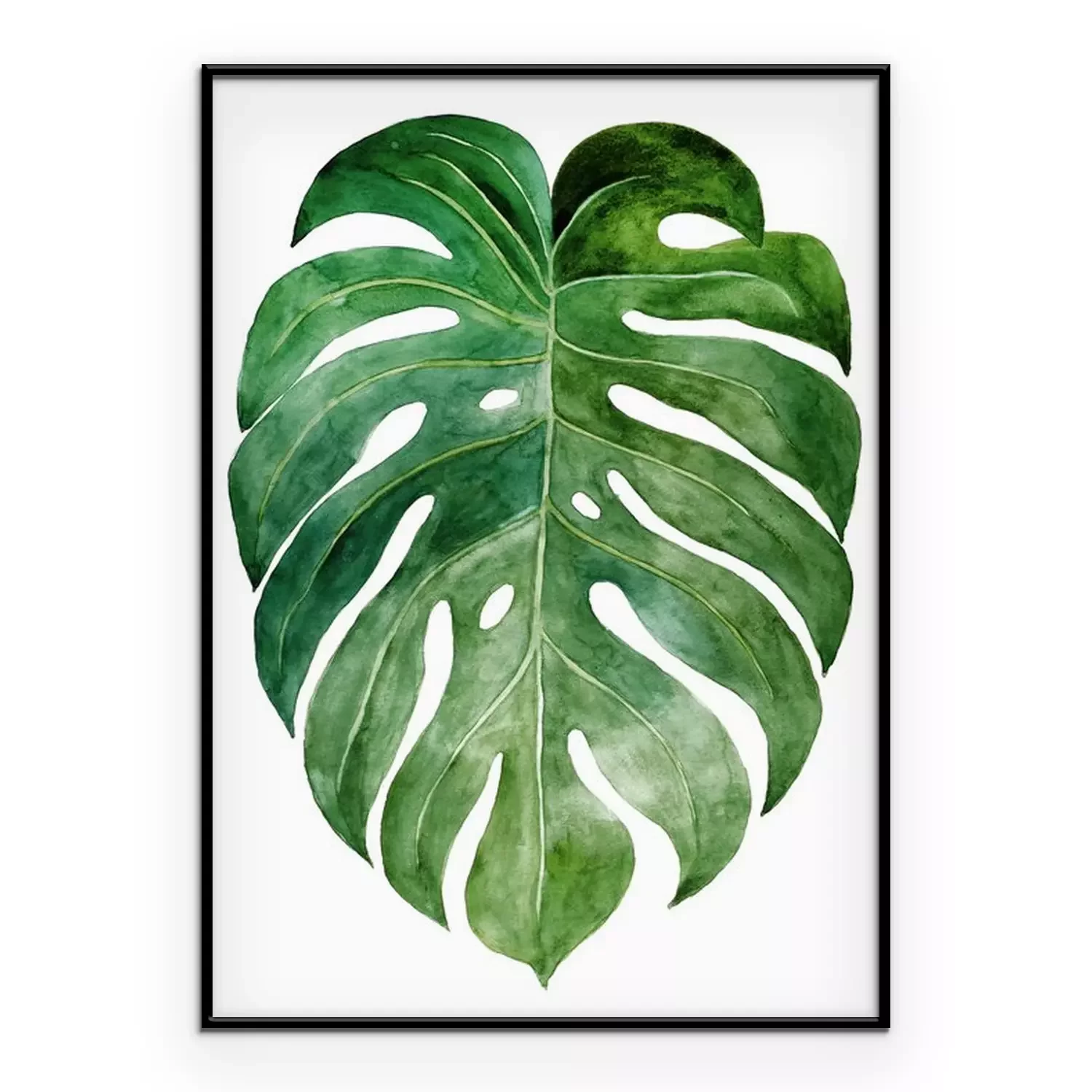 Beautiful watercolor tropical leaves painted on white paper, top view