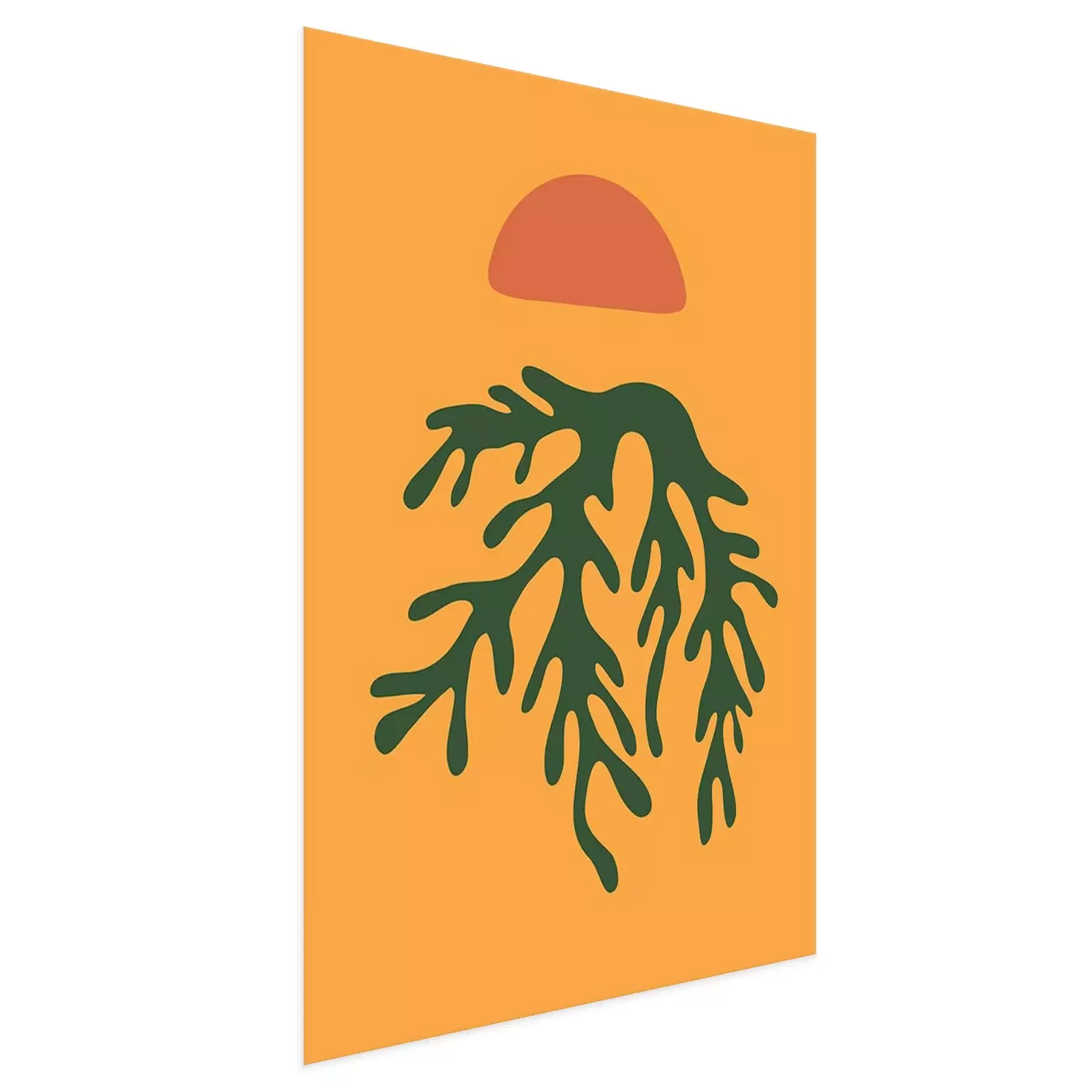 Poster : Feuille verte et lever de soleil en arrière-plan