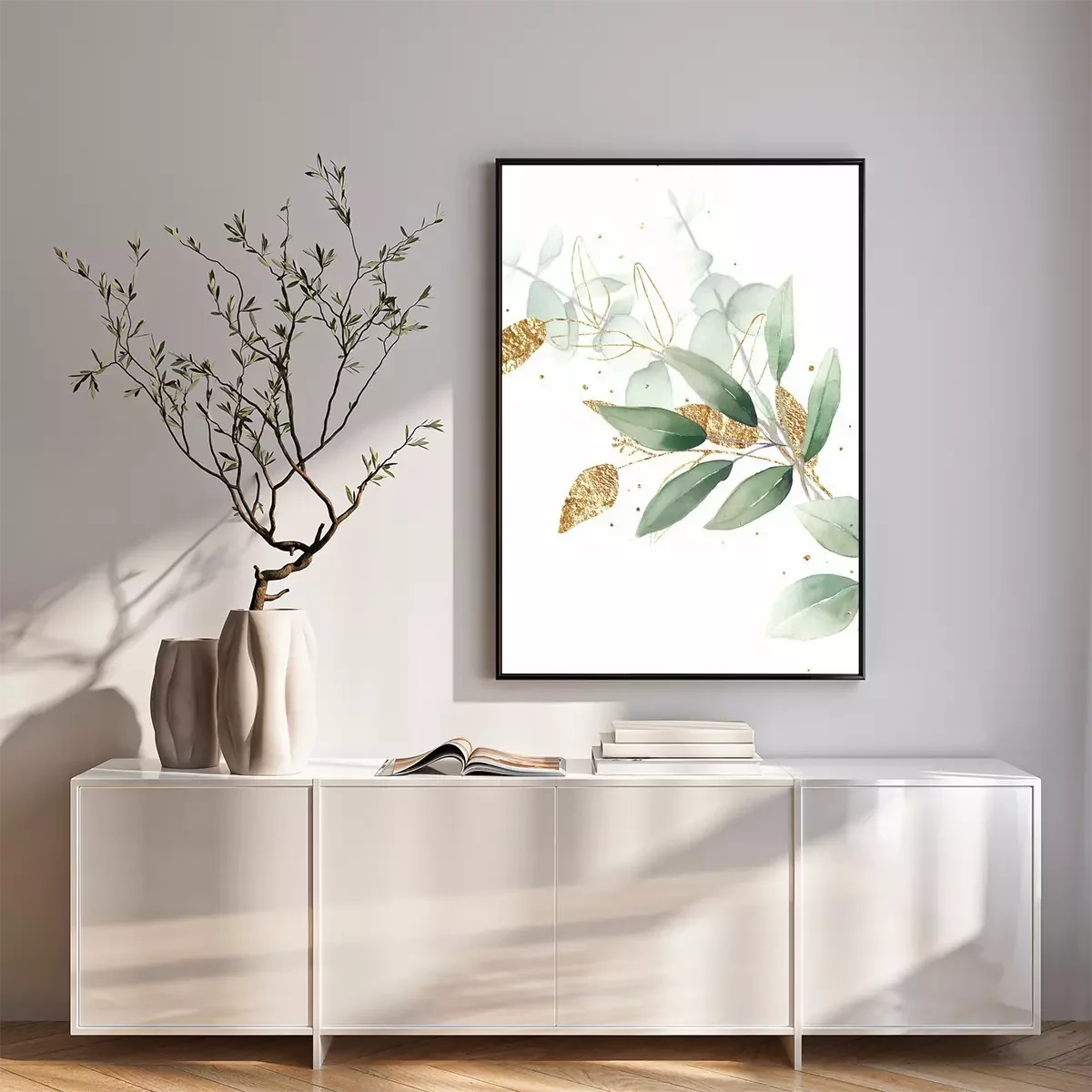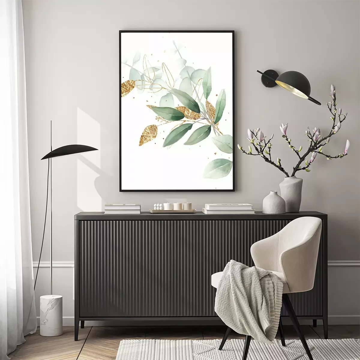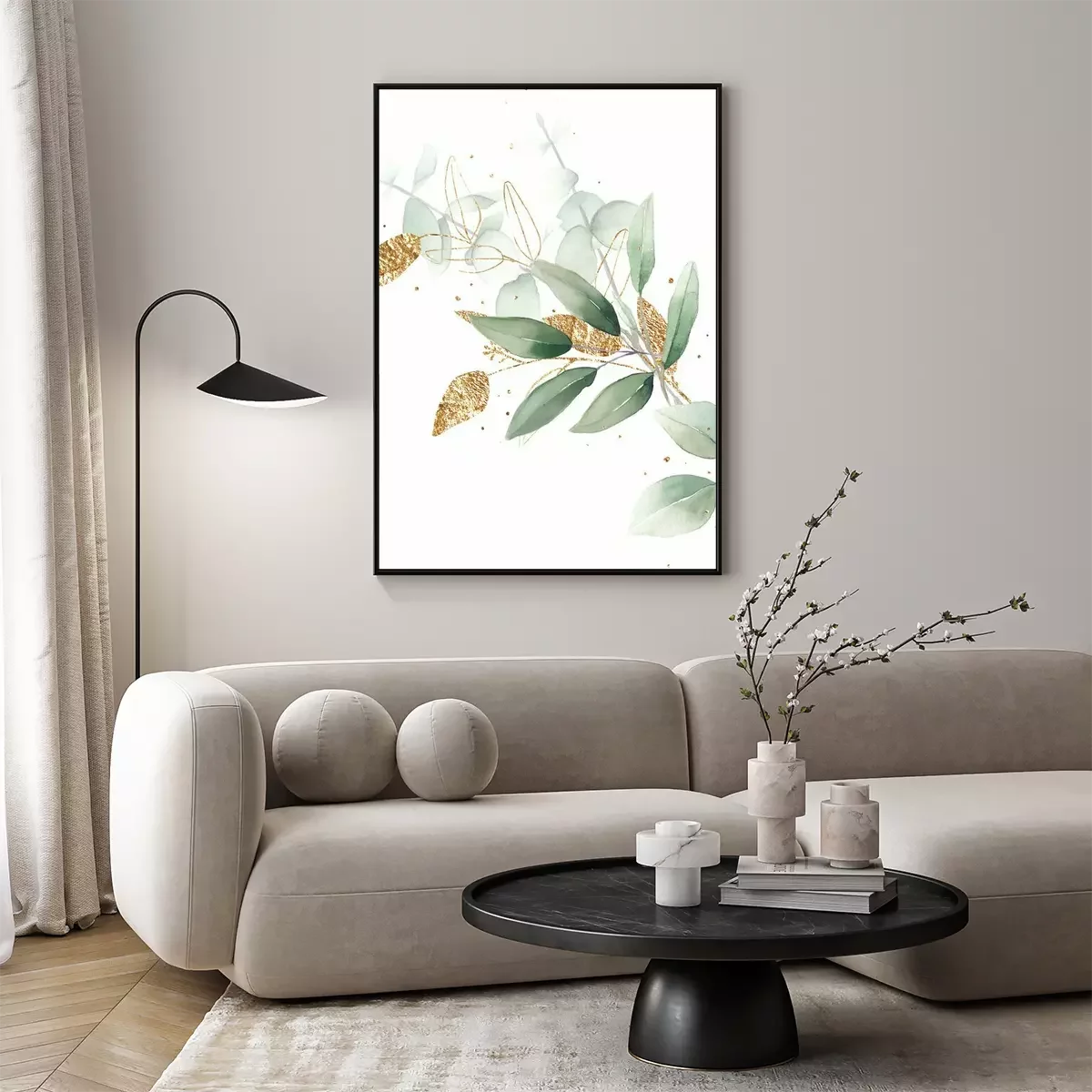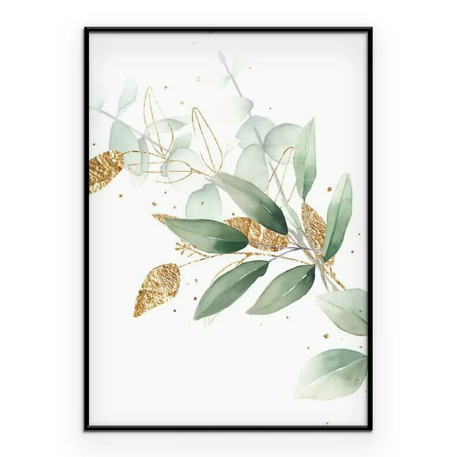 Poster  Feuilles d'aquarelle entrecoupées d'or