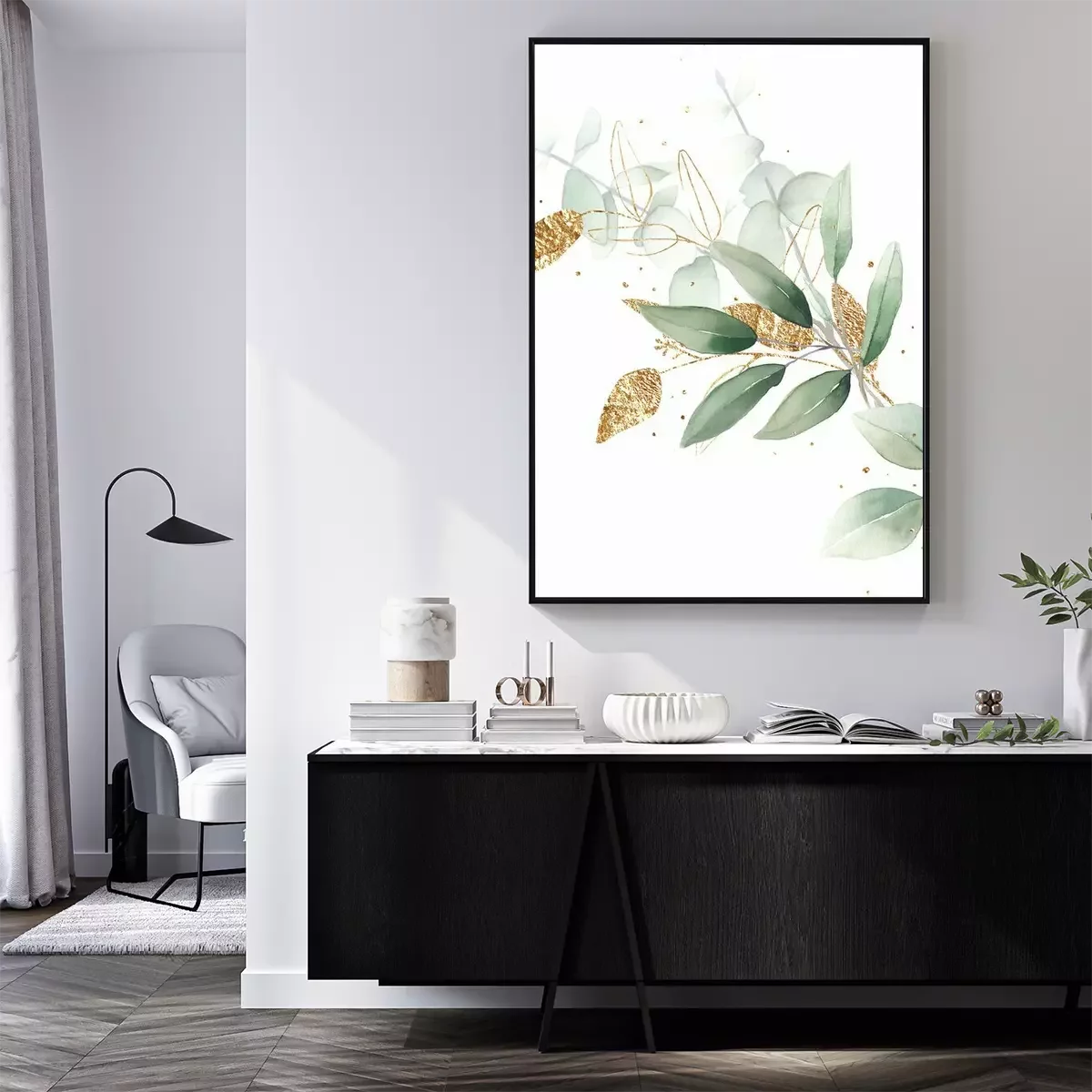 Poster : Feuilles d'aquarelle entrecoupées d'or