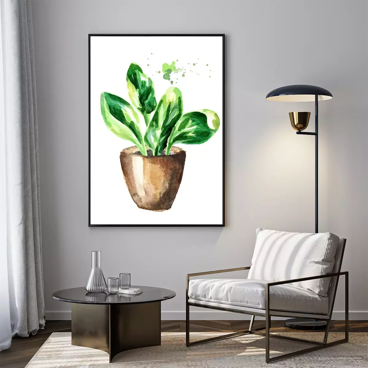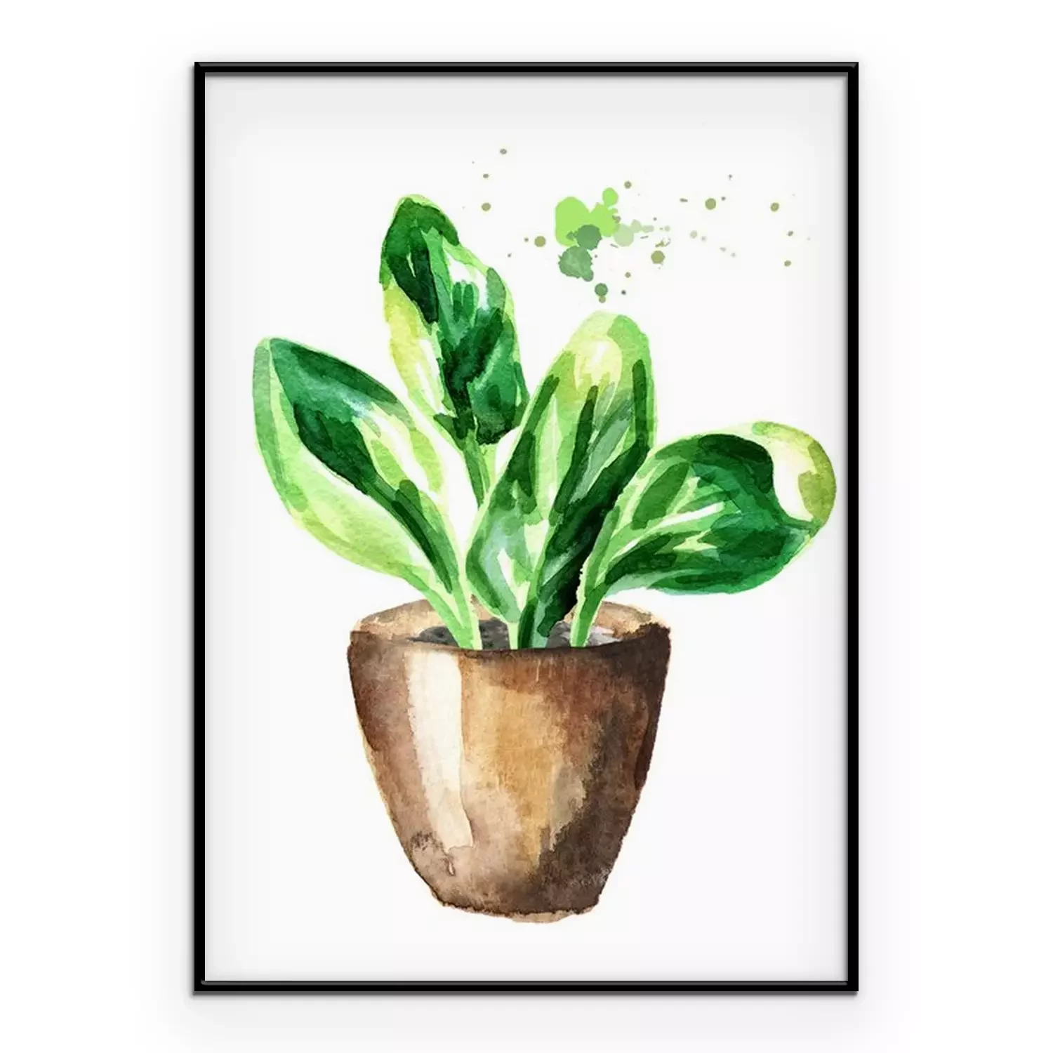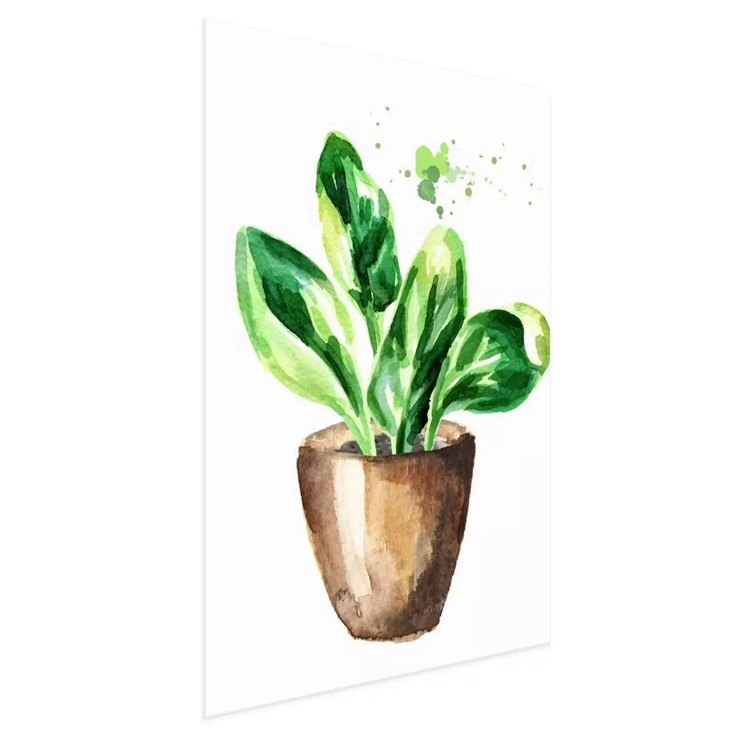 Poster : Feuilles d'aquarelle vertes dans un pot marron