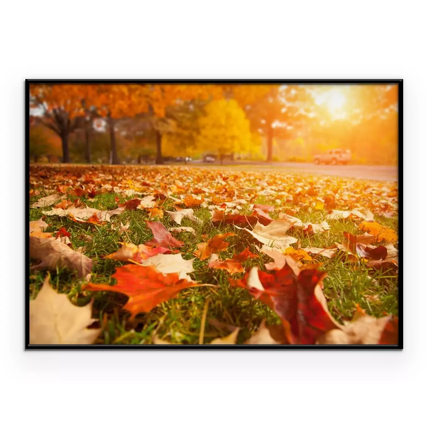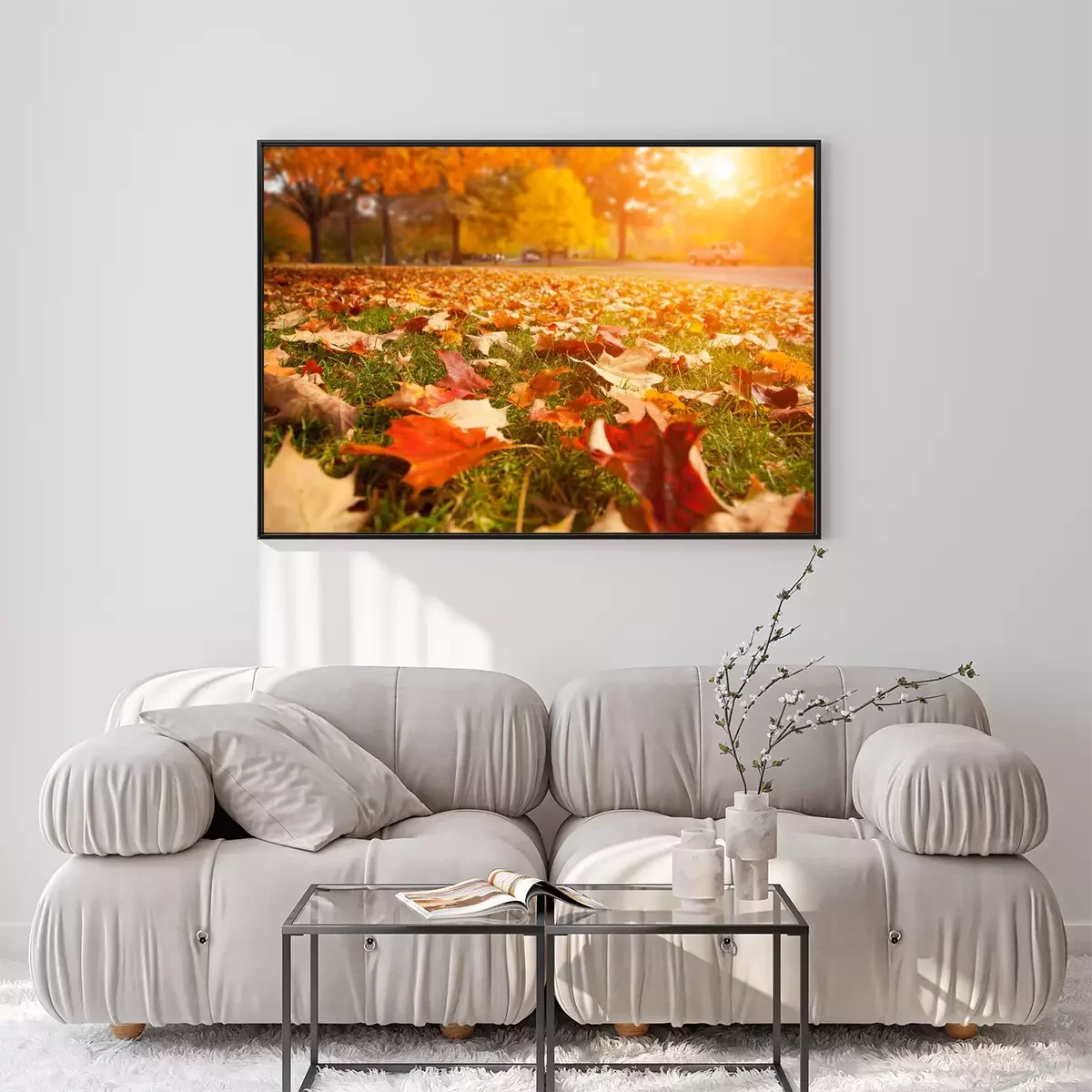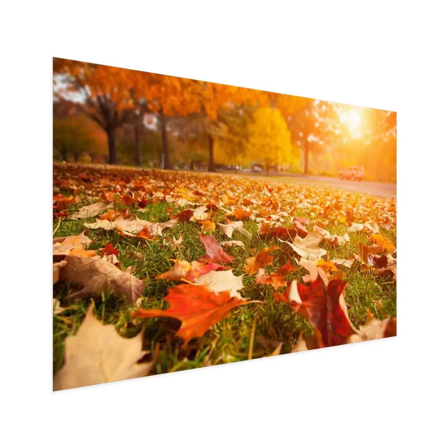 Poster : Feuilles d'automne sur l'herbe en bordure de route