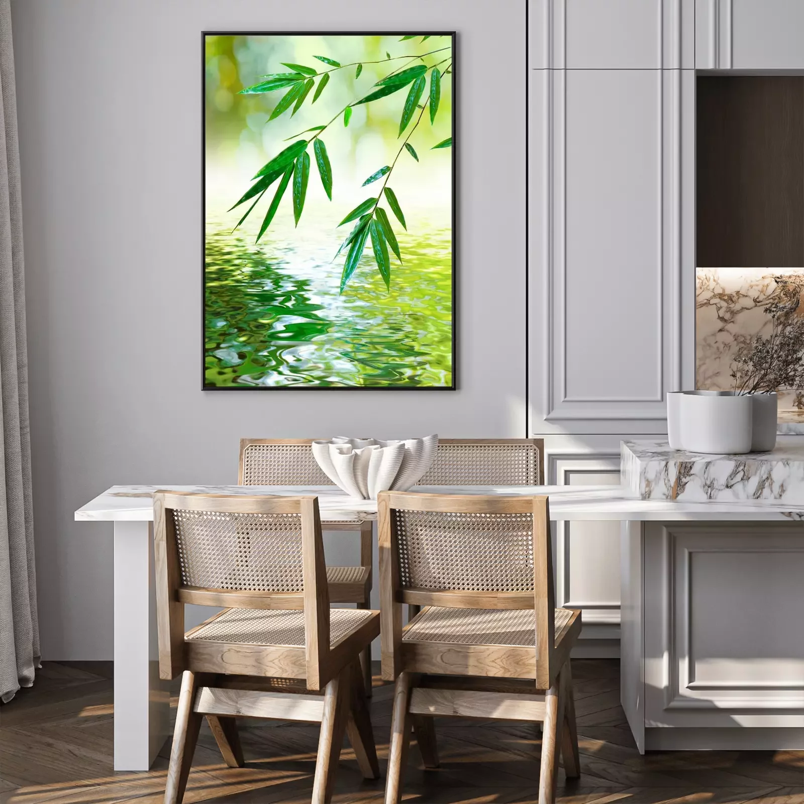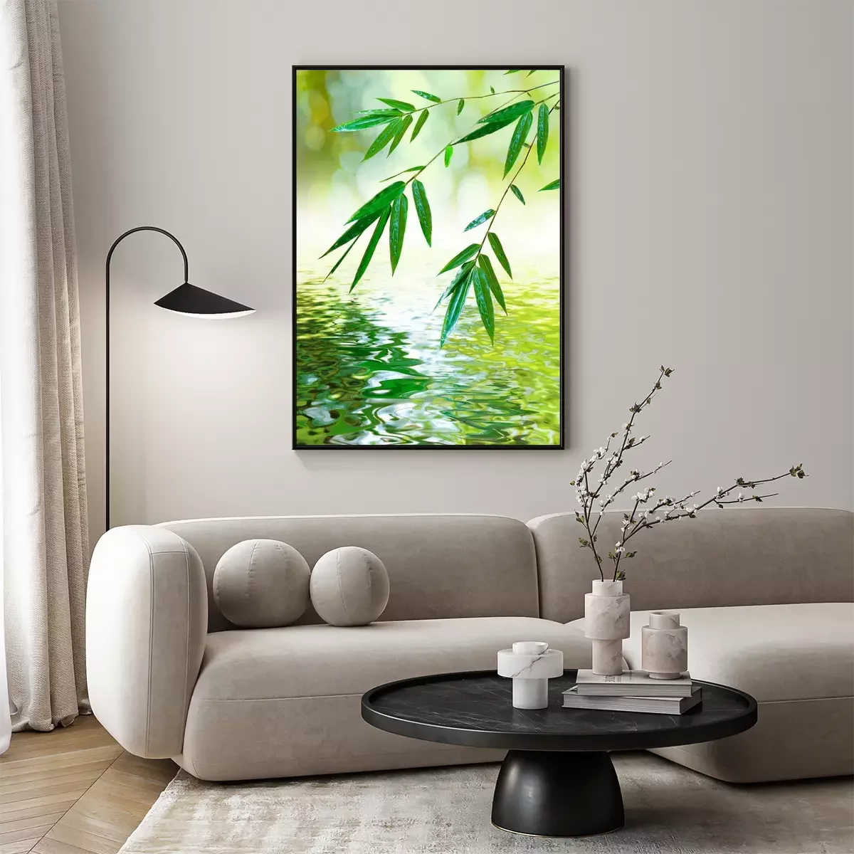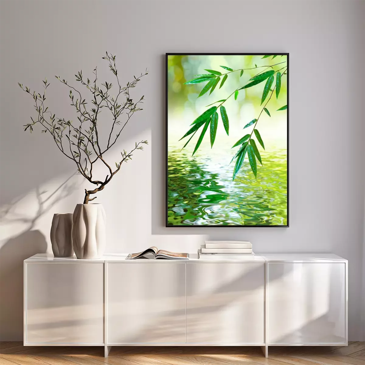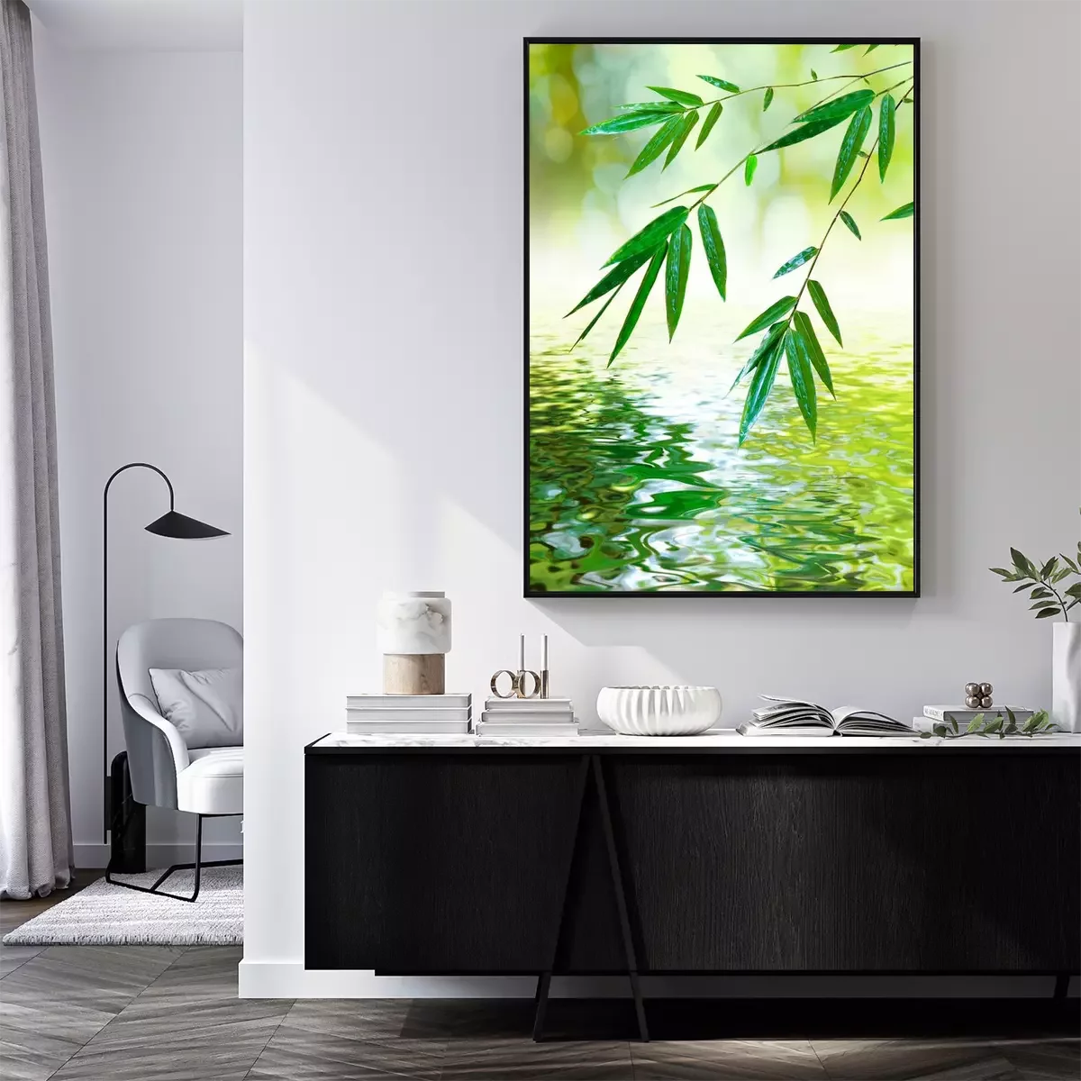 Poster : Feuilles de bambou au-dessus de l'eau calme