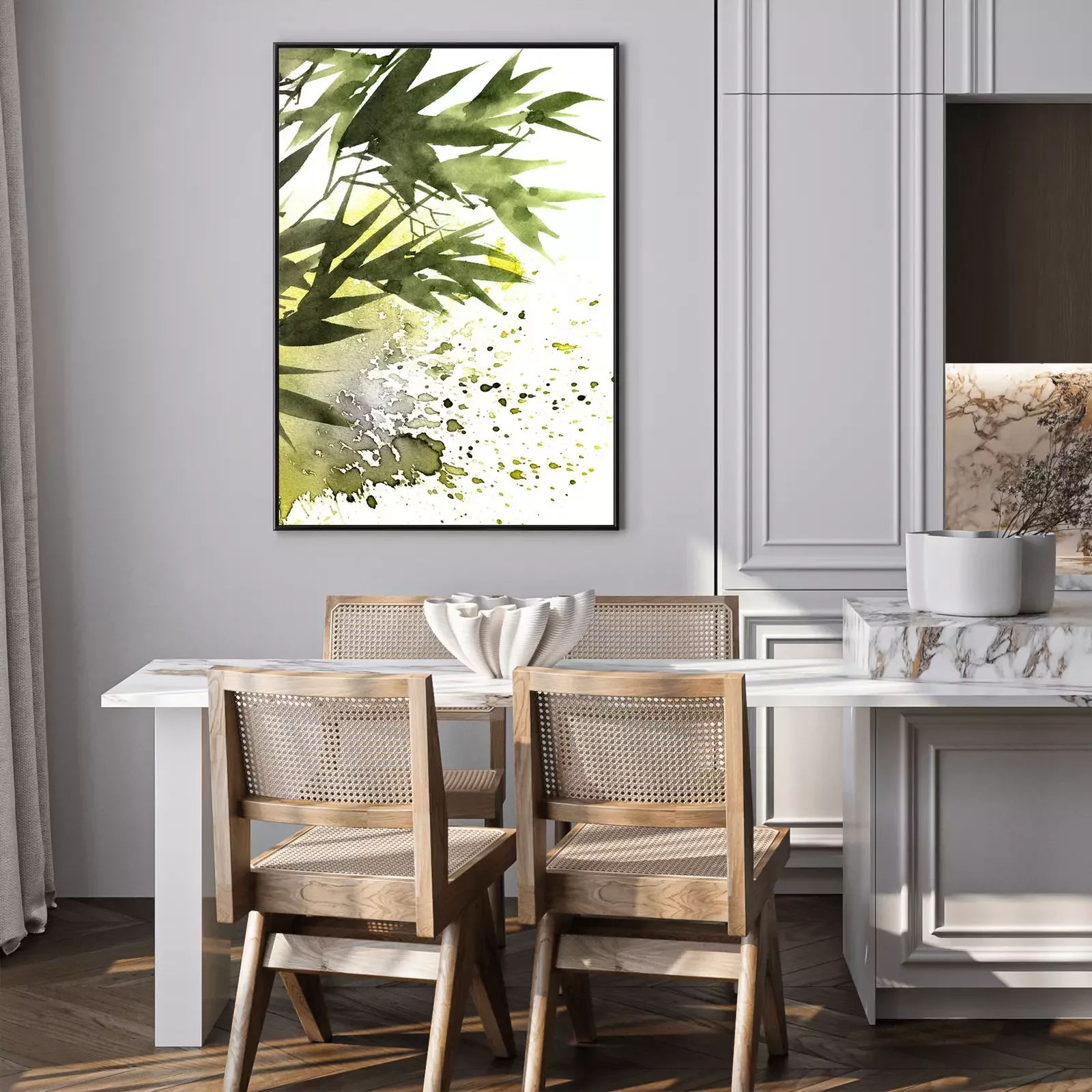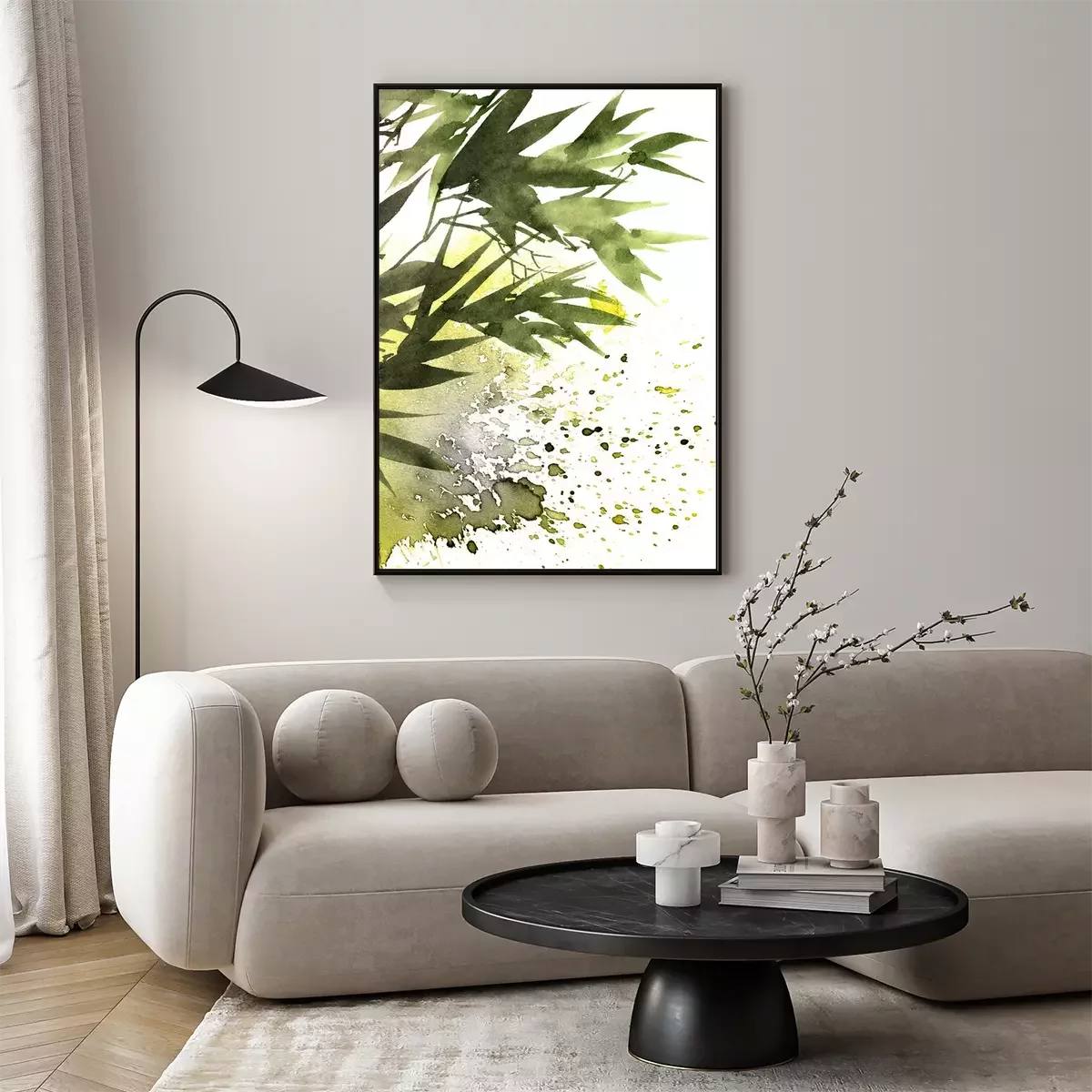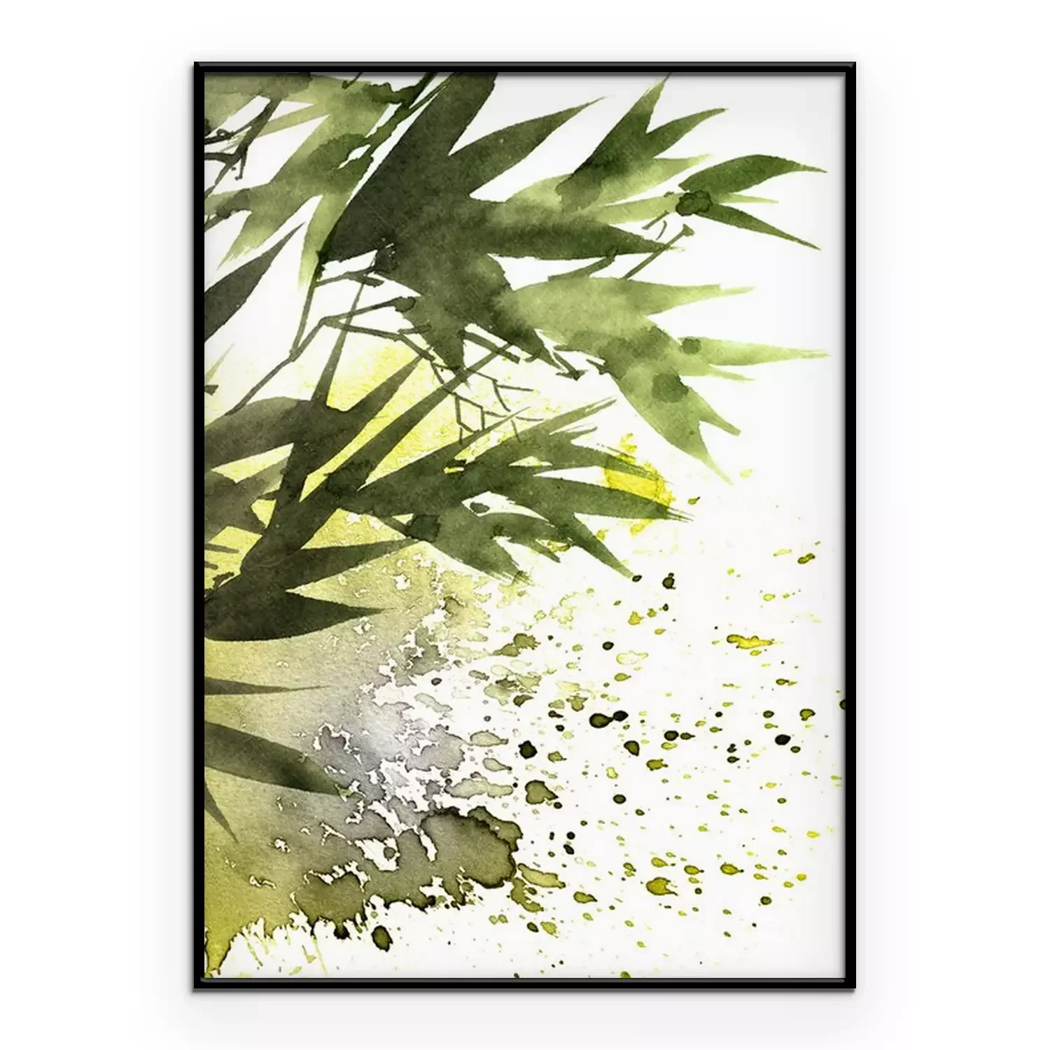 Poster  Feuilles de bambou floues avec des taches de peinture