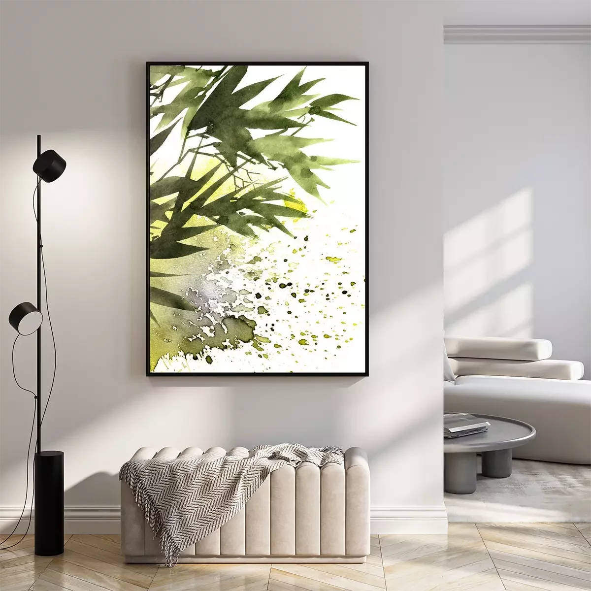 Poster : Feuilles de bambou floues avec des taches de peinture