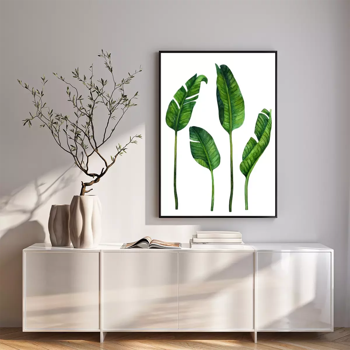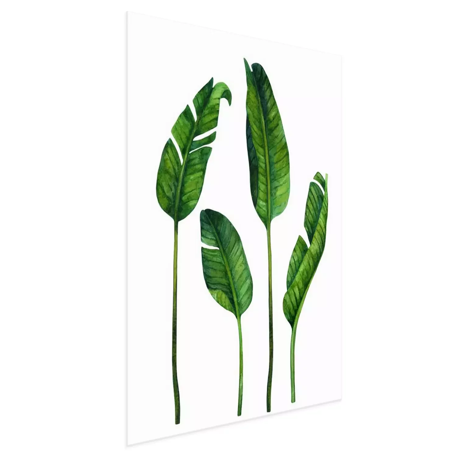 Fresh green banana leaves on white background. Tropical greenery seamless pattern