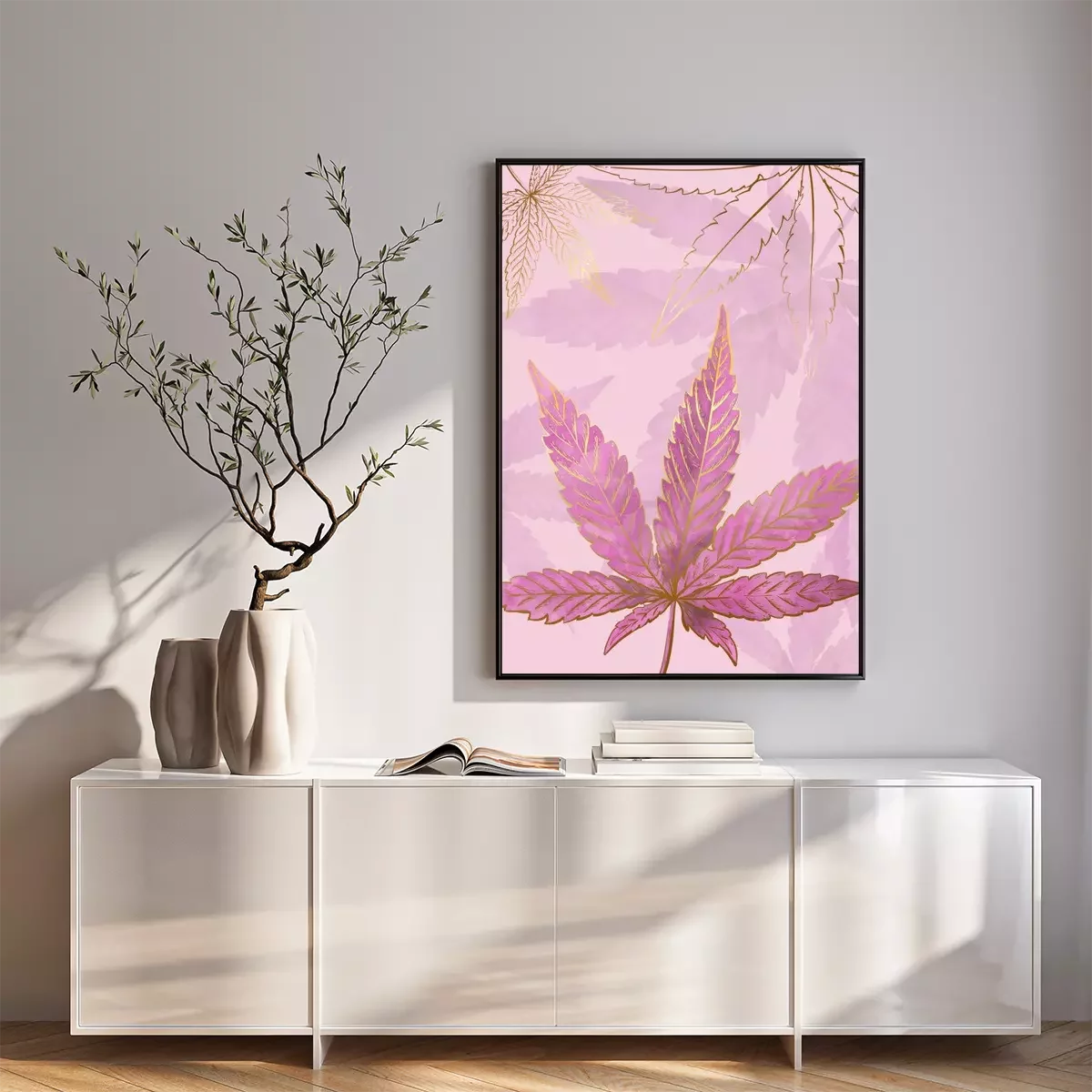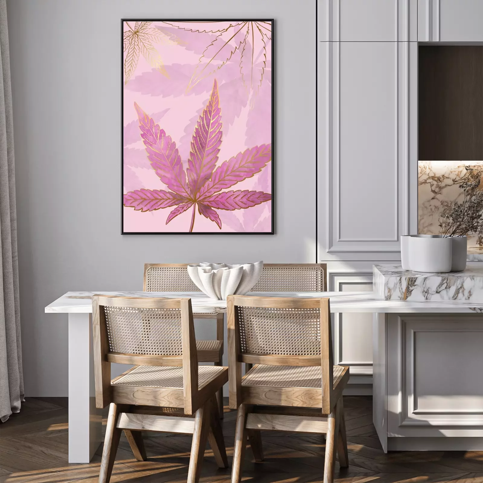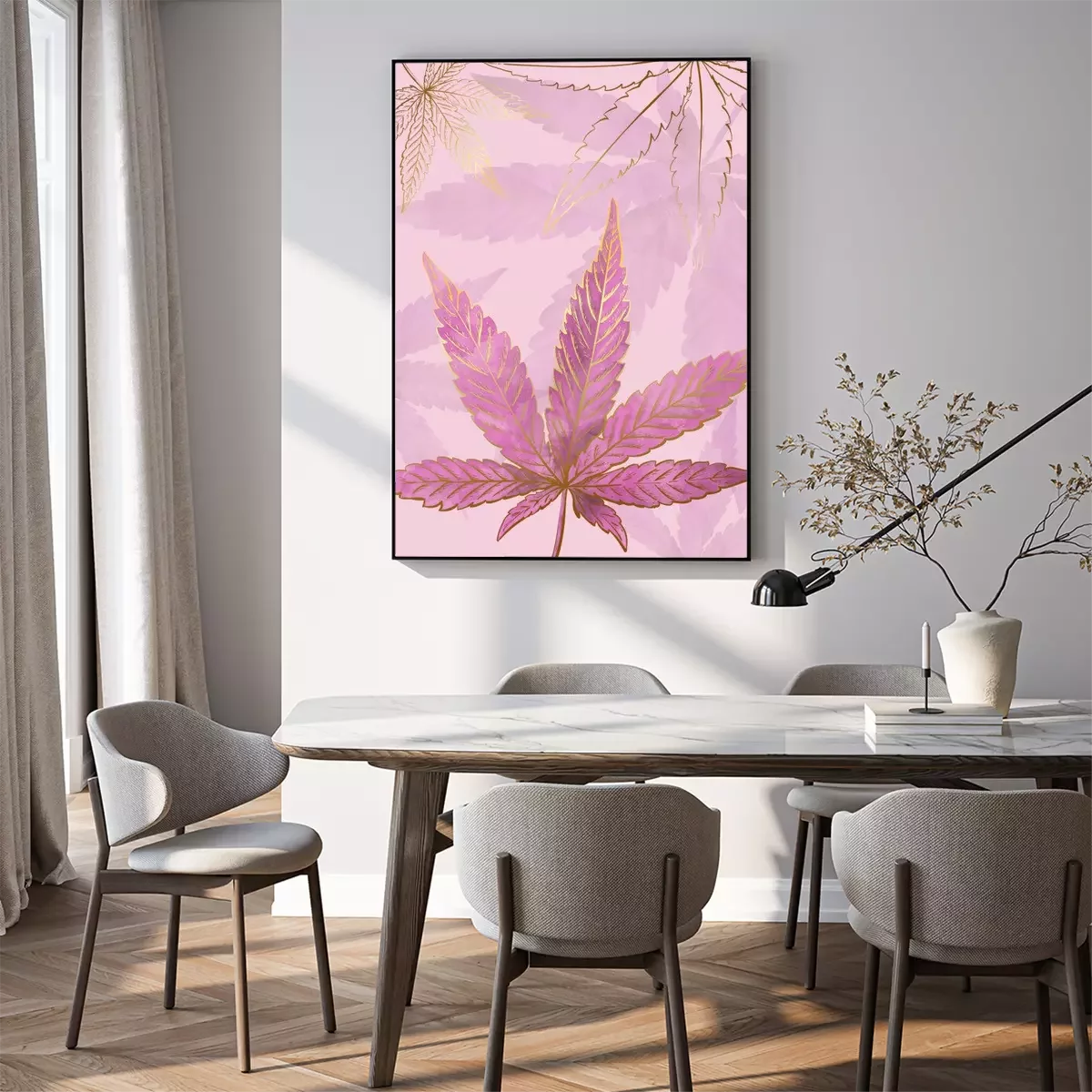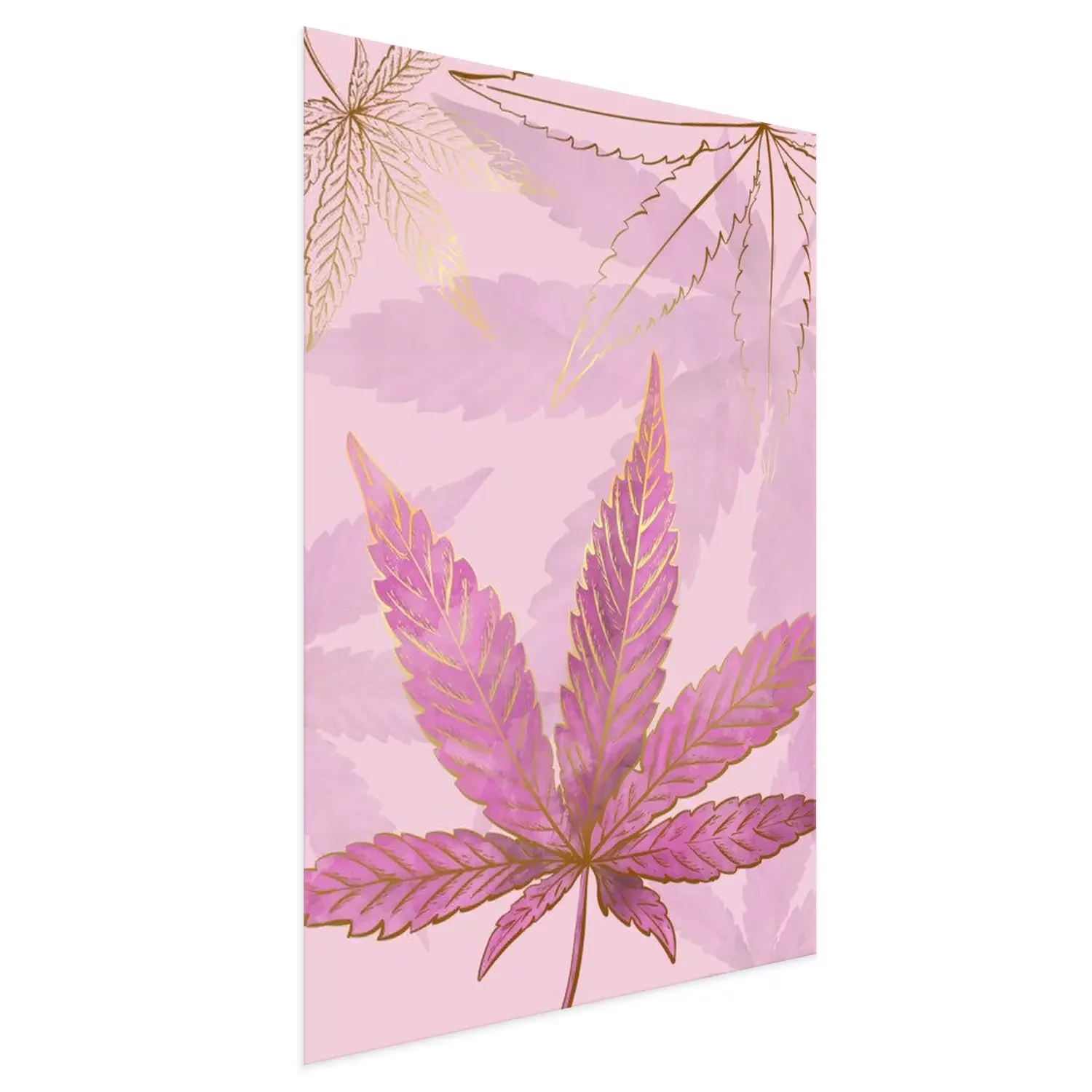 Poster : Feuilles de cannabis en or et rose
