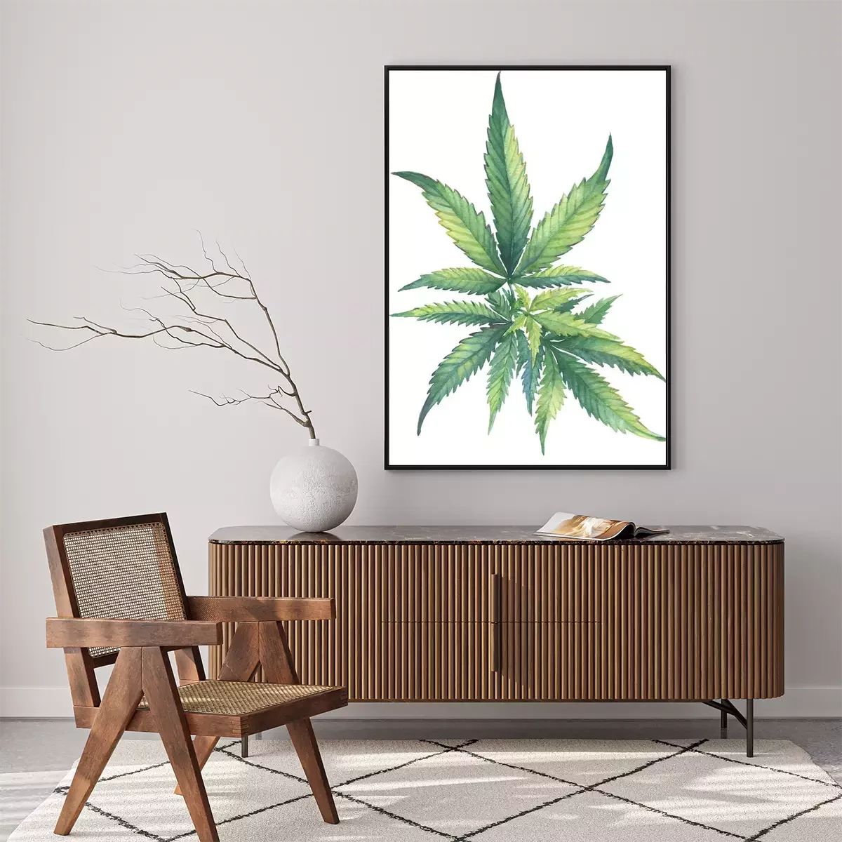 Poster : Feuilles de chanvre clair sur fond blanc