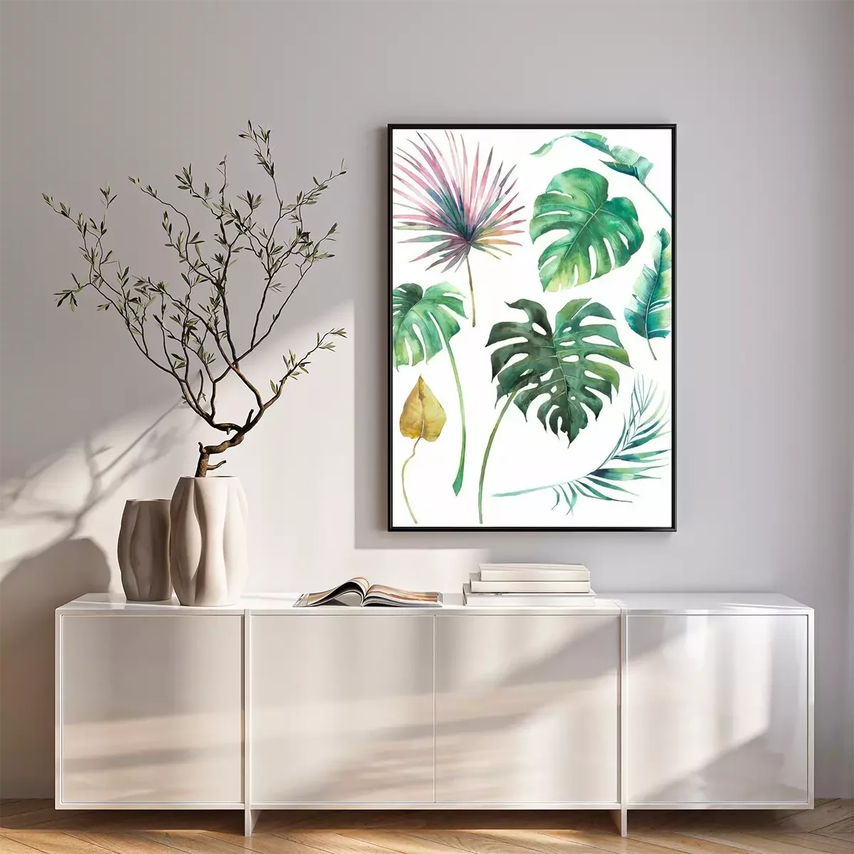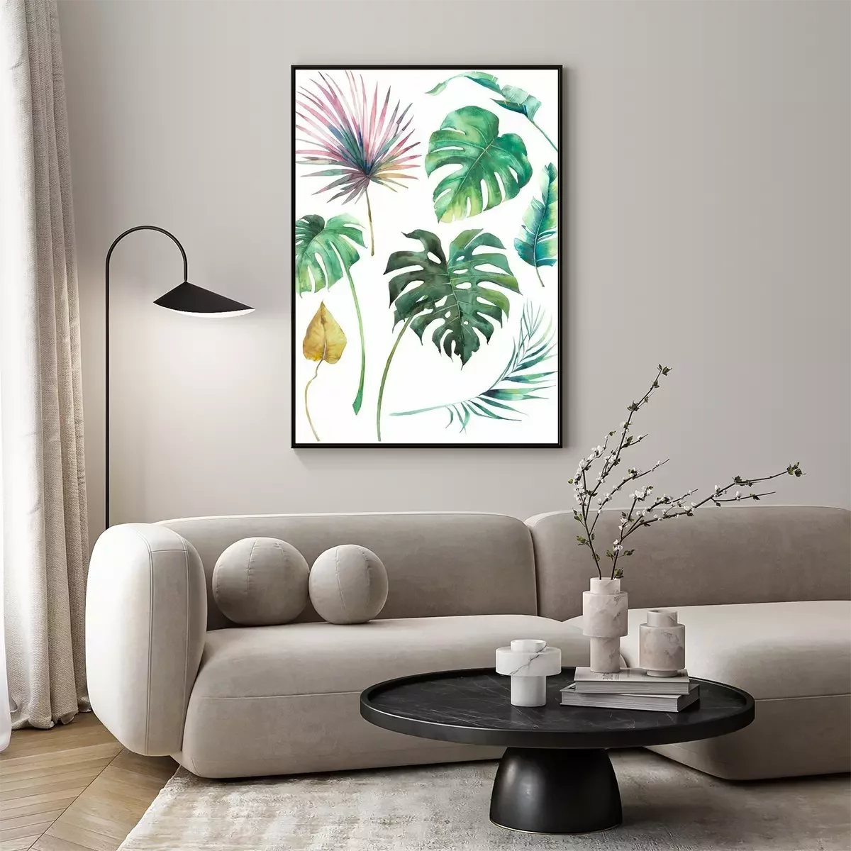 Poster : Feuilles de Monstera et palmiers colorés