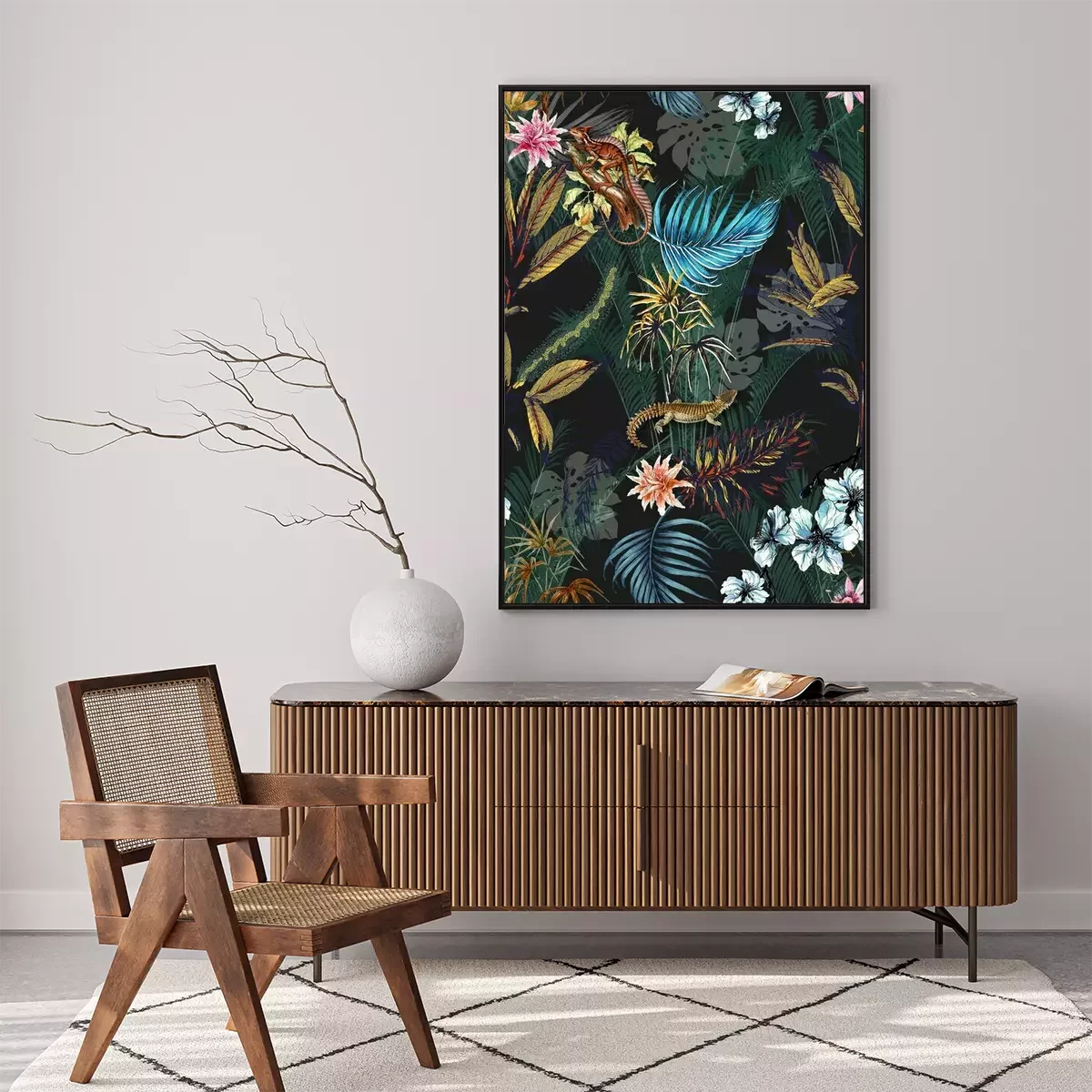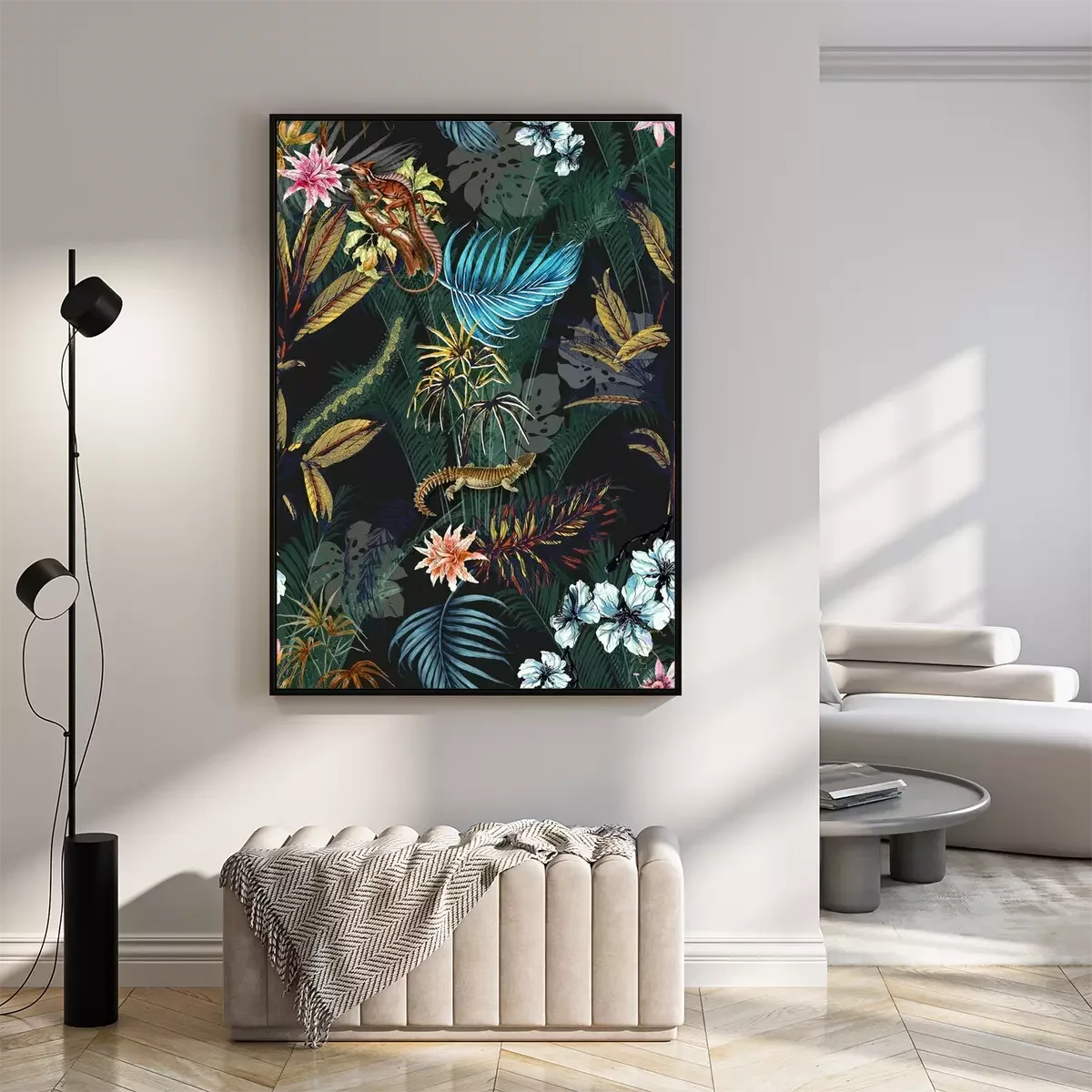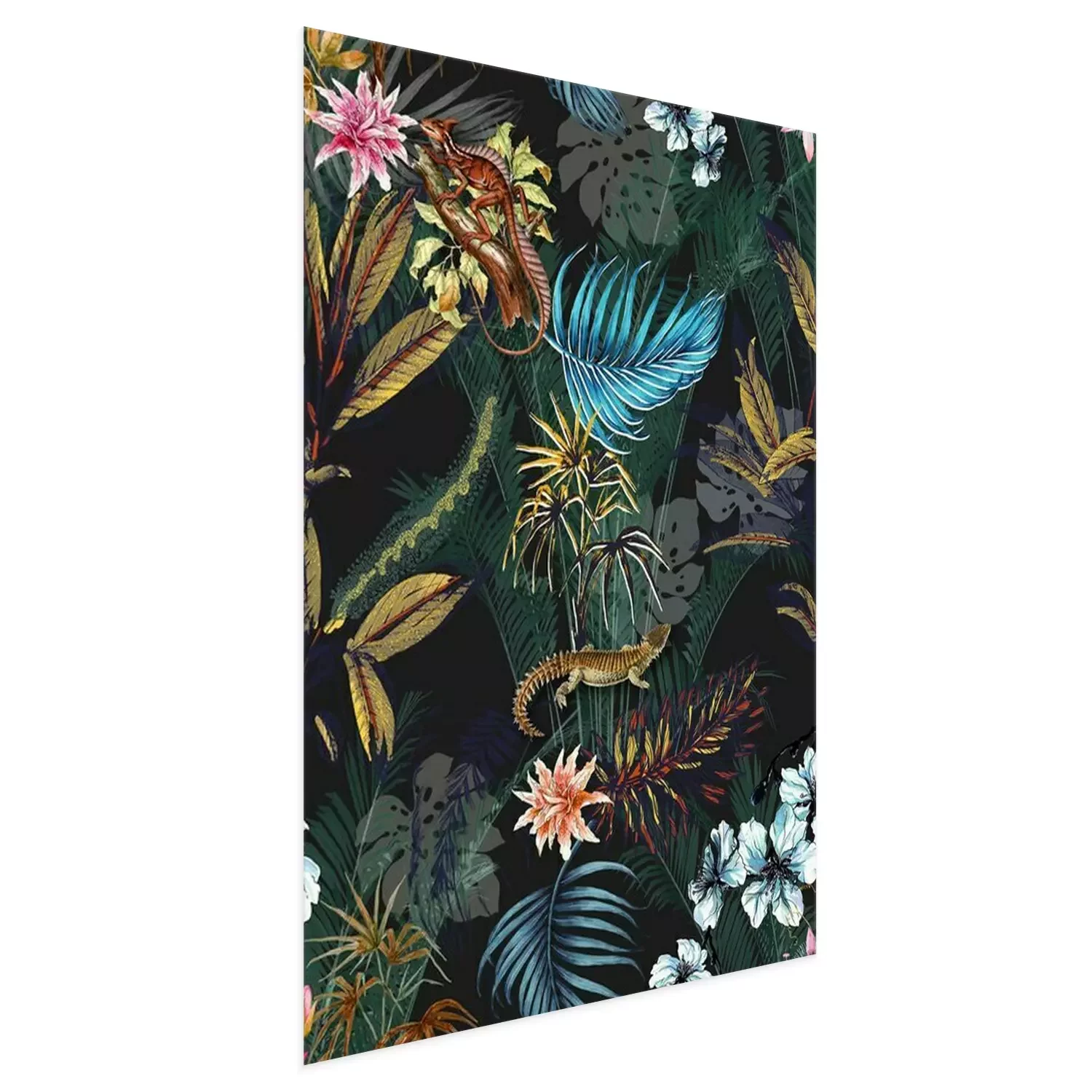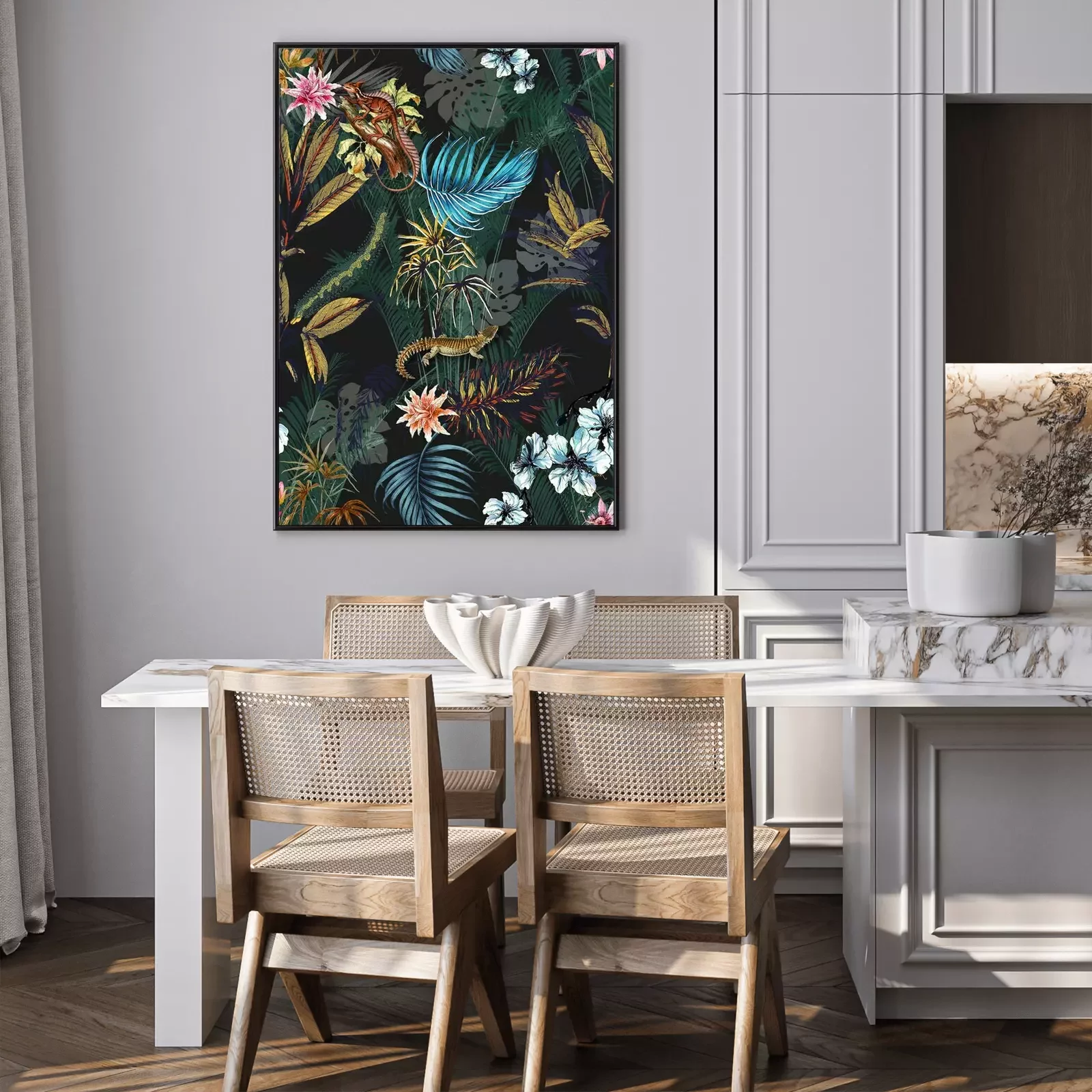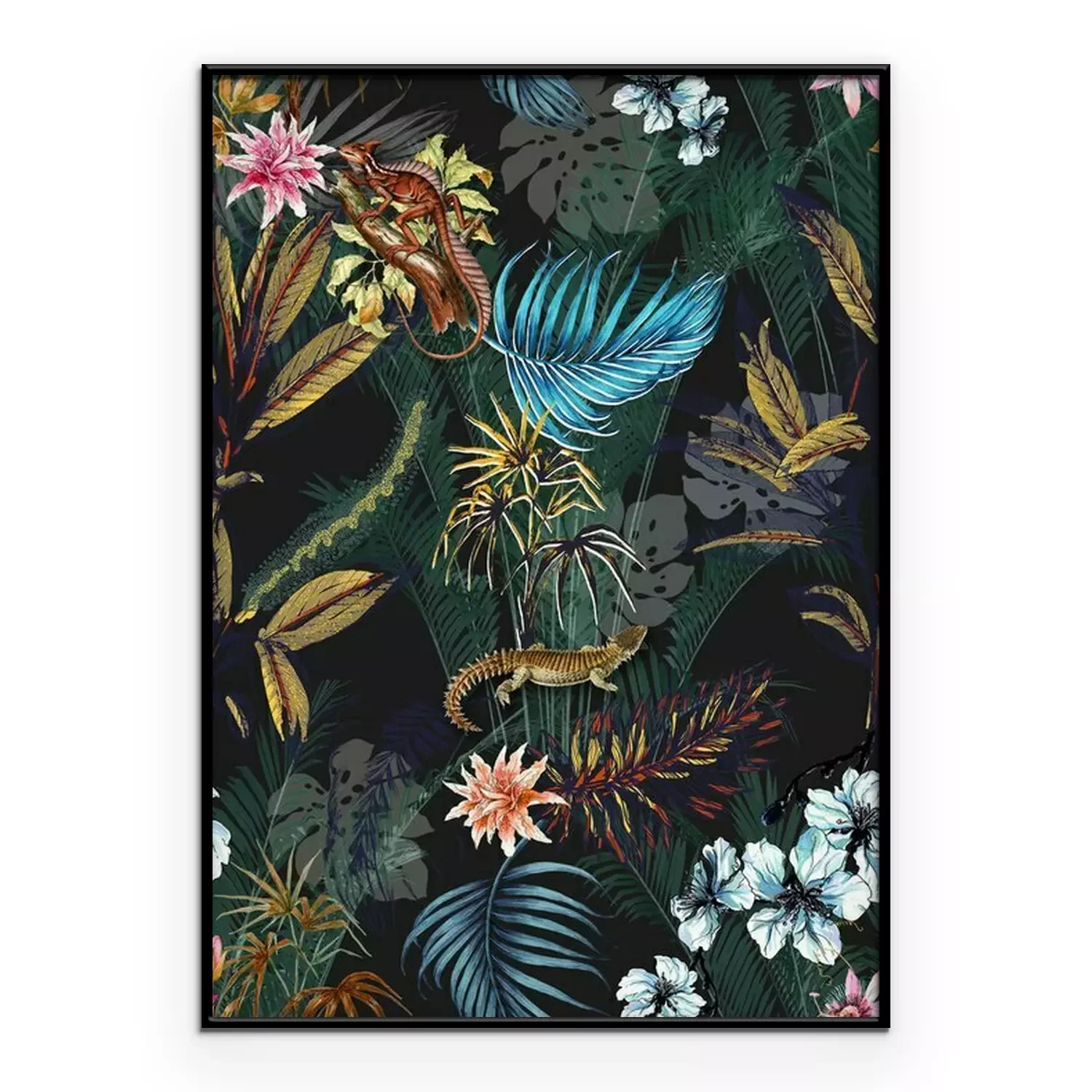 Poster  Feuilles de palmier et monstera et animaux exotiques