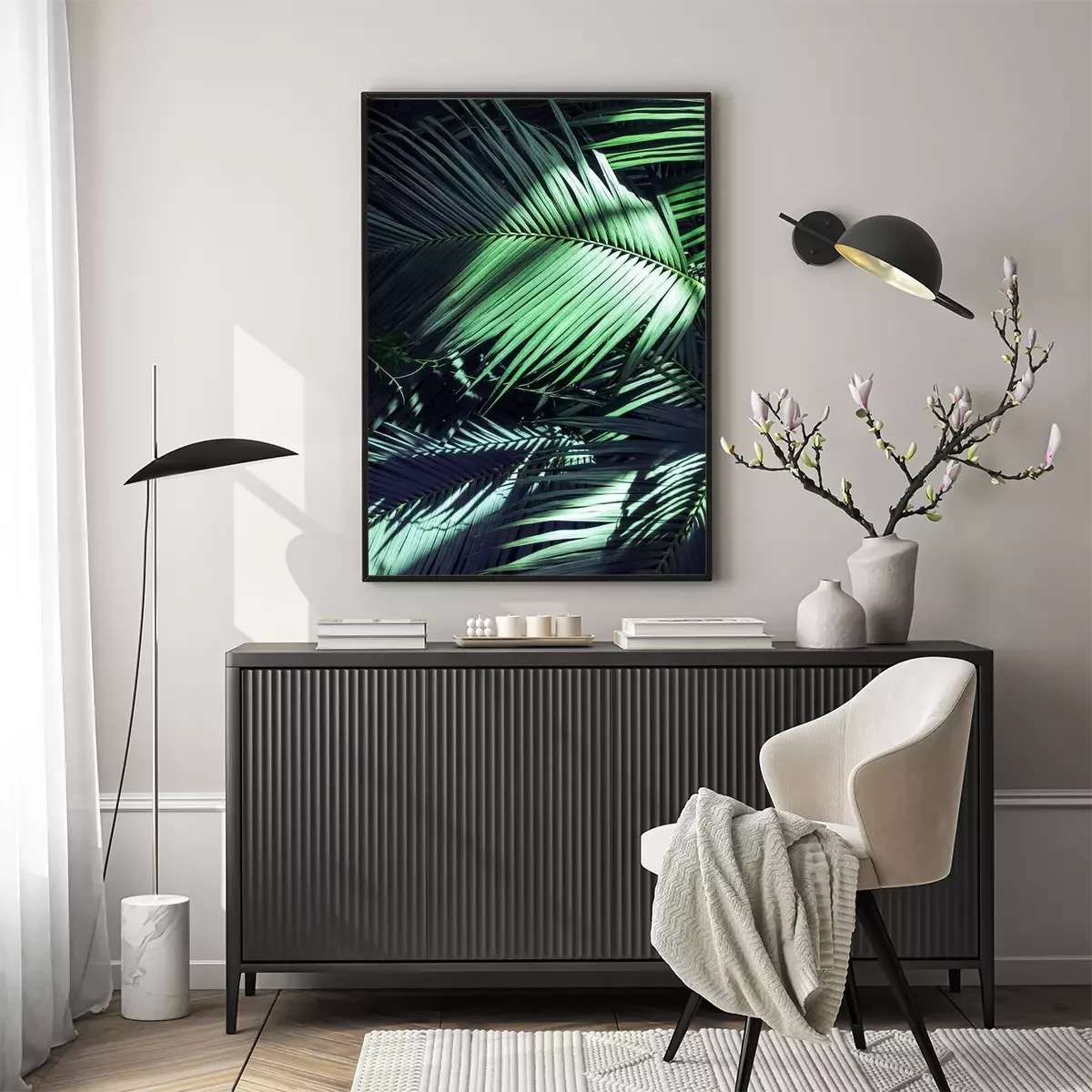 Poster : Feuilles de palmier illuminées par les rayons du soleil