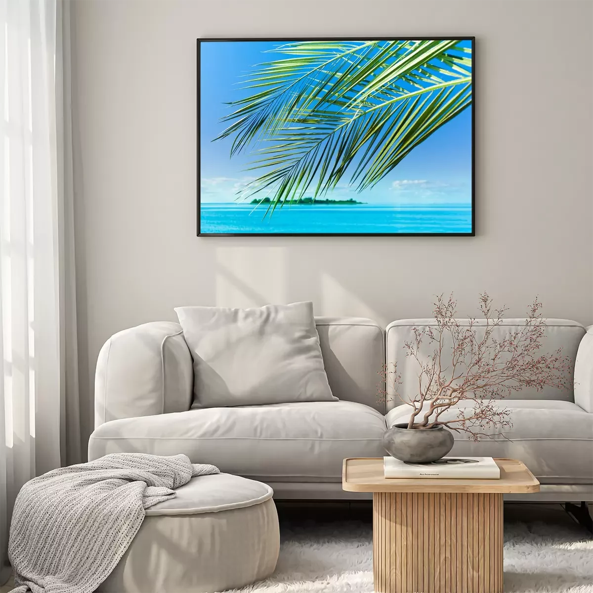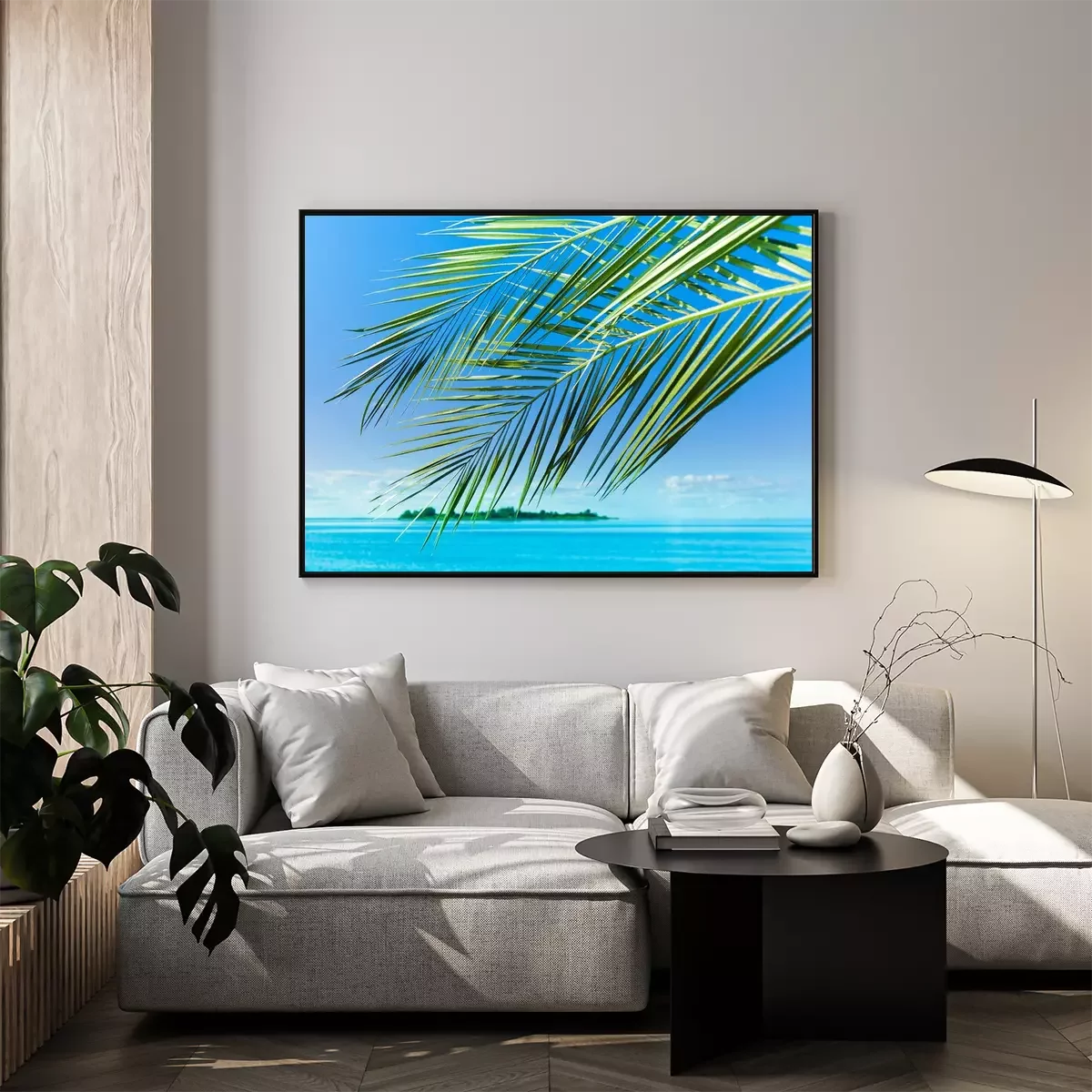 Poster : Feuilles de palmier sur le paysage marin