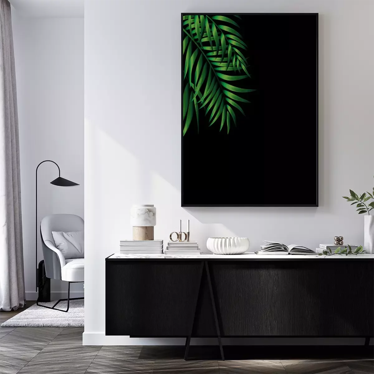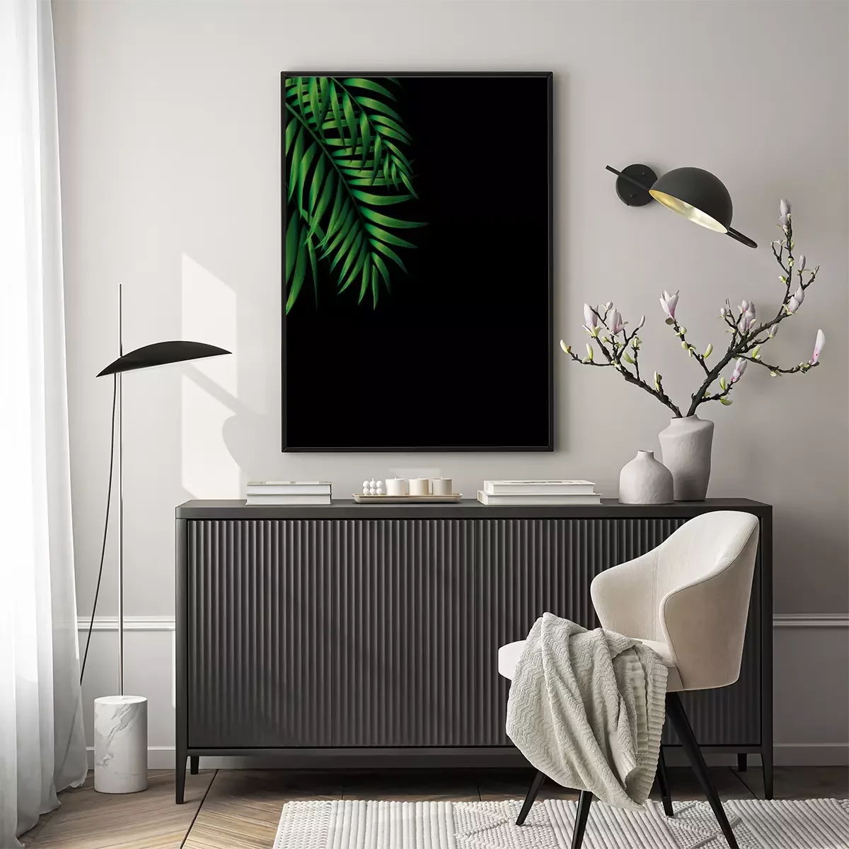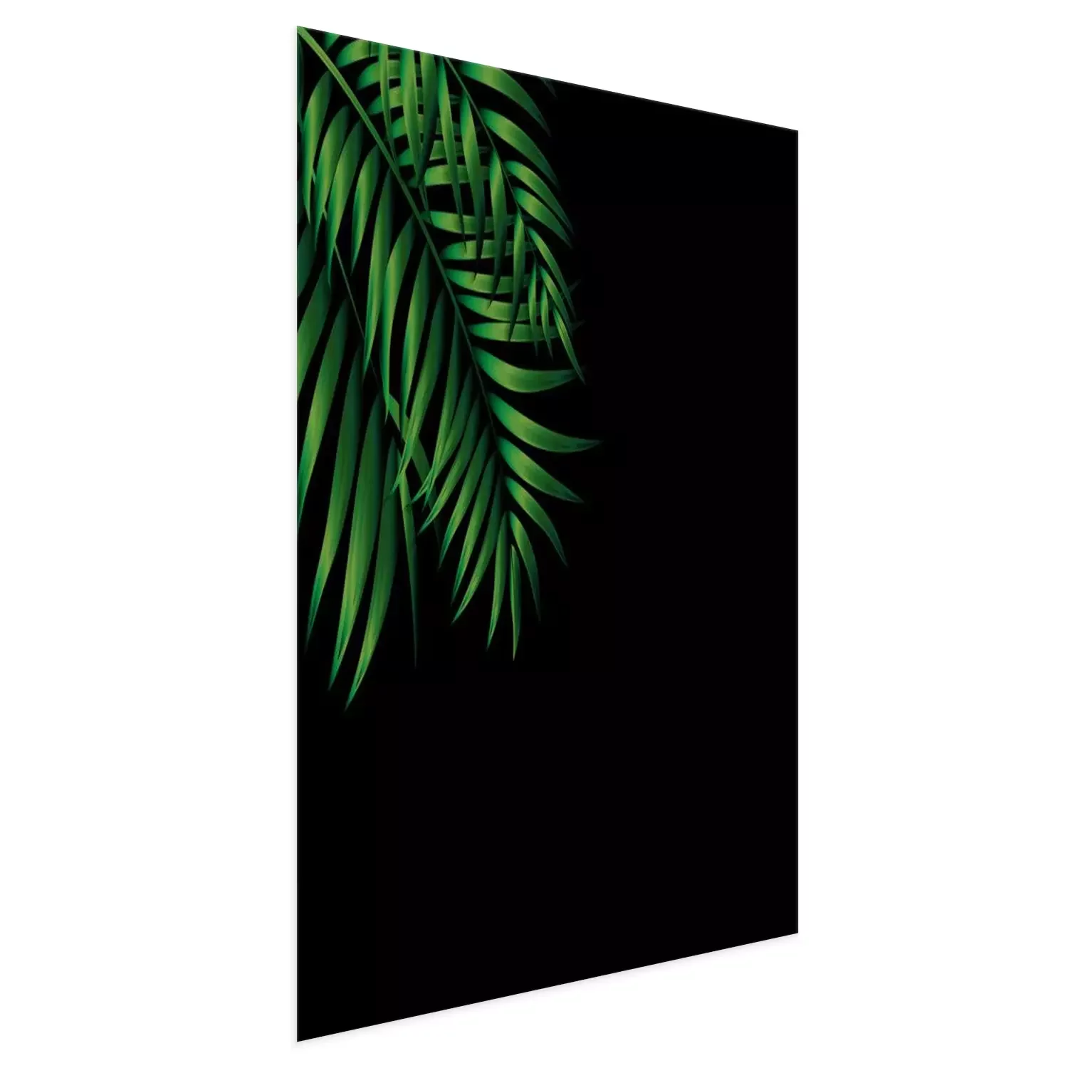 Poster : Feuilles de palmier vert foncé sur fond noir