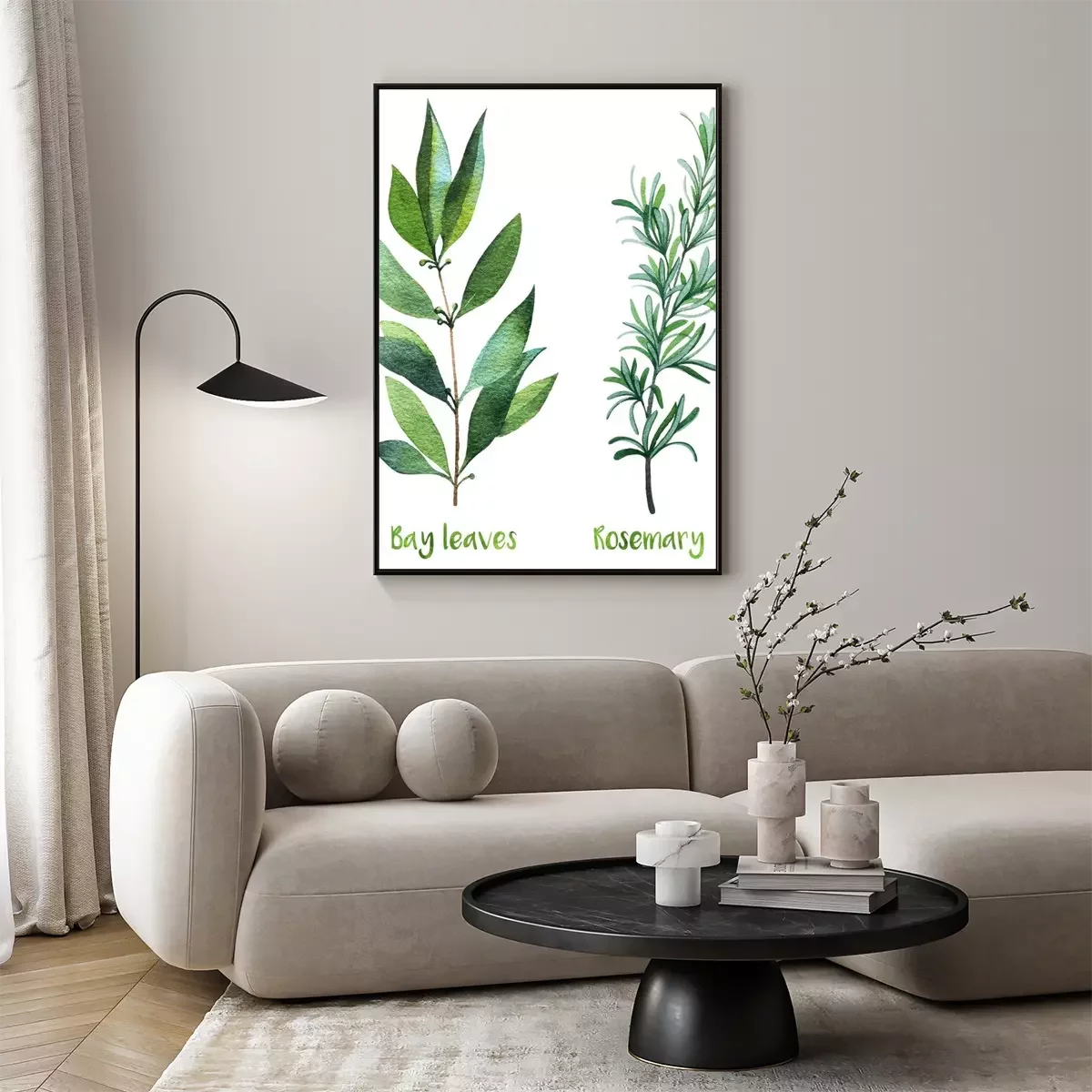 Poster : Feuilles de romarin et de laurier à l'aquarelle