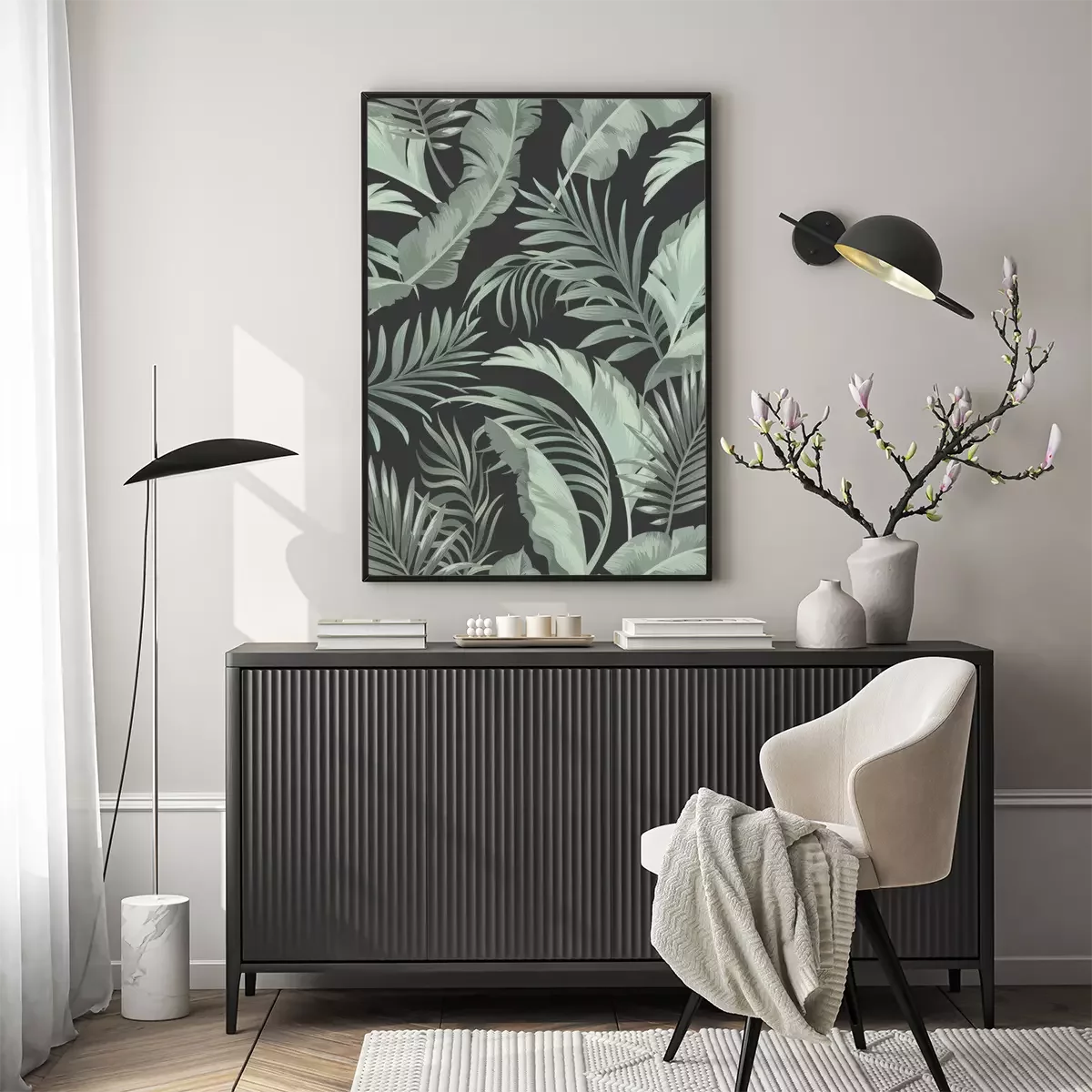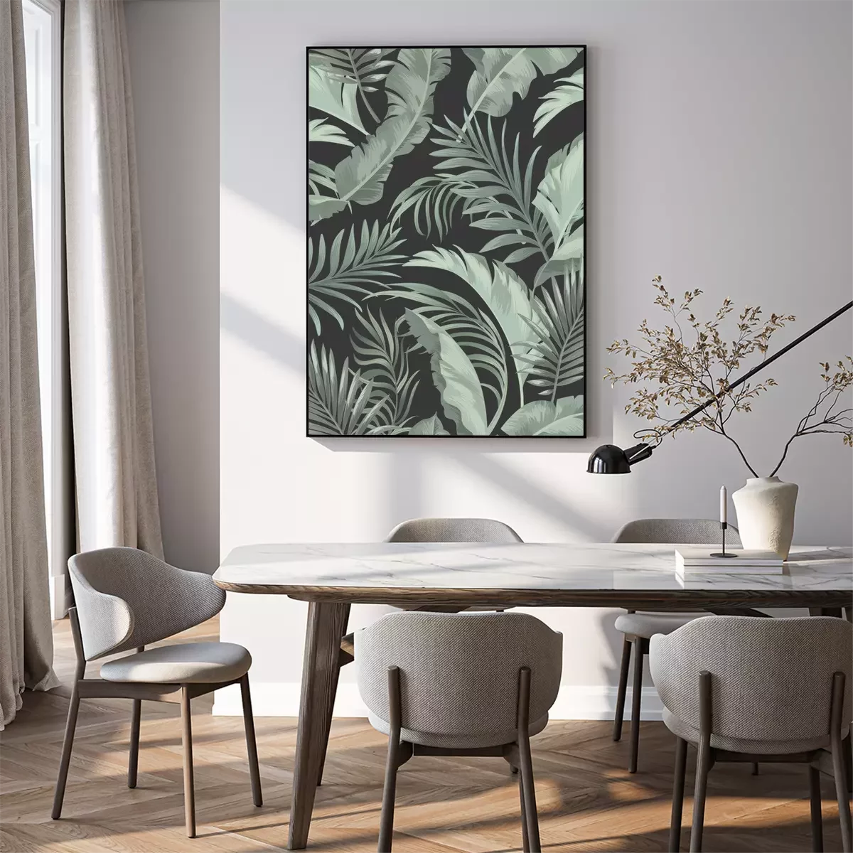 Poster : Feuilles tropicales d'un vert tamisé