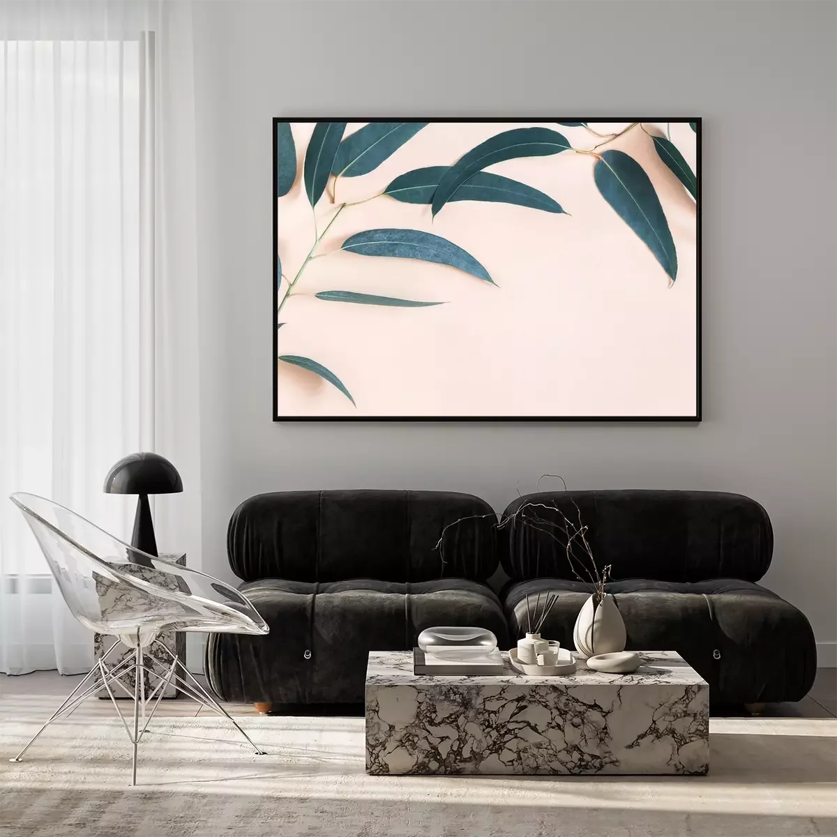 Poster  Feuilles XXL sur fond rose