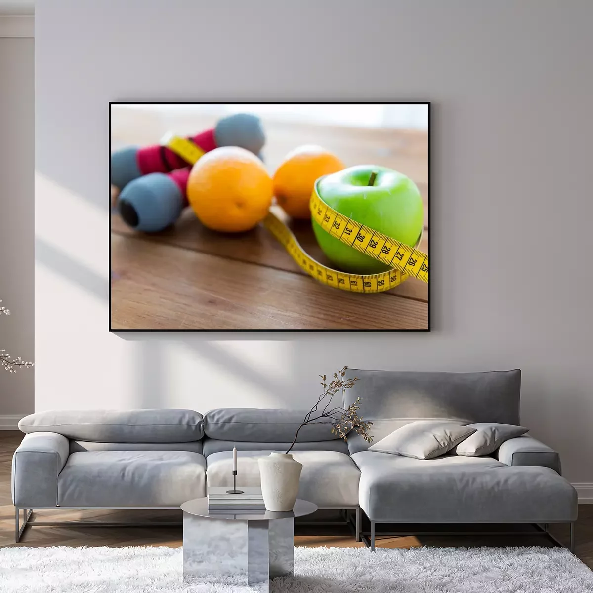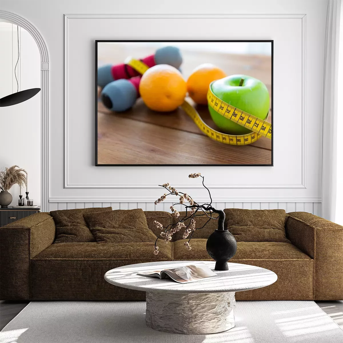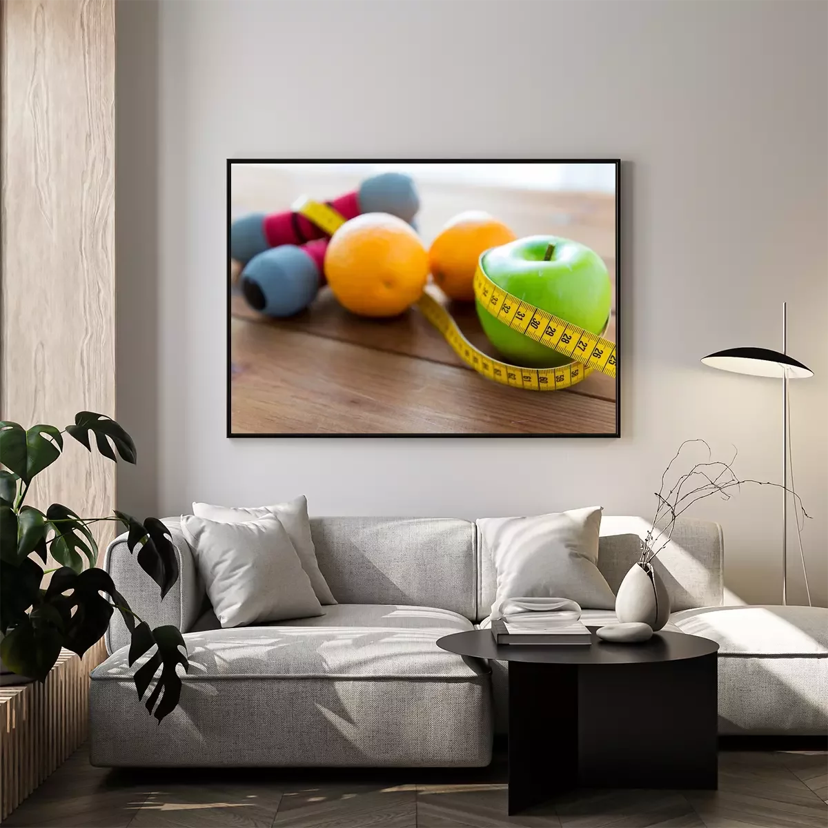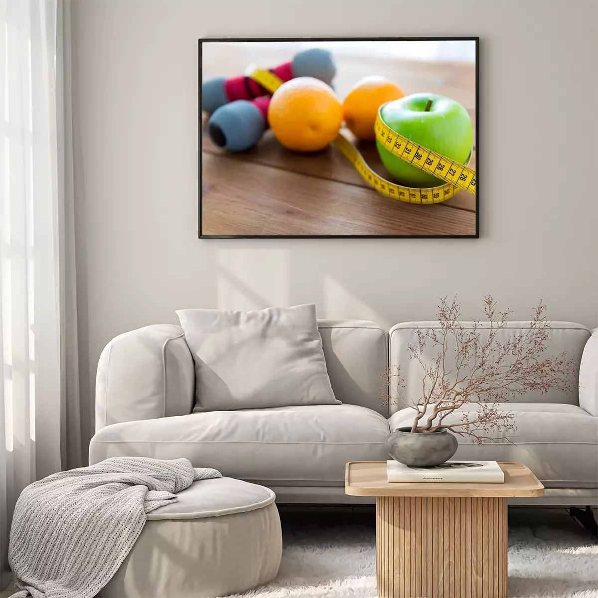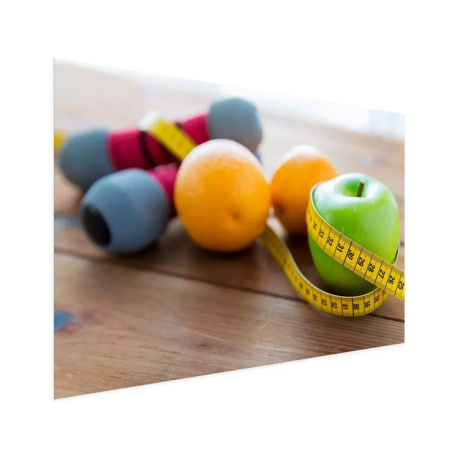 Poster  Fin, haut, haltère, fruits, Mesurer, bande