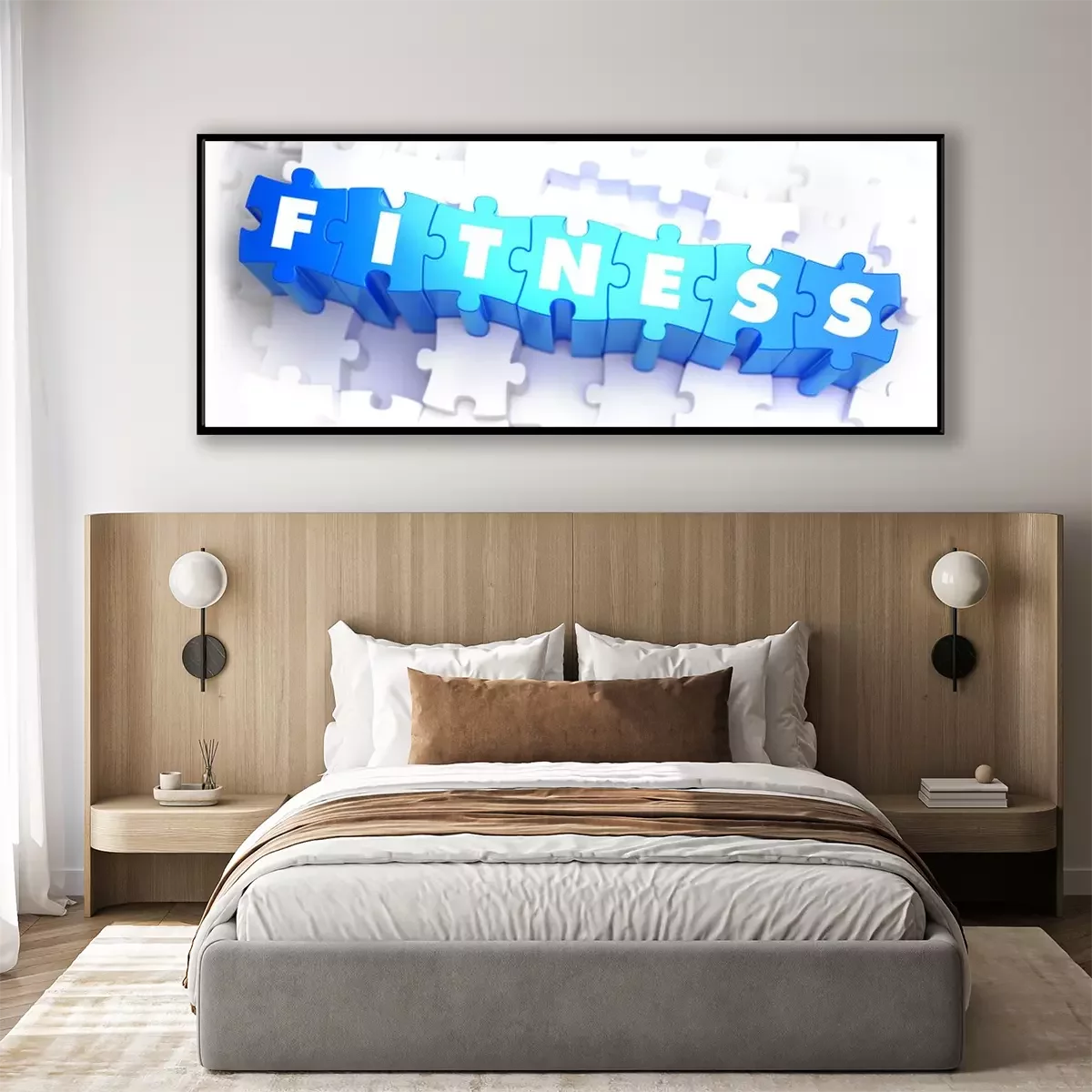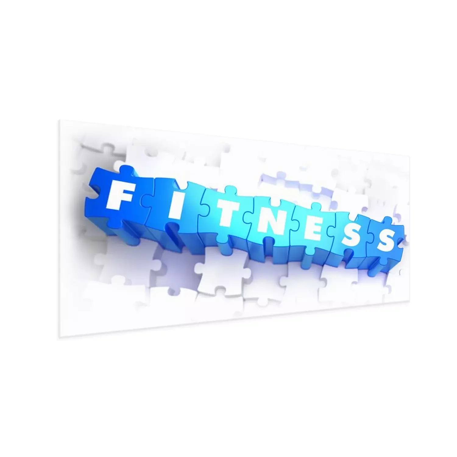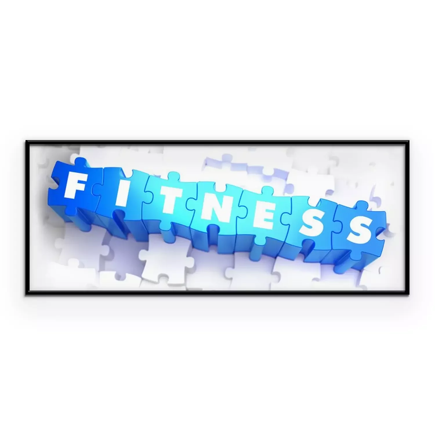 Poster : Fitness - mot blanc sur les puzzles bleus.