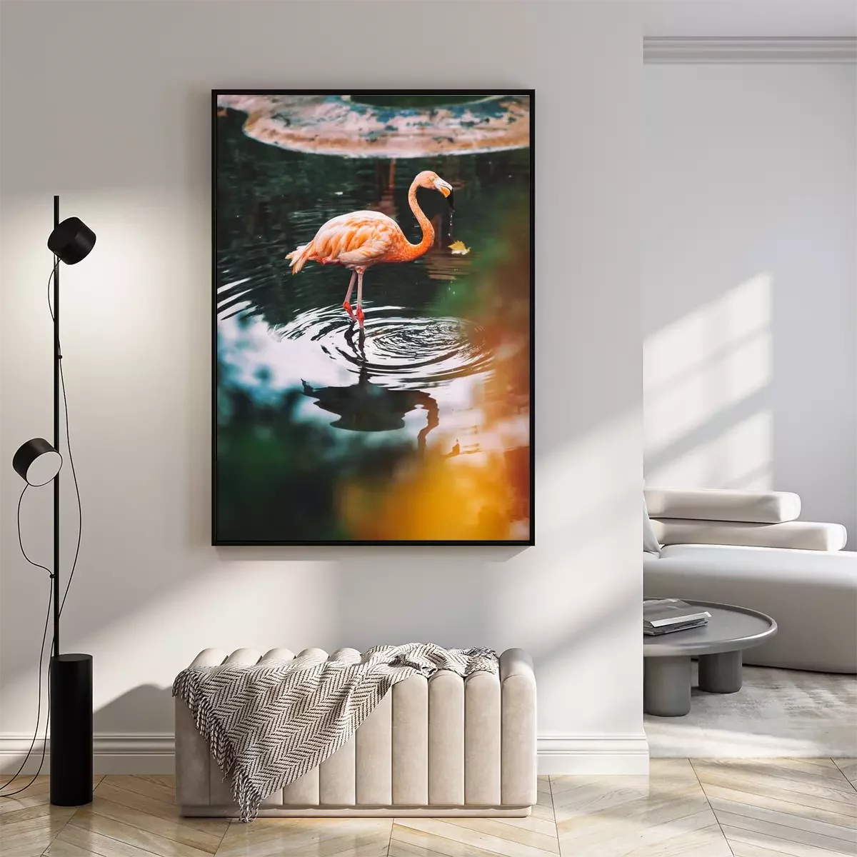Poster  Flamant rose dans l'eau