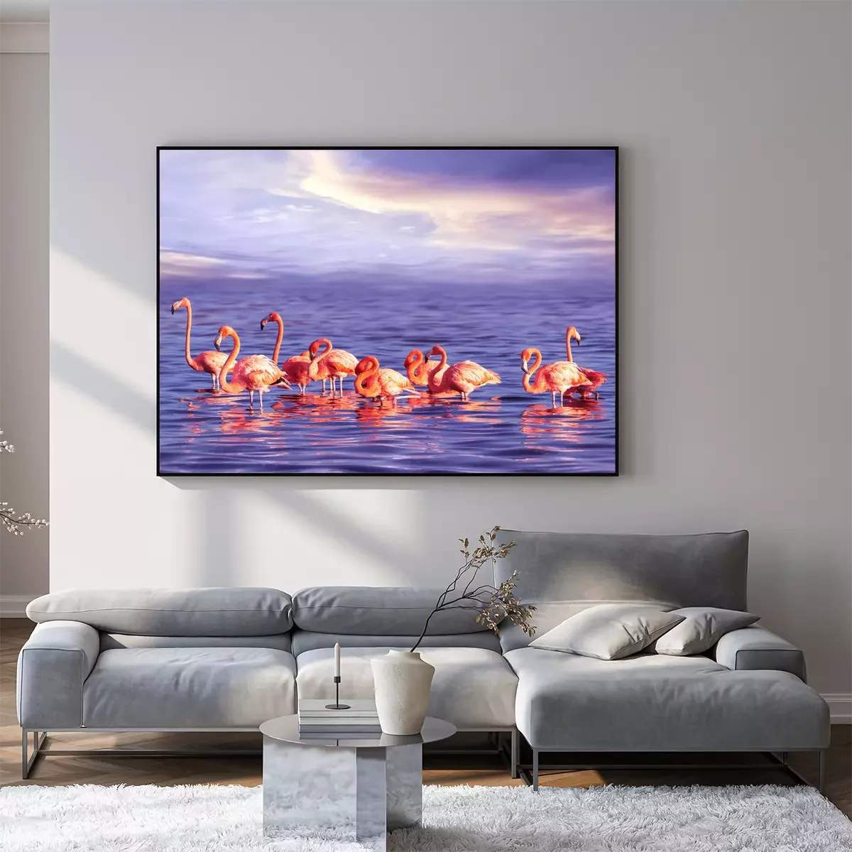 Poster  Flamants roses dans l'eau de mer
