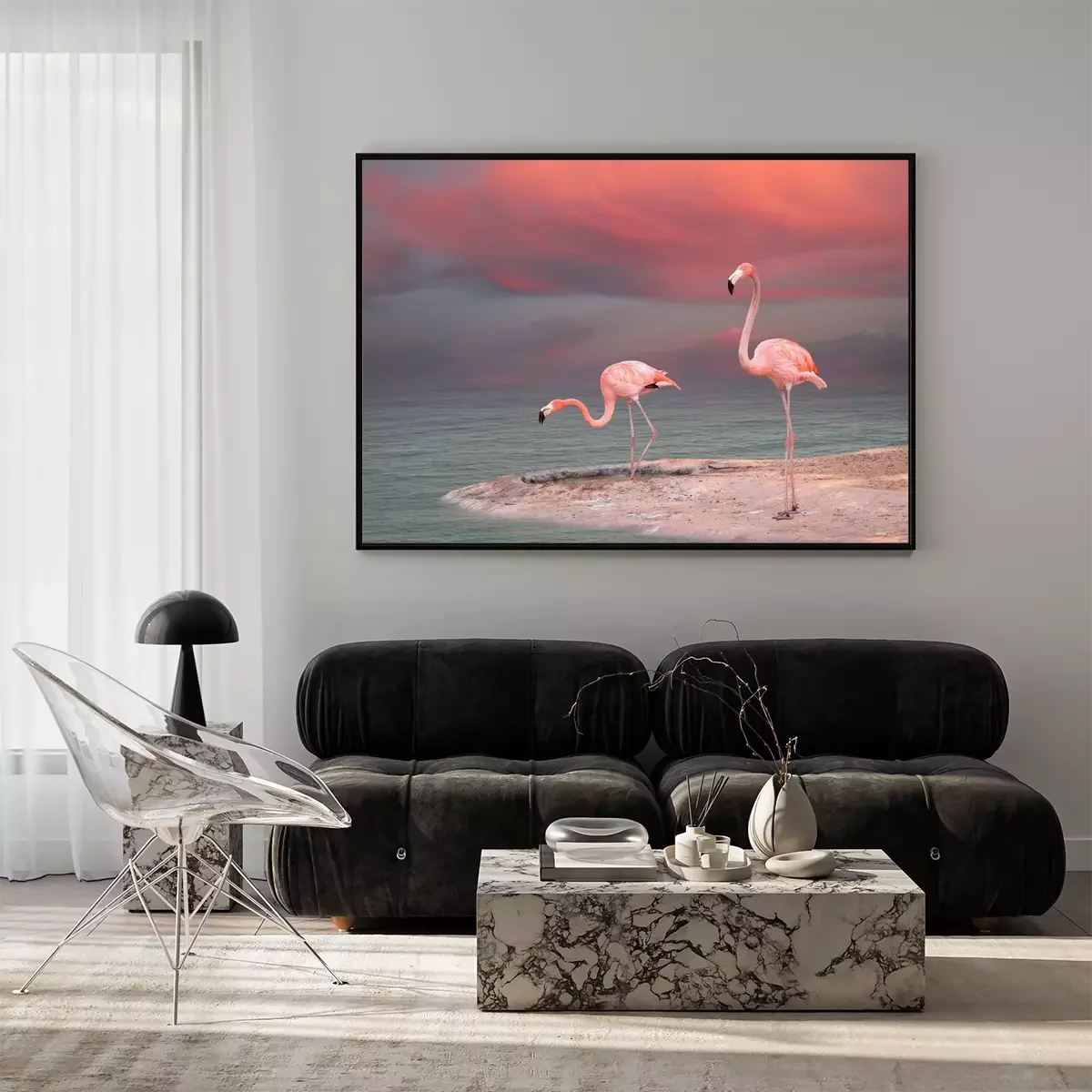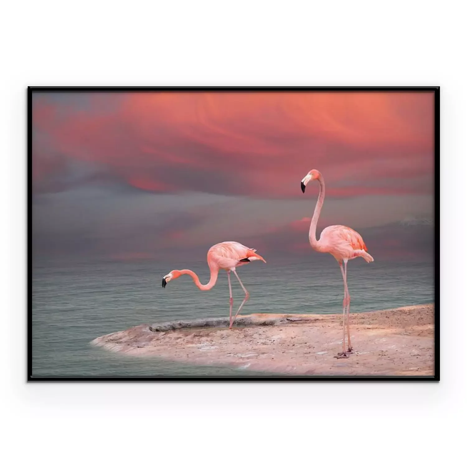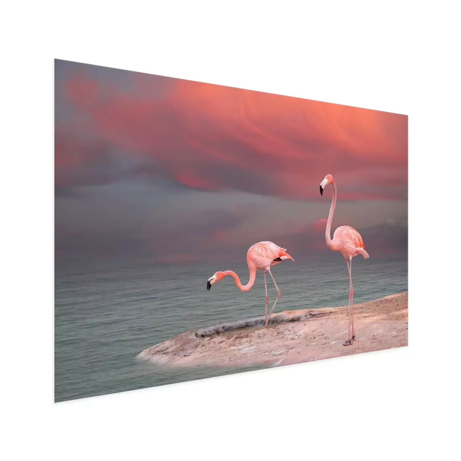 Poster  Flamants roses pastel au bord de l'eau