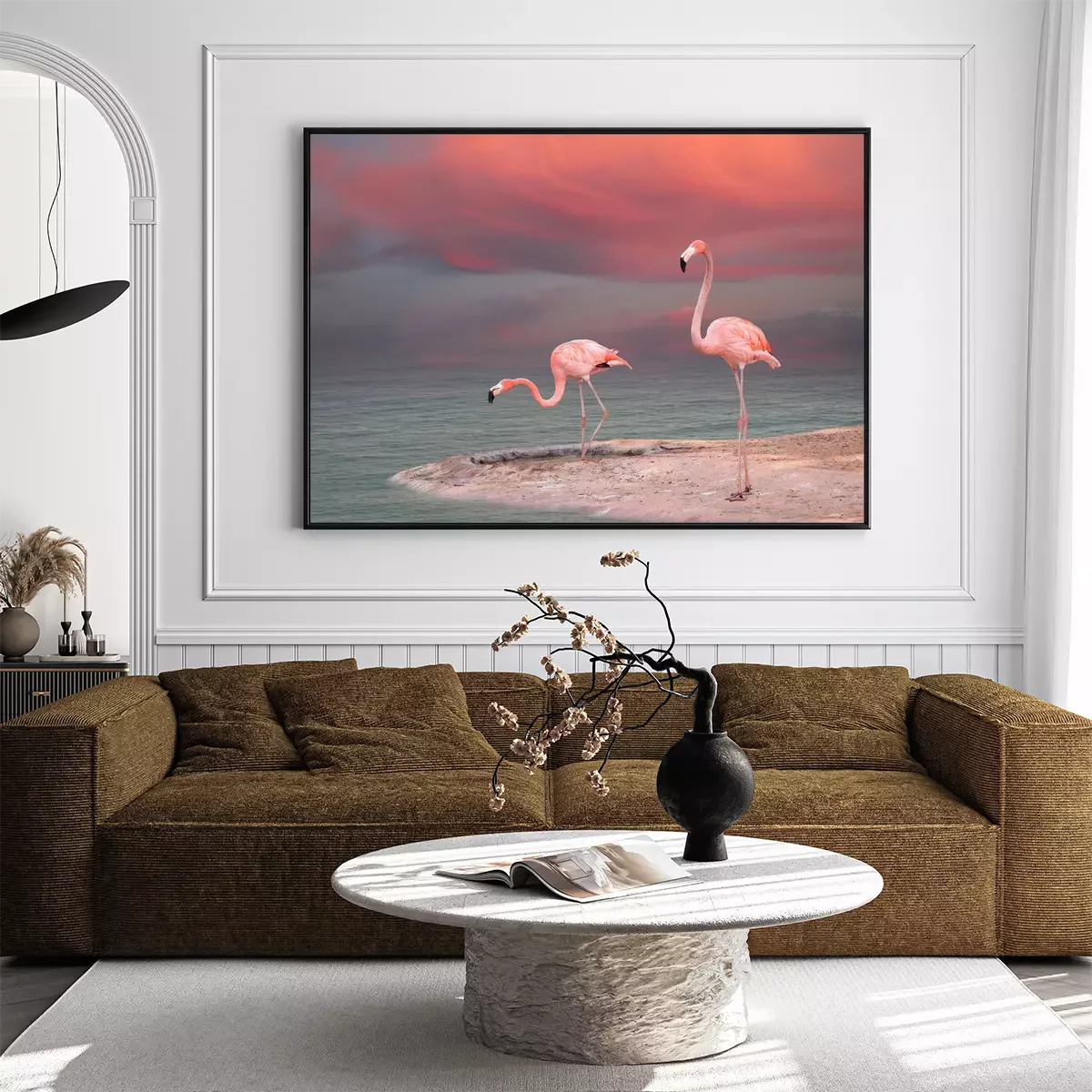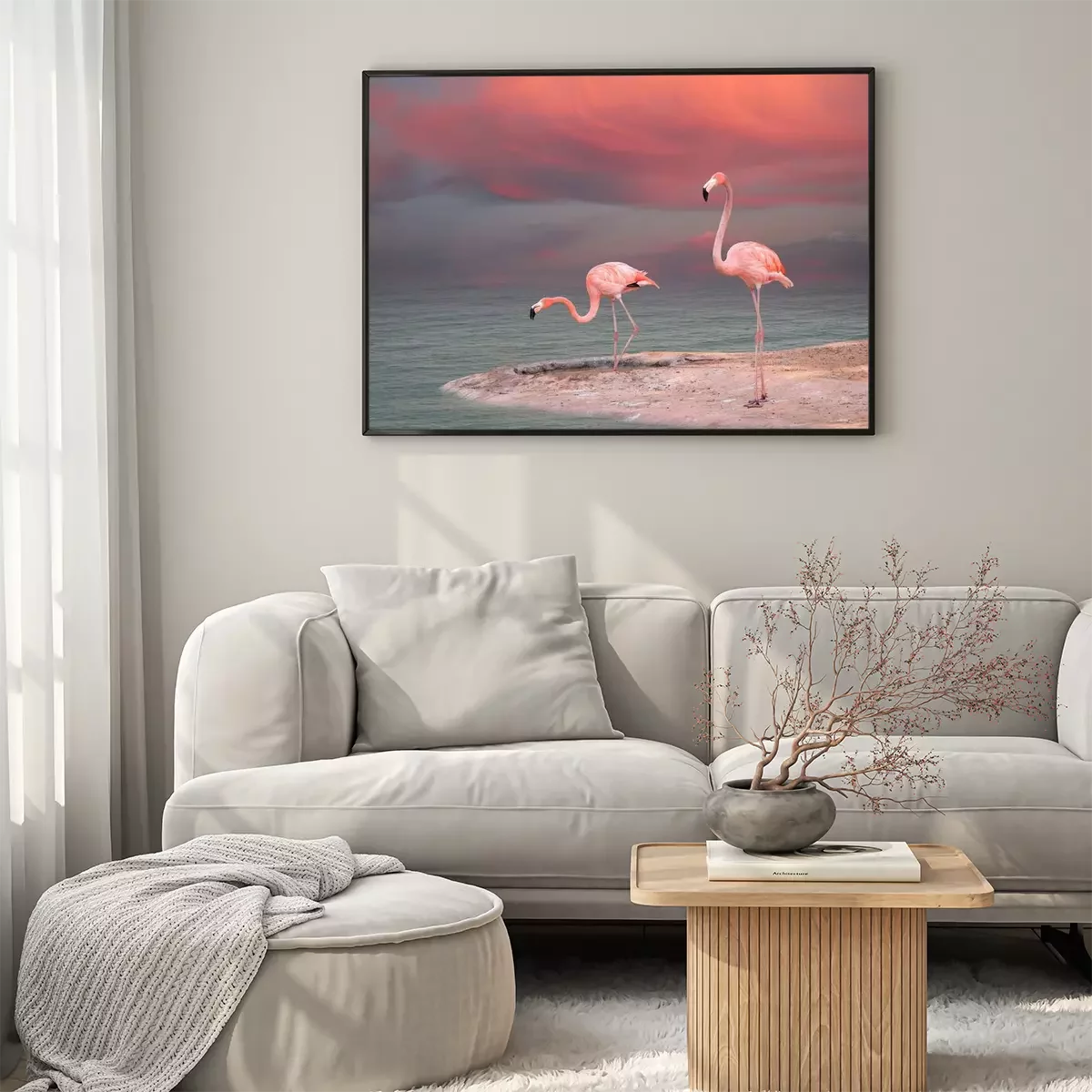 Poster : Flamants roses pastel au bord de l'eau