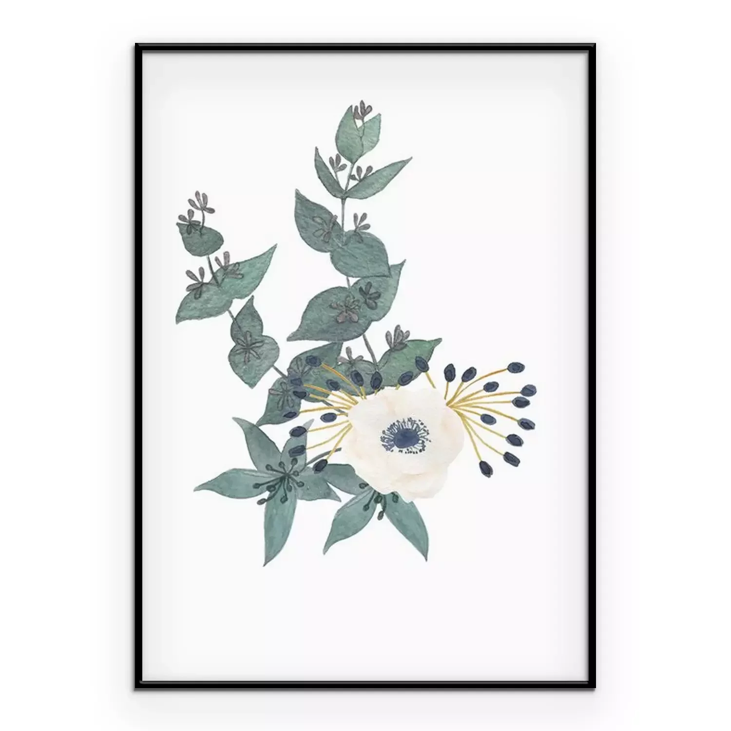 Poster : Fleur blanche basée sur des tiges aux feuilles vertes
