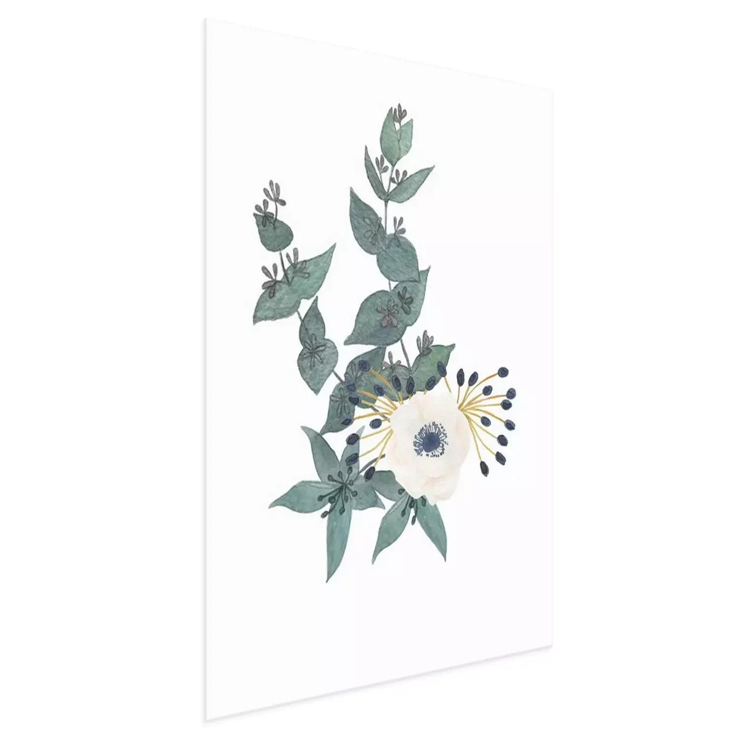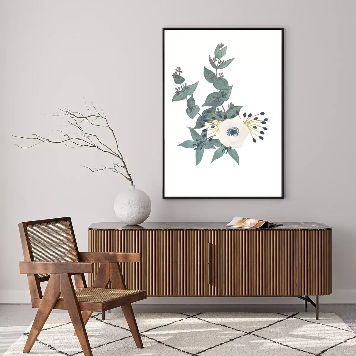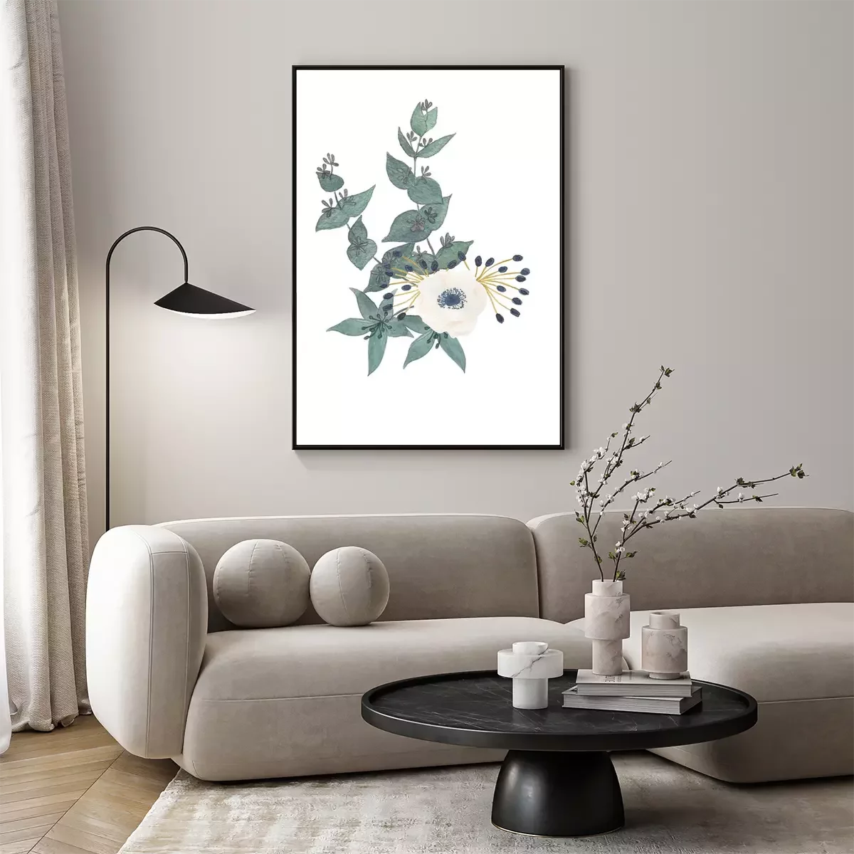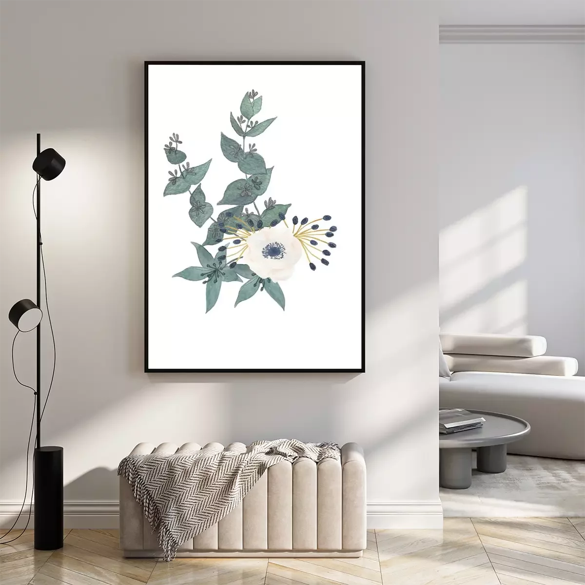 Poster  Fleur blanche basée sur des tiges aux feuilles vertes