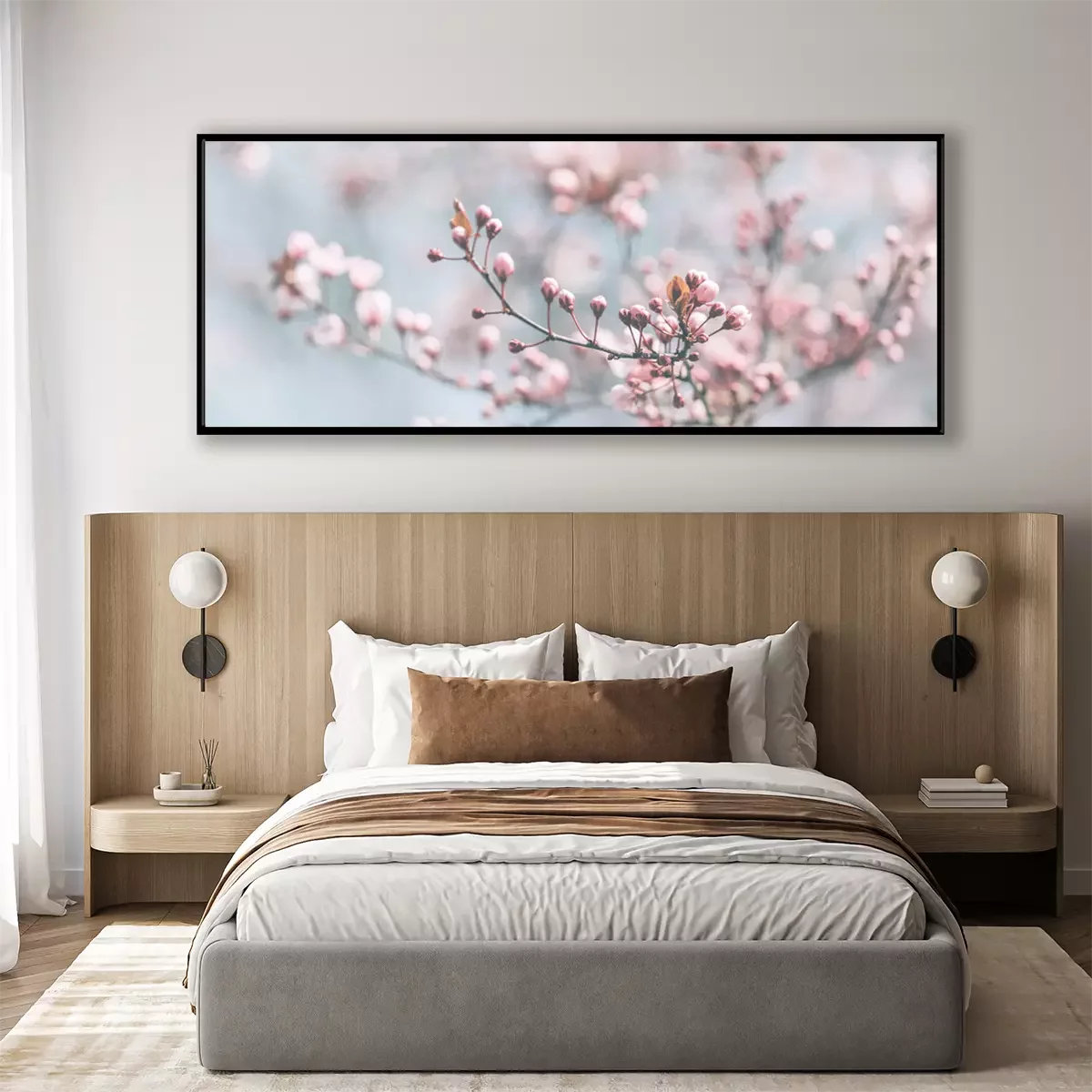 Closeup of blooming magnolia tree in spring on pastel bokeh background.