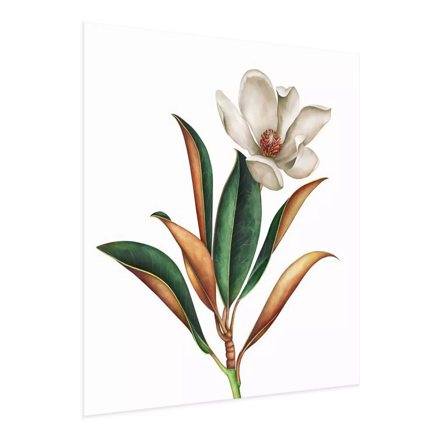Poster  Fleur de magnolia entourée de feuilles vert-brun