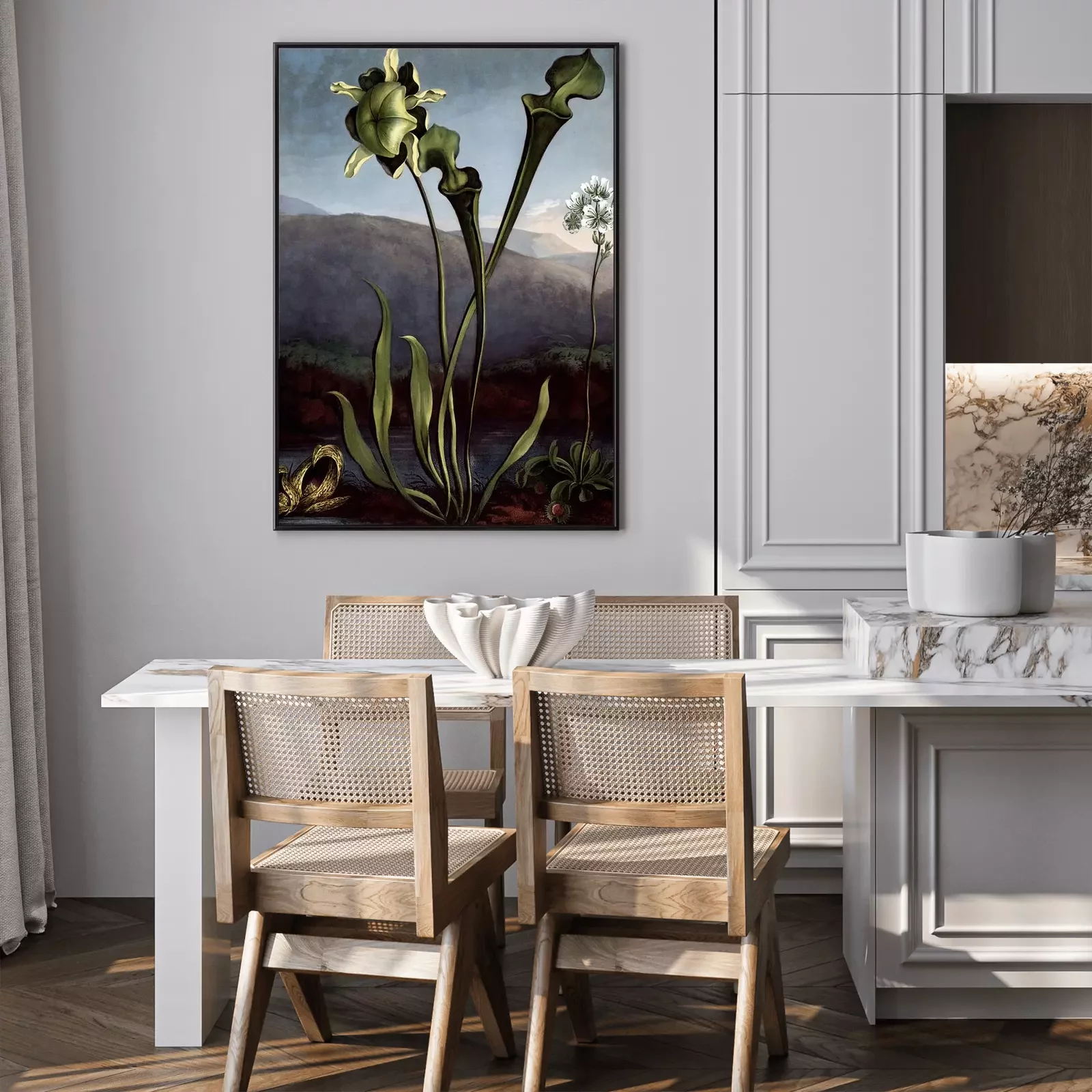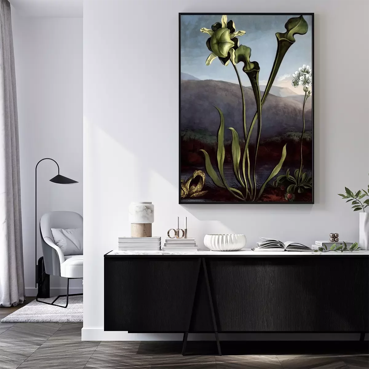 Poster  Fleurs à longues tiges sur fond de montagnes et d'eau
