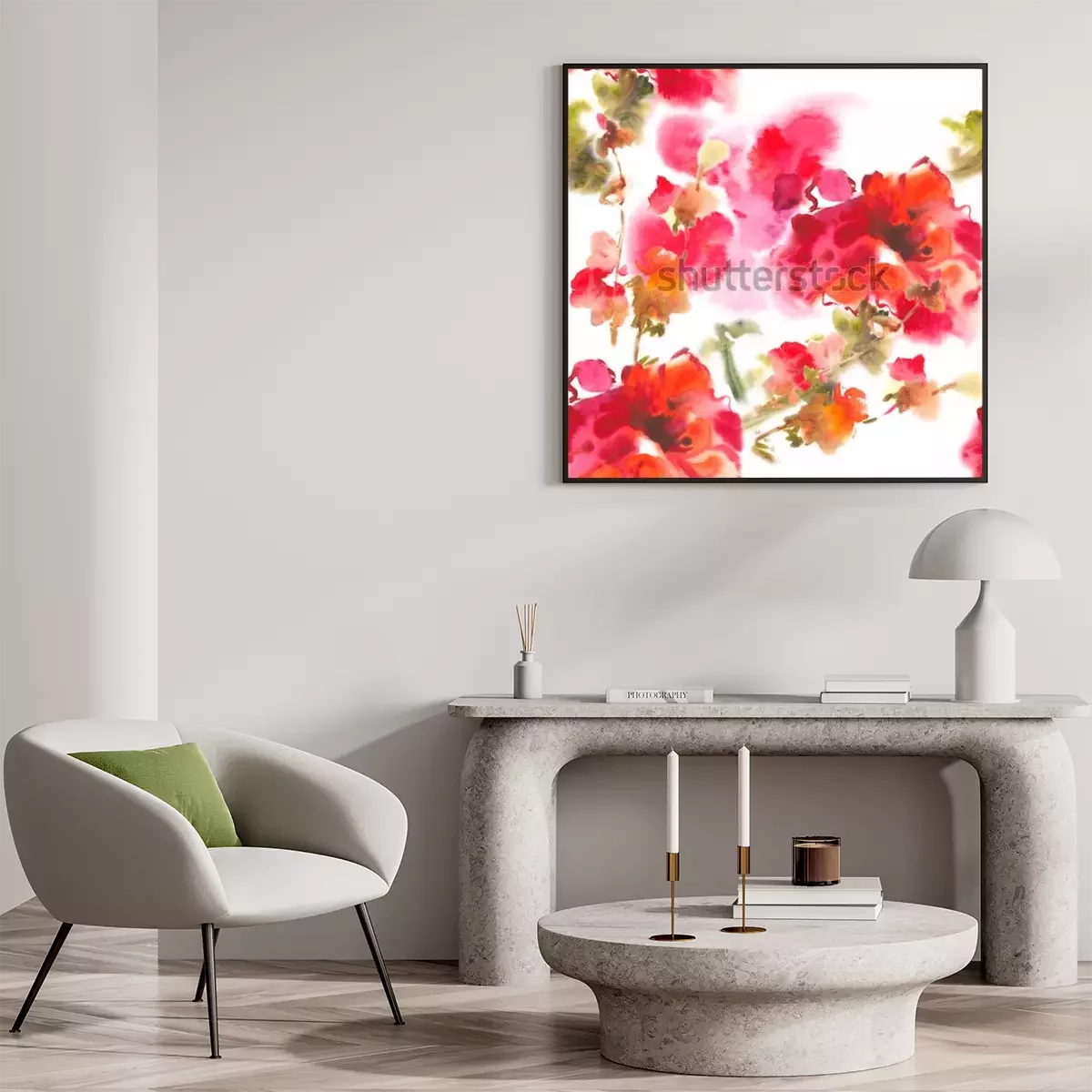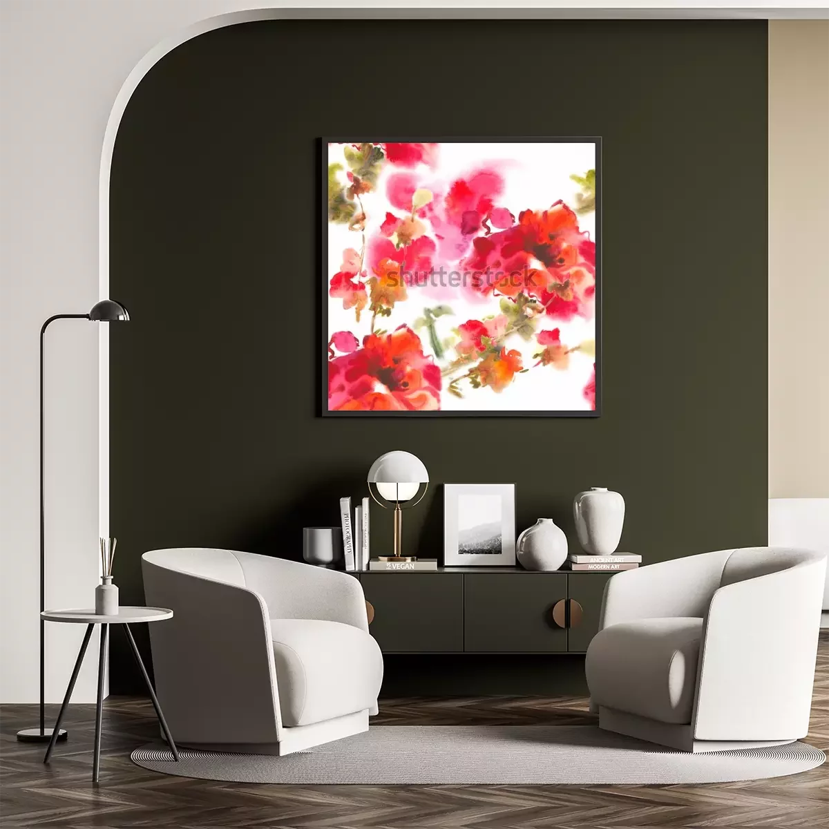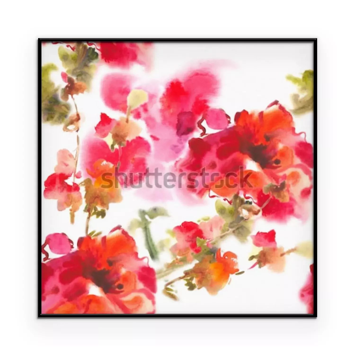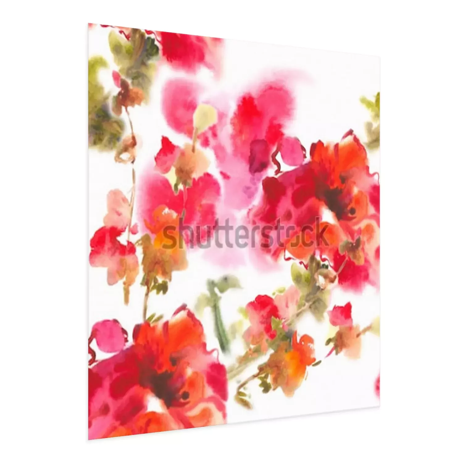 Poster : Fleurs aquarelles aux couleurs rouges et roses