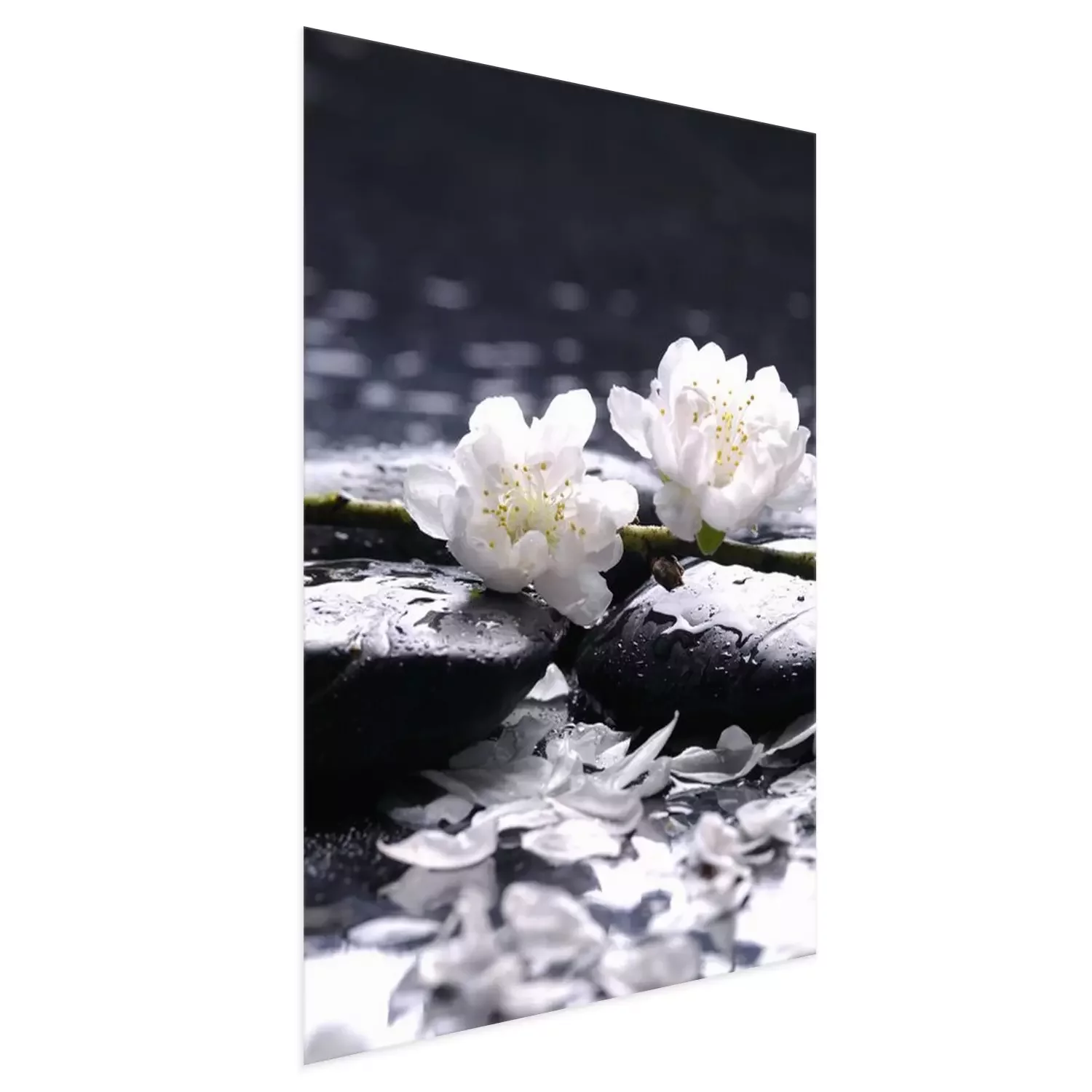 Poster  Fleurs blanches à base de pierres humides