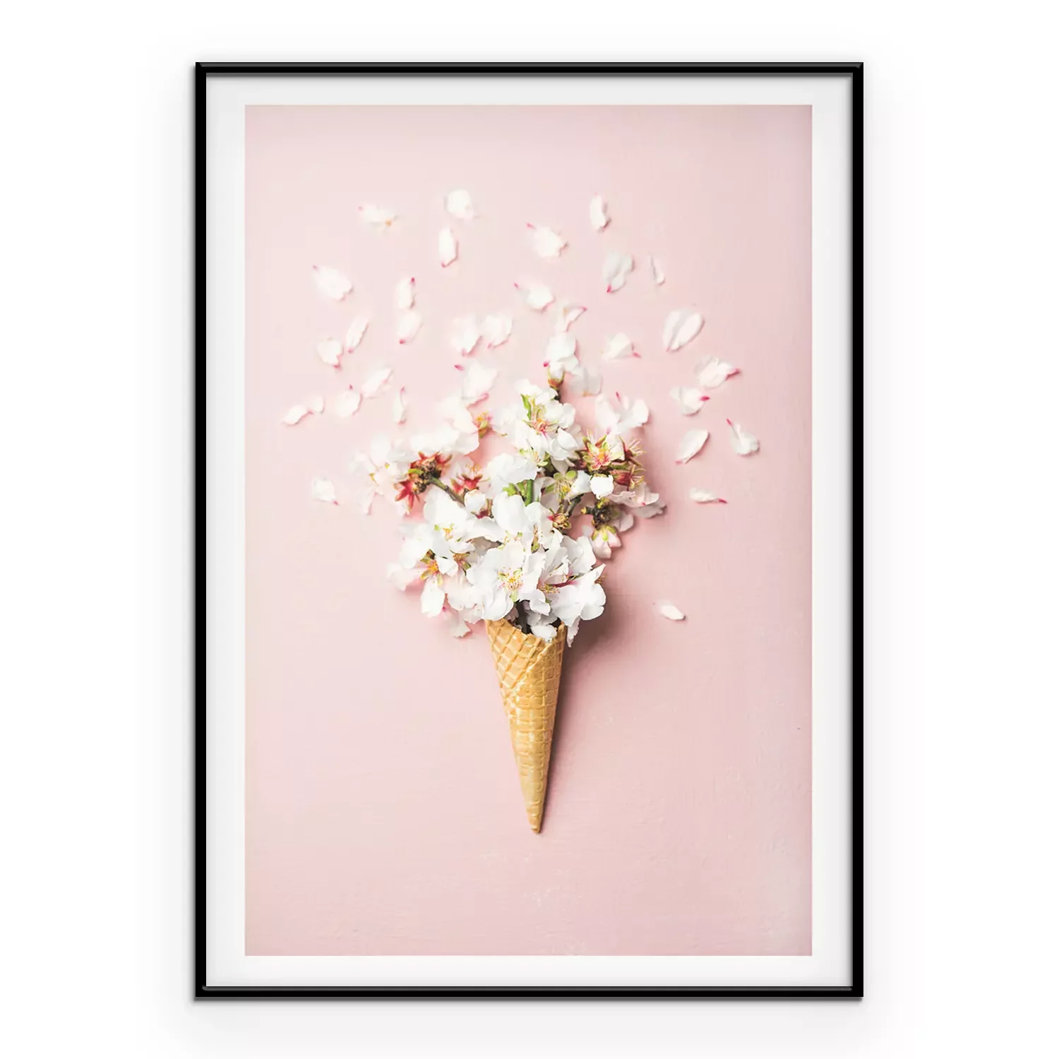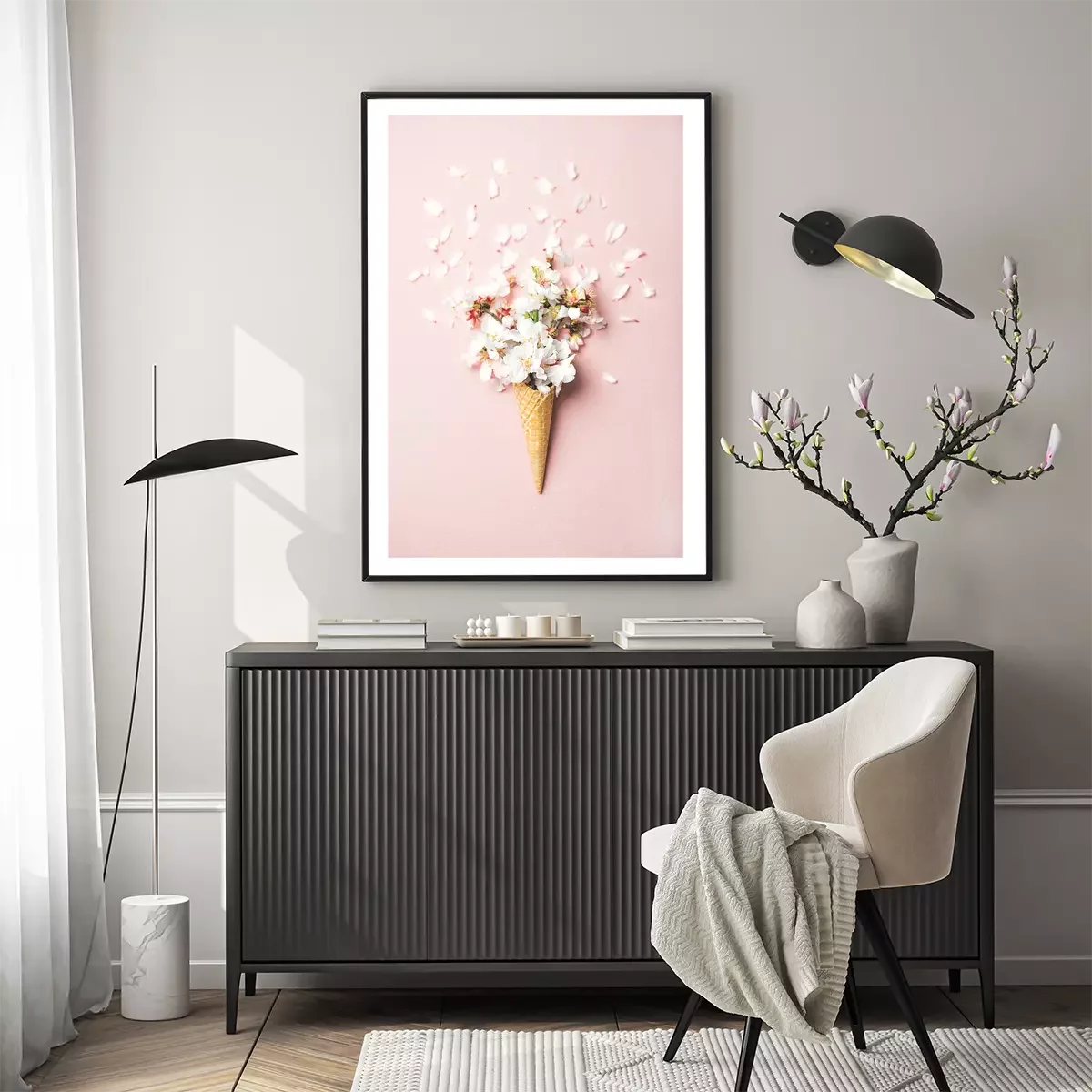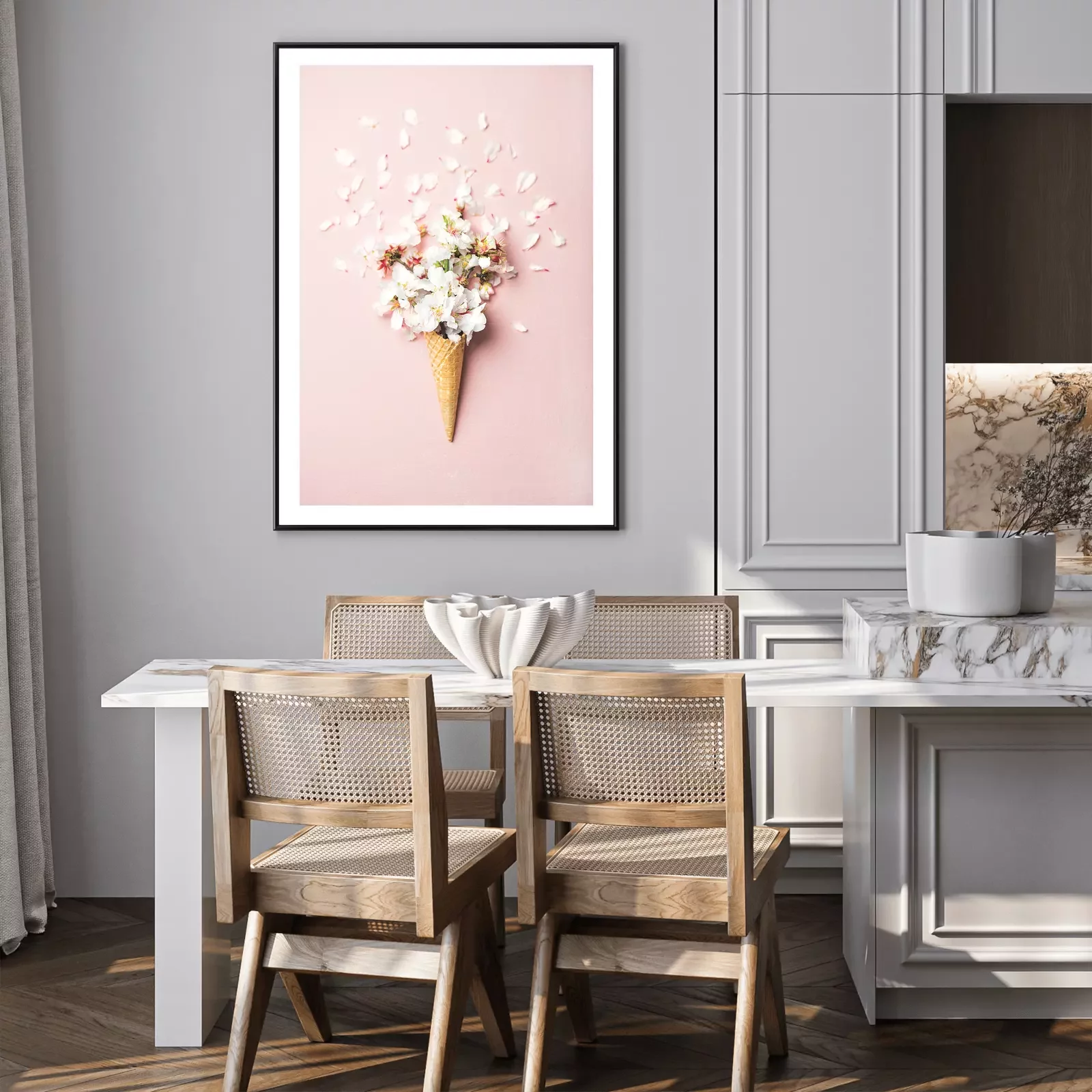 Poster : Fleurs de cerisier dans un cornet gaufré sur fond rose
