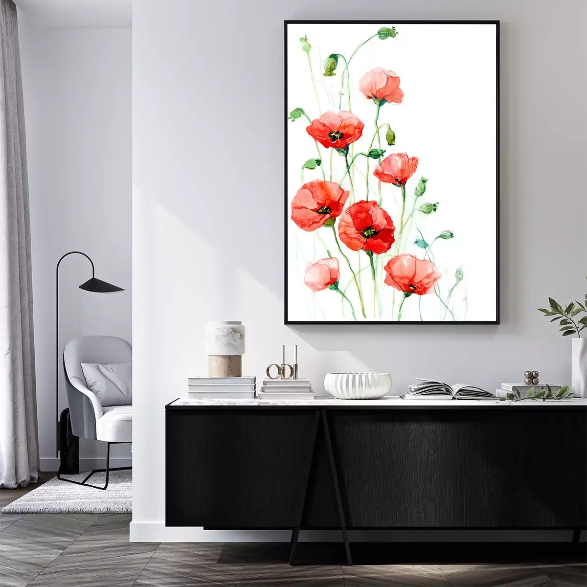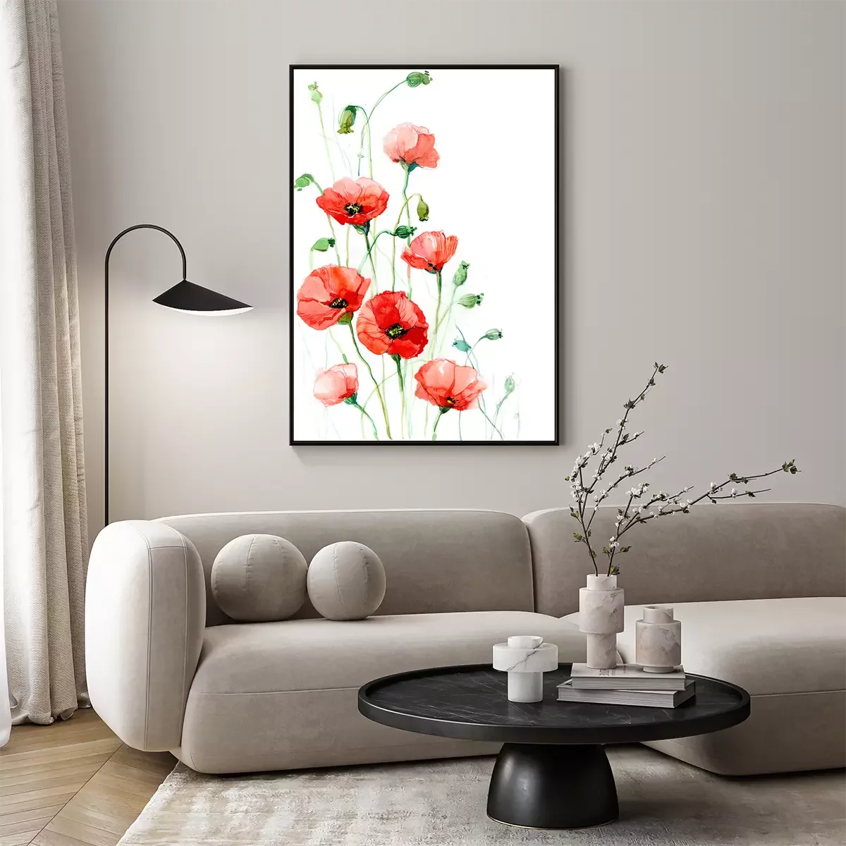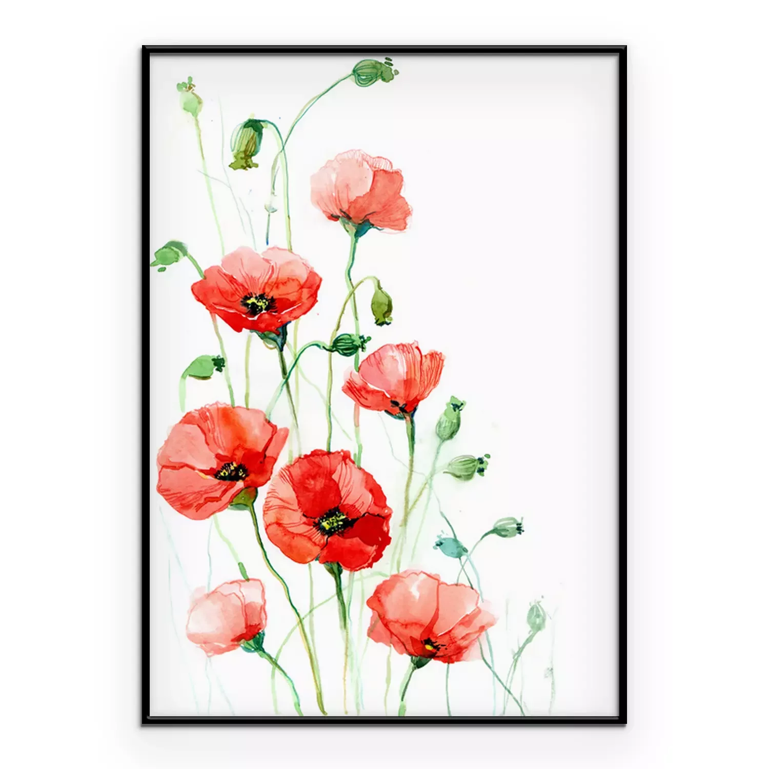 Poster : Fleurs de coquelicots et tiges d'aquarelle