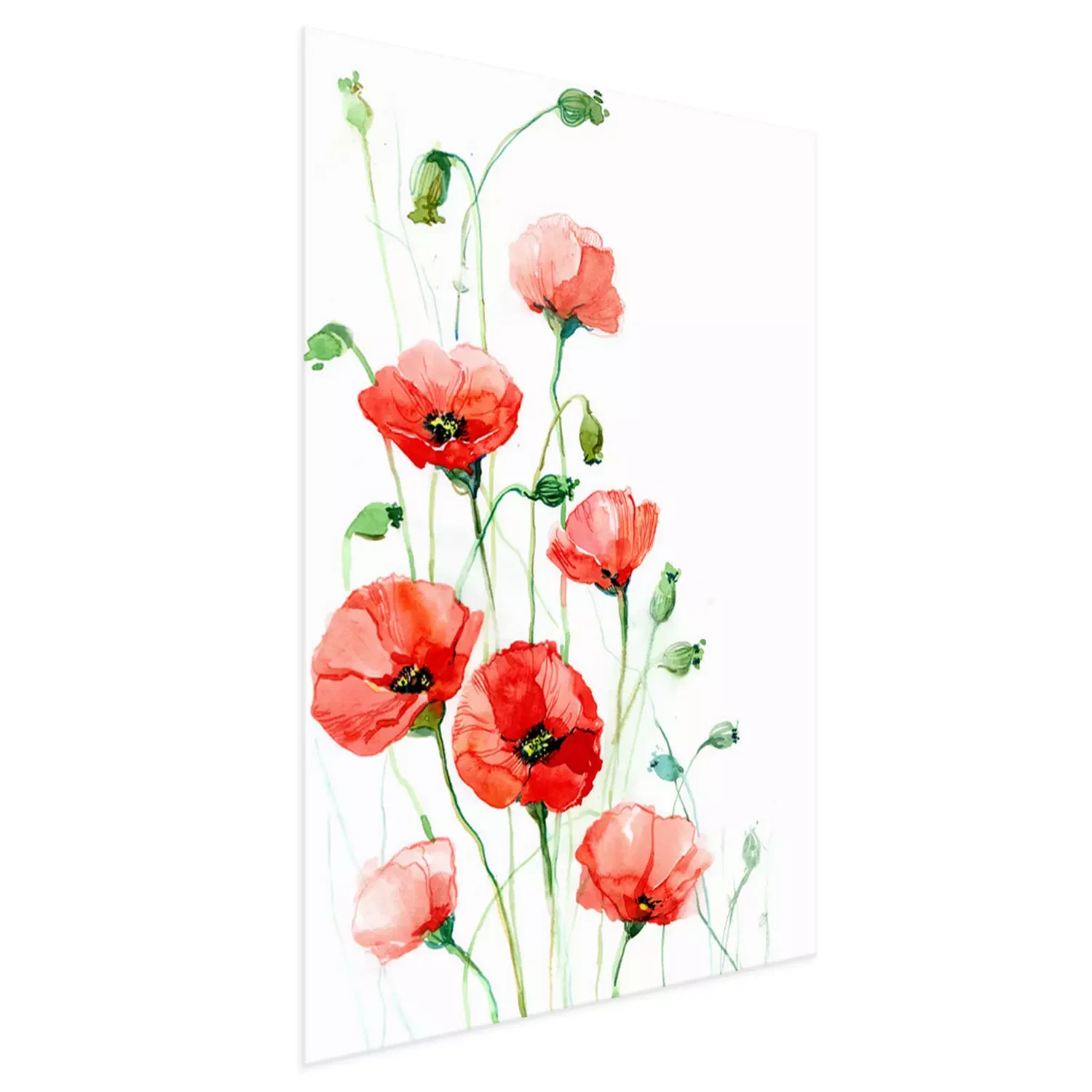 Poster  Fleurs de coquelicots et tiges d'aquarelle