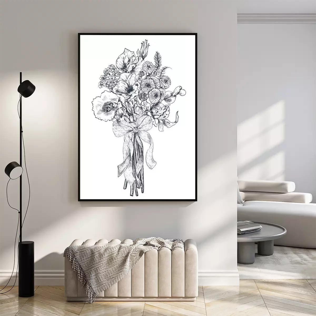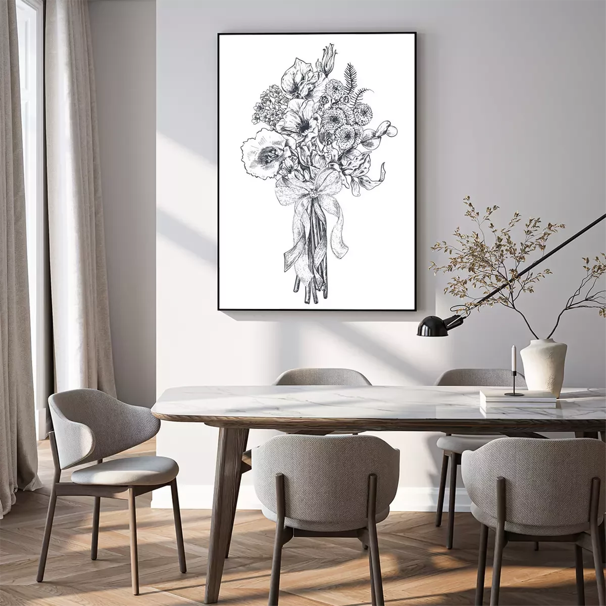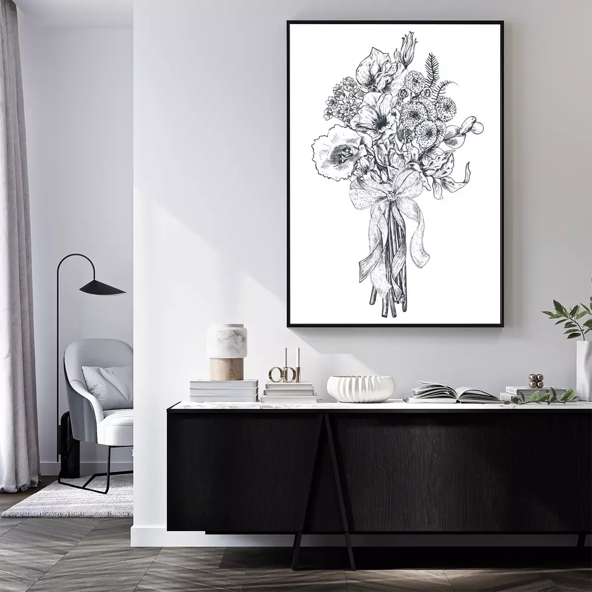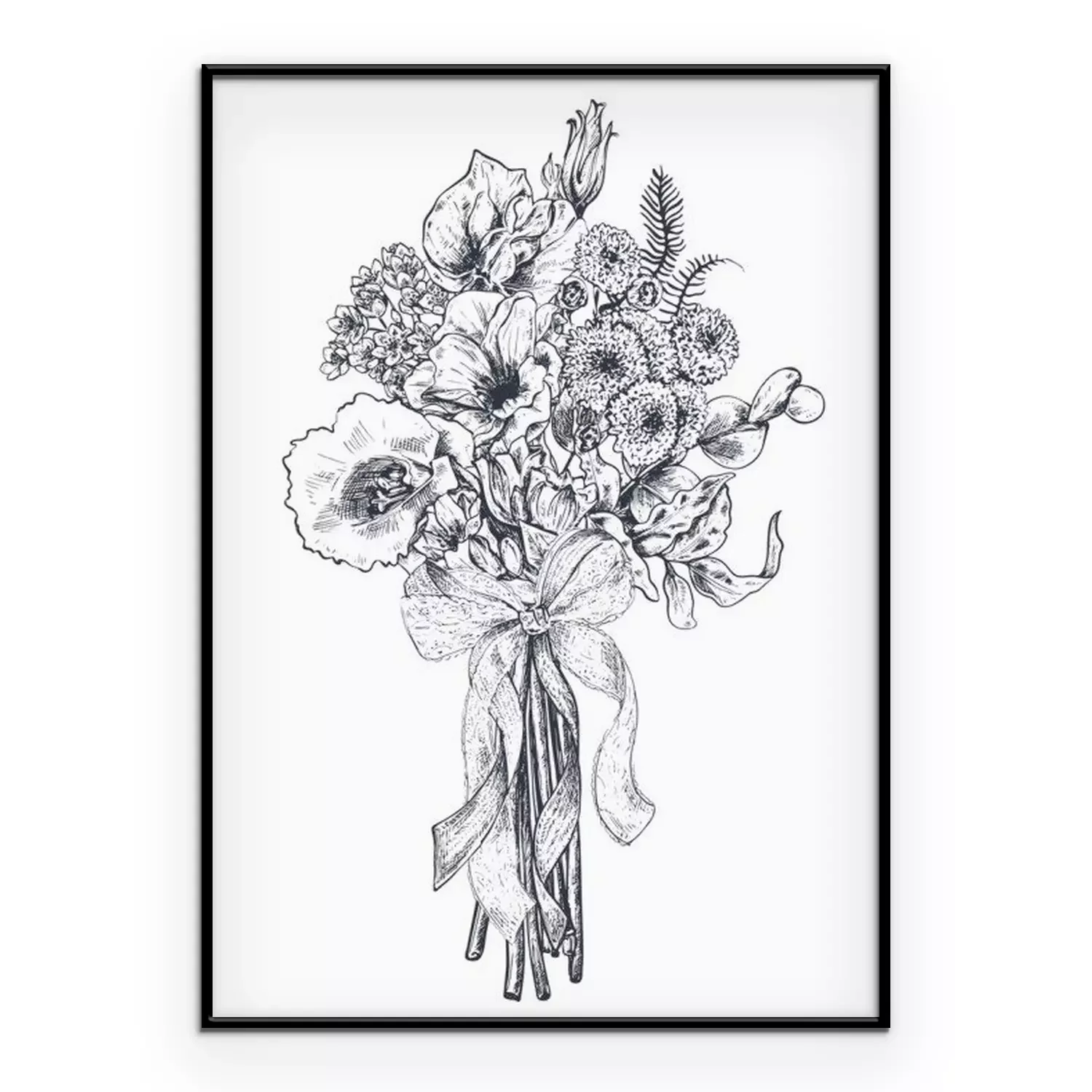 Poster : Fleurs noires et blanches en forme de bouquet