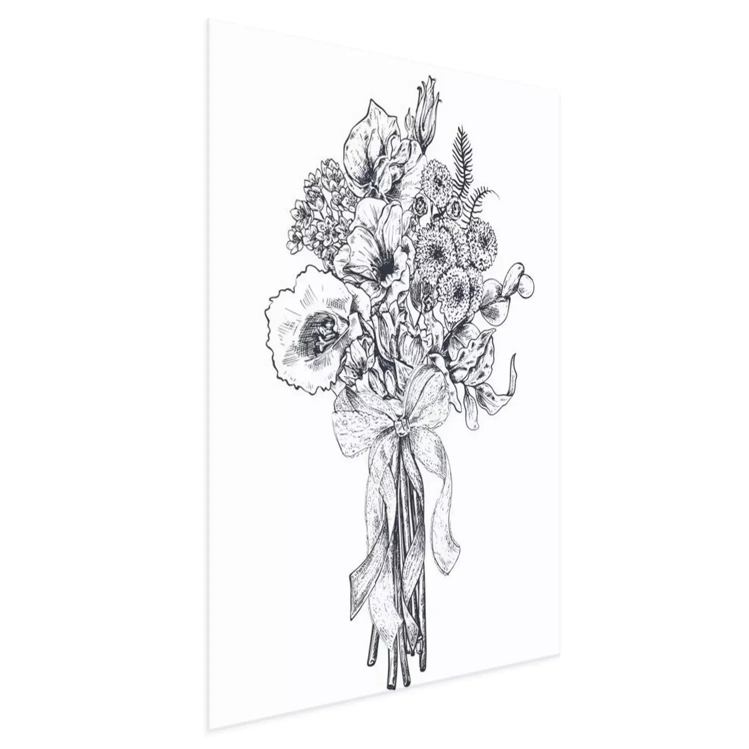 Poster  Fleurs noires et blanches en forme de bouquet