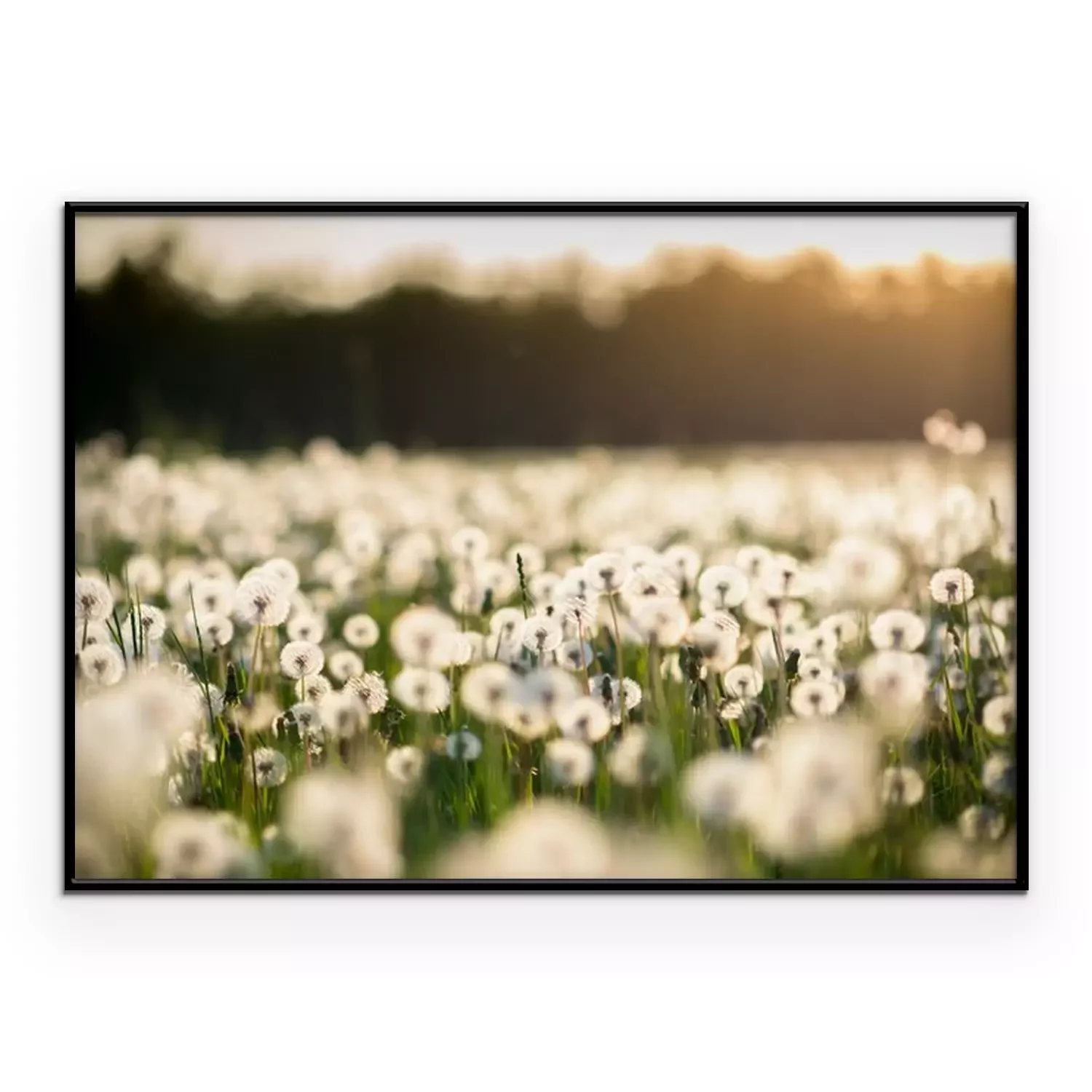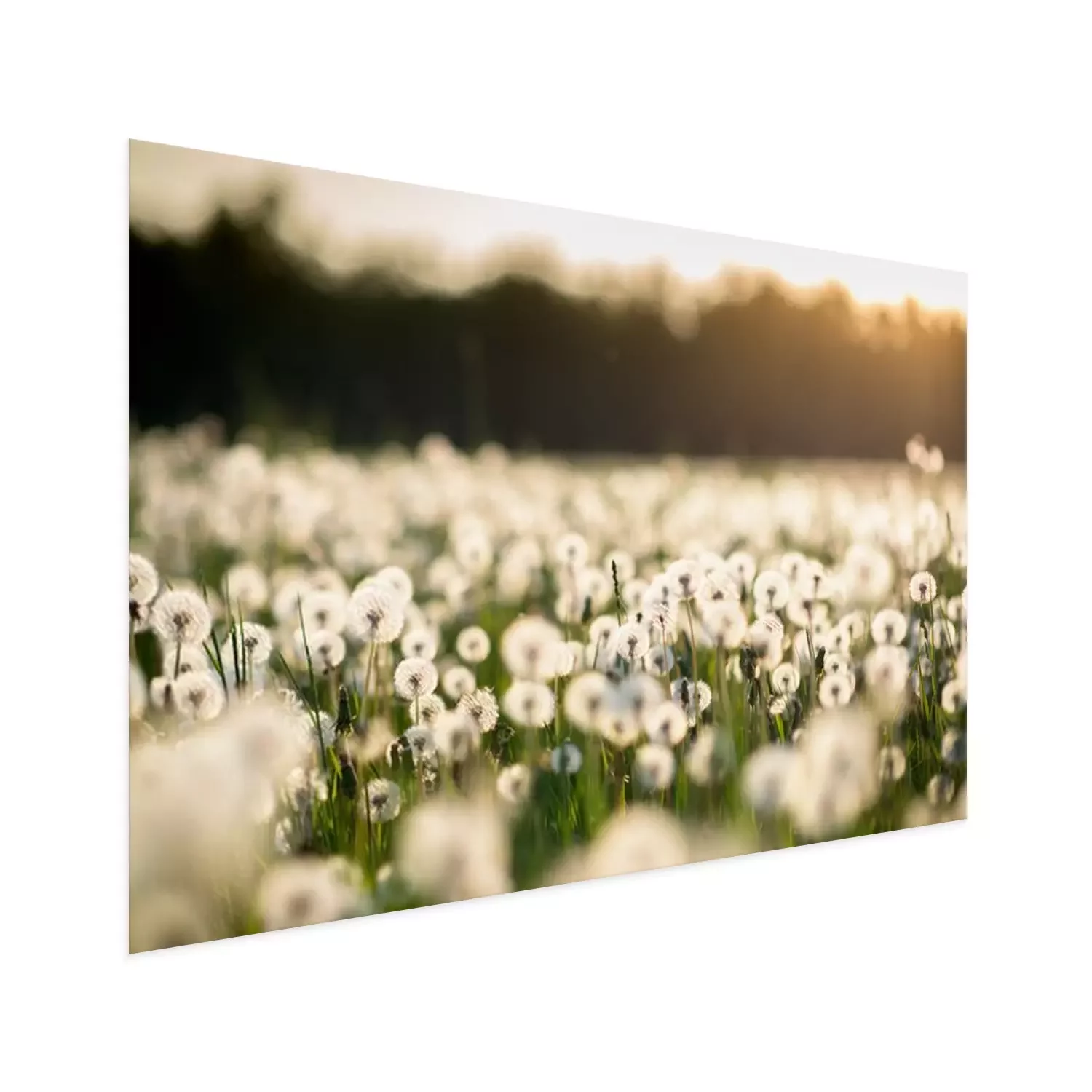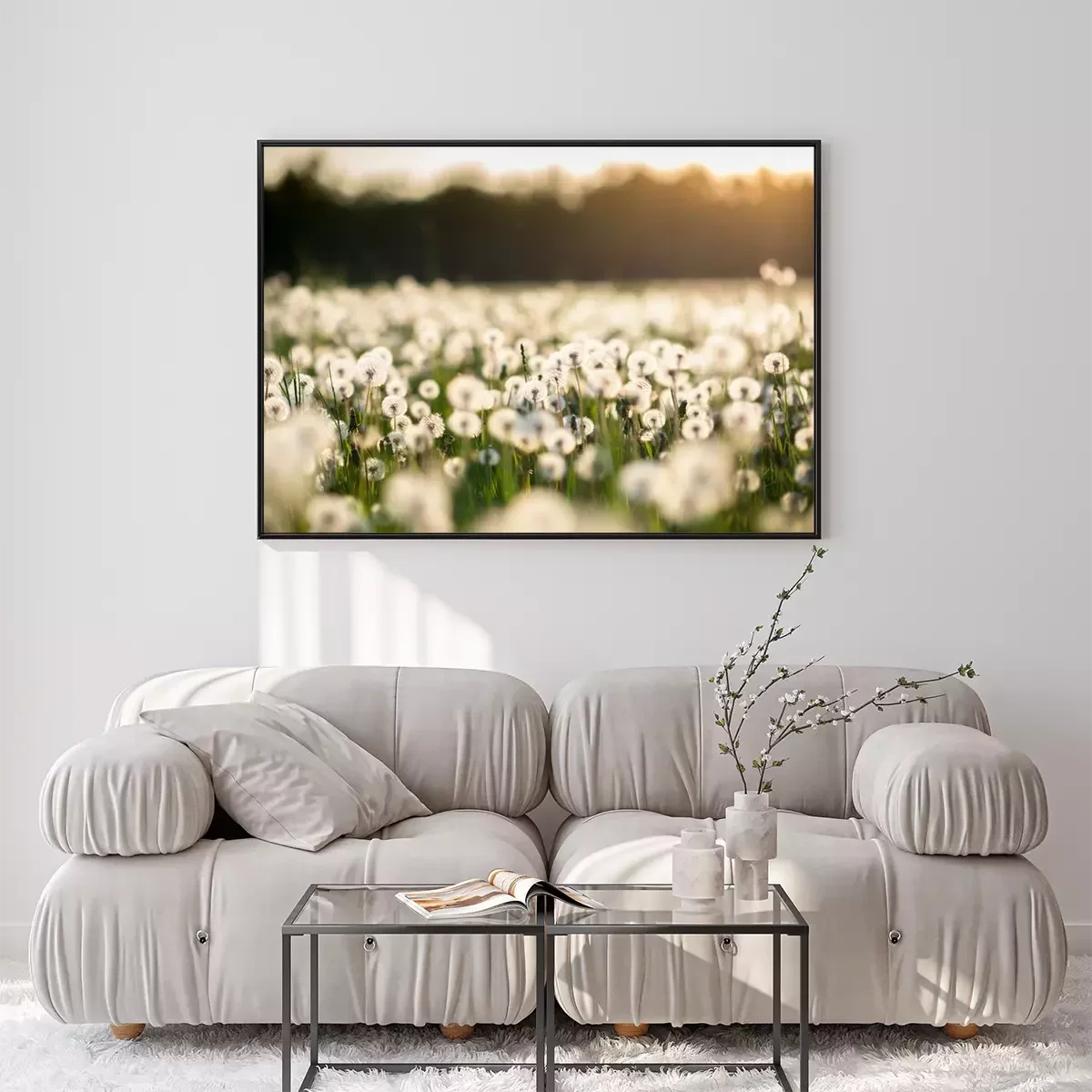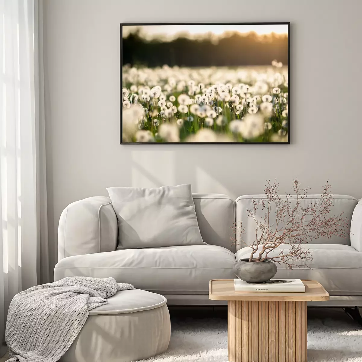Poster : Fleurs pelucheuses dans le pré au lever de soleil