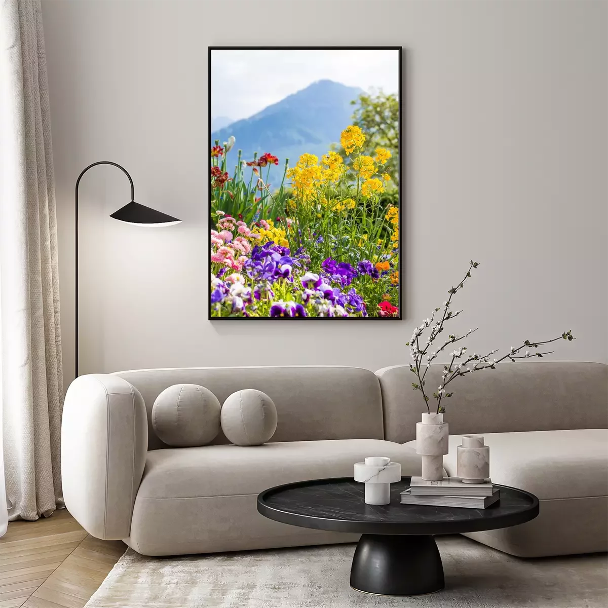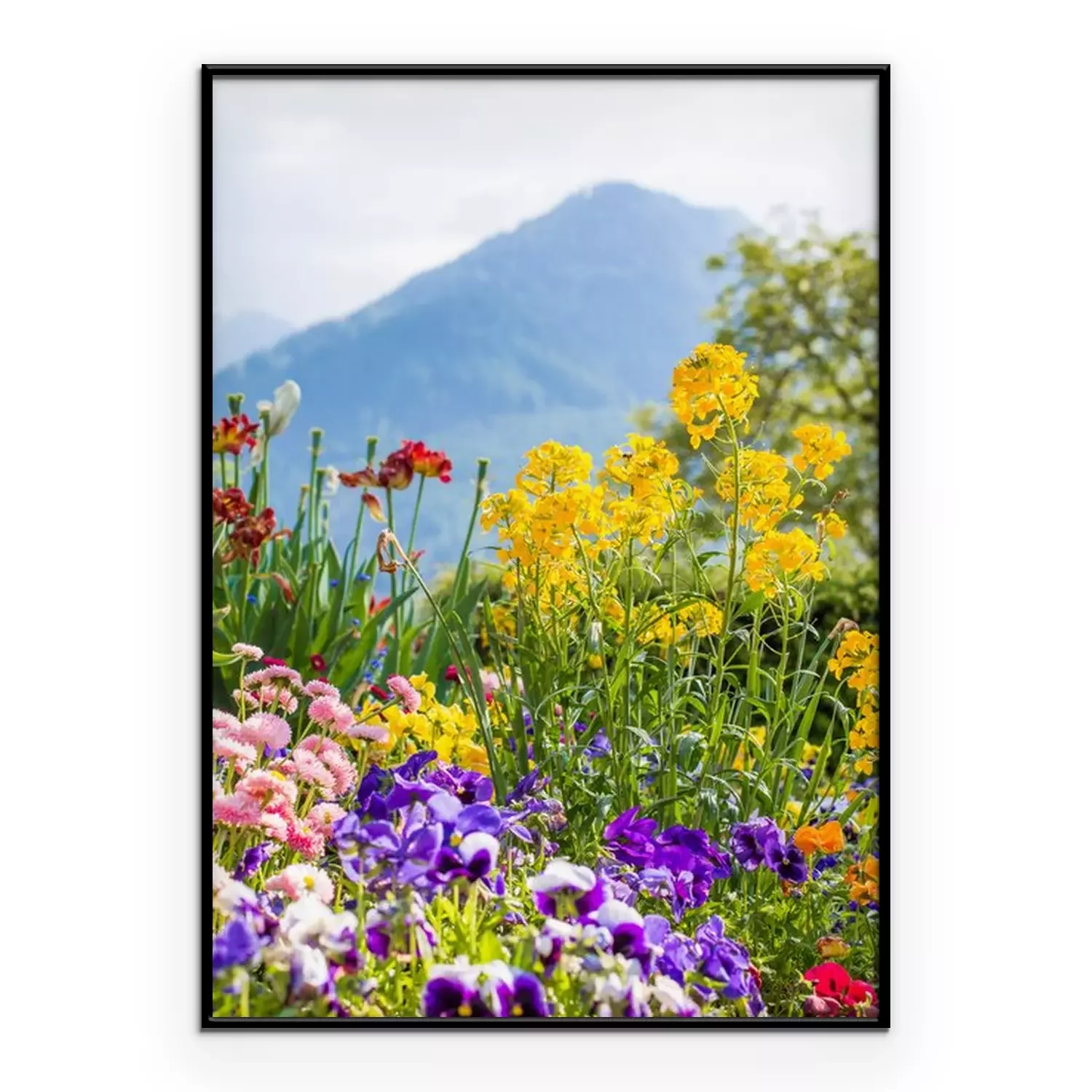 Poster  Flowers on the streets of Interlaken. Flowers and mountains