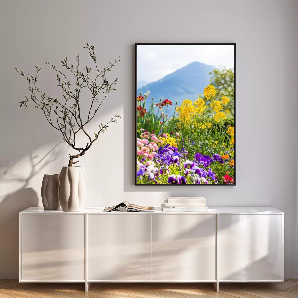 Poster : Flowers on the streets of Interlaken. Flowers and mountains