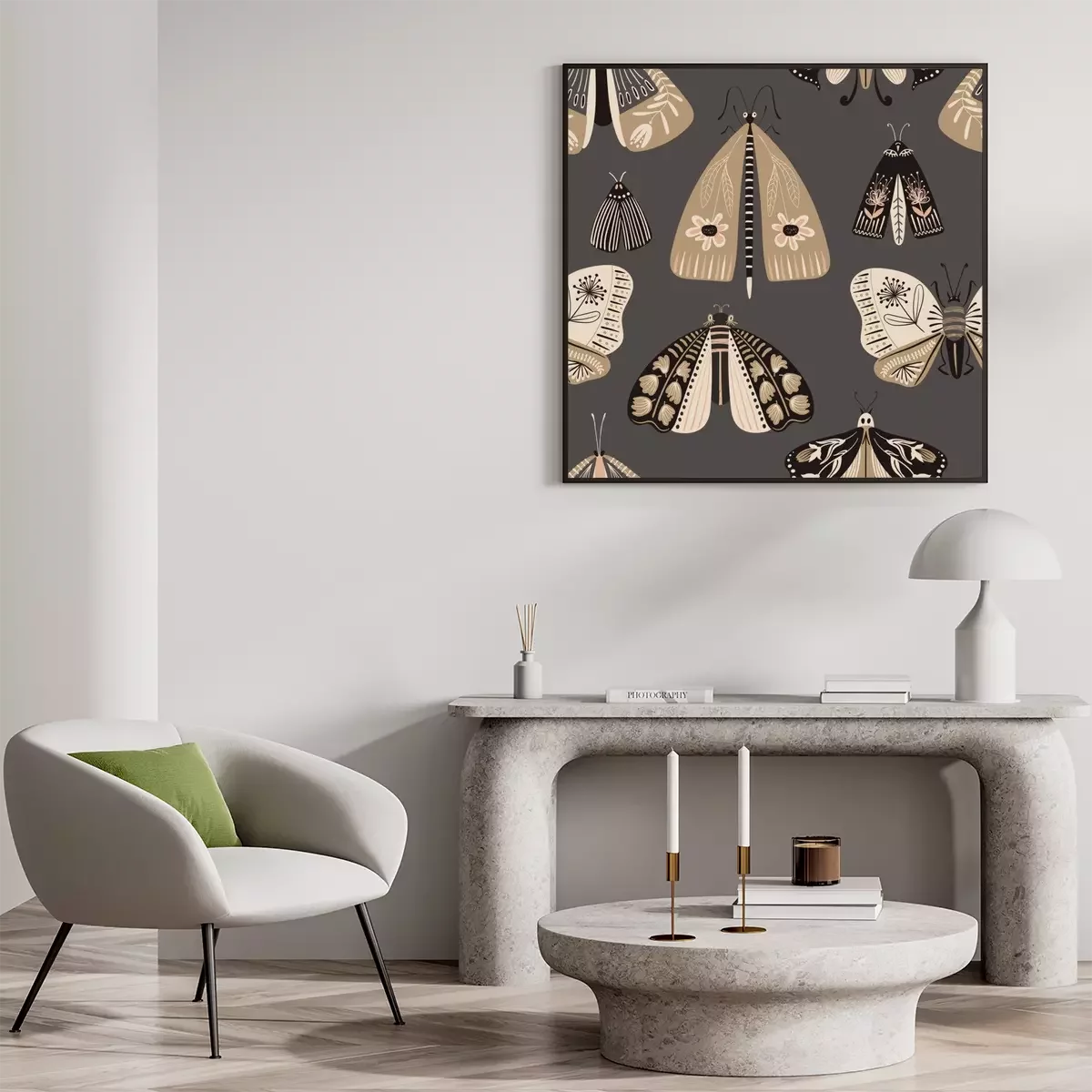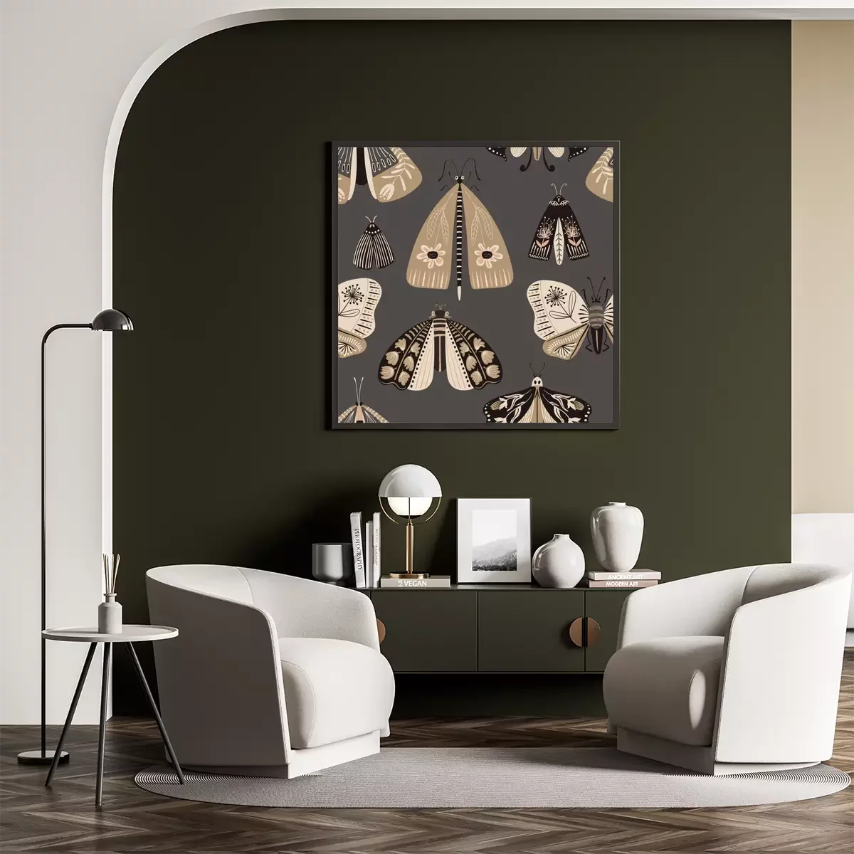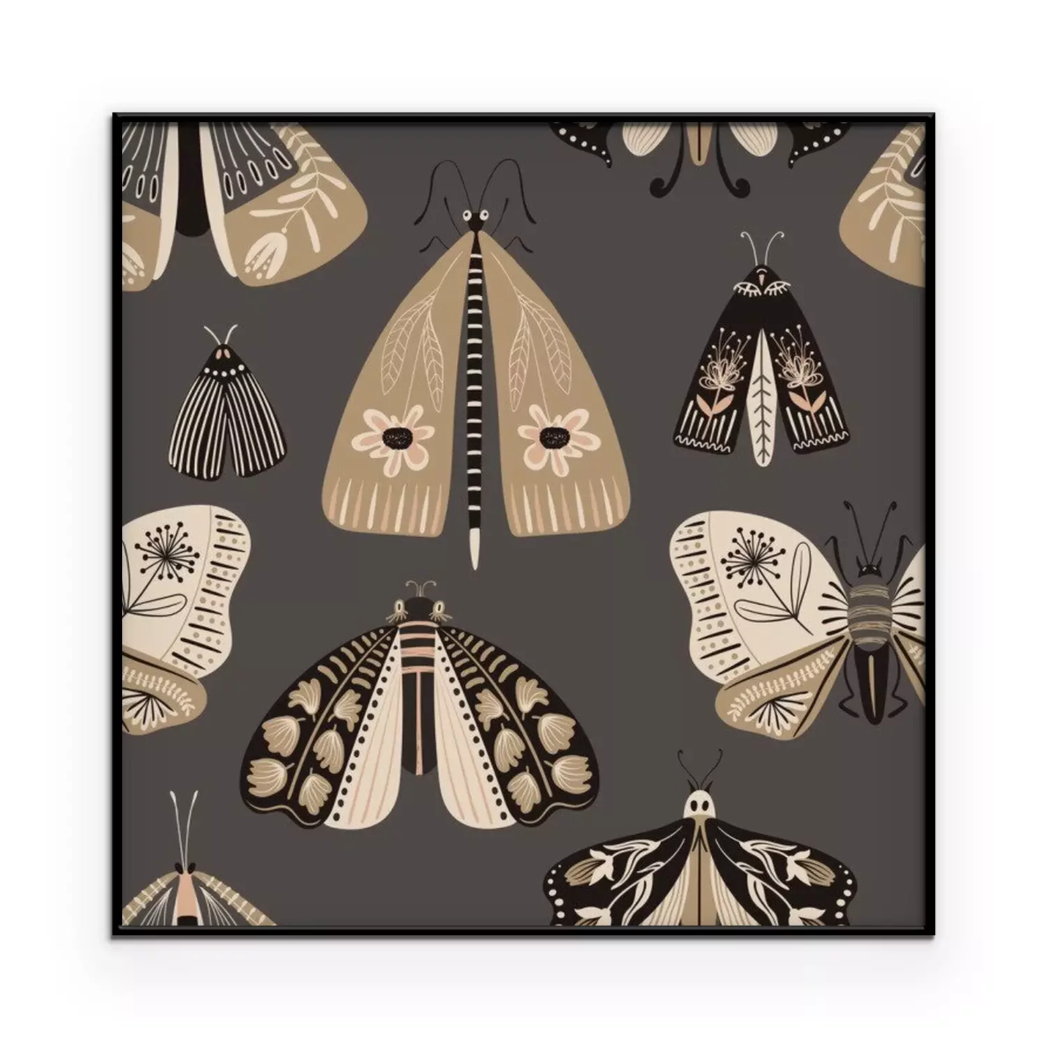 Poster  Folk Art Seamless Pattern With Moths.