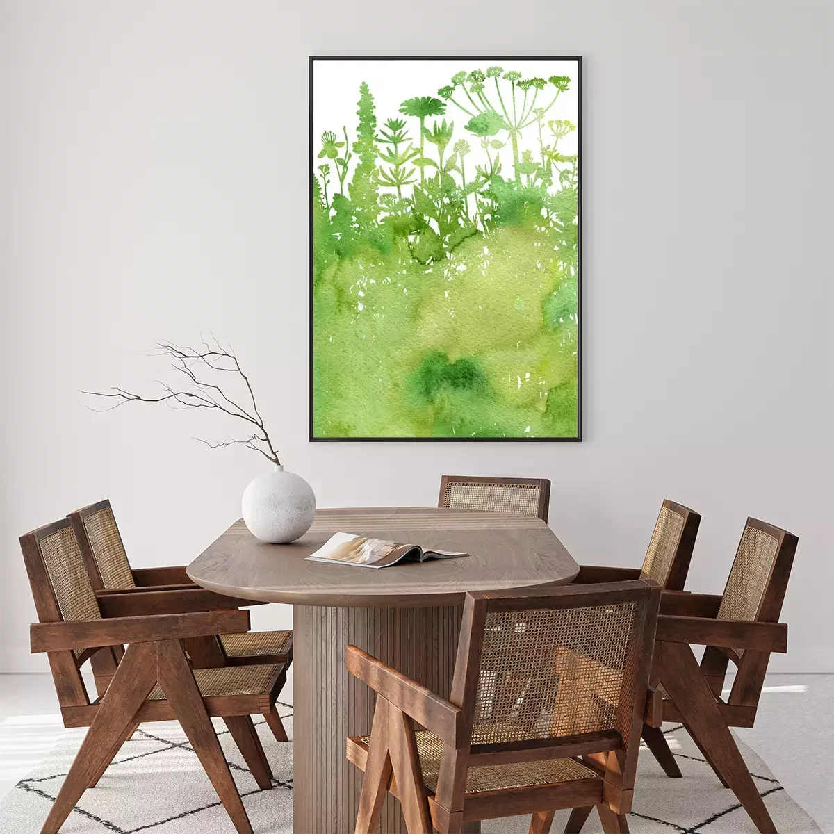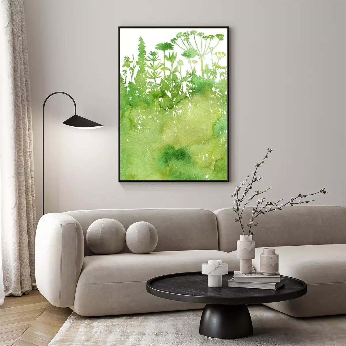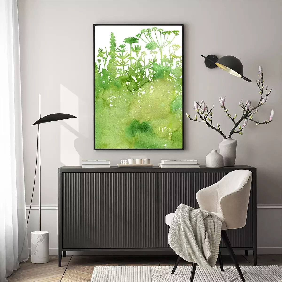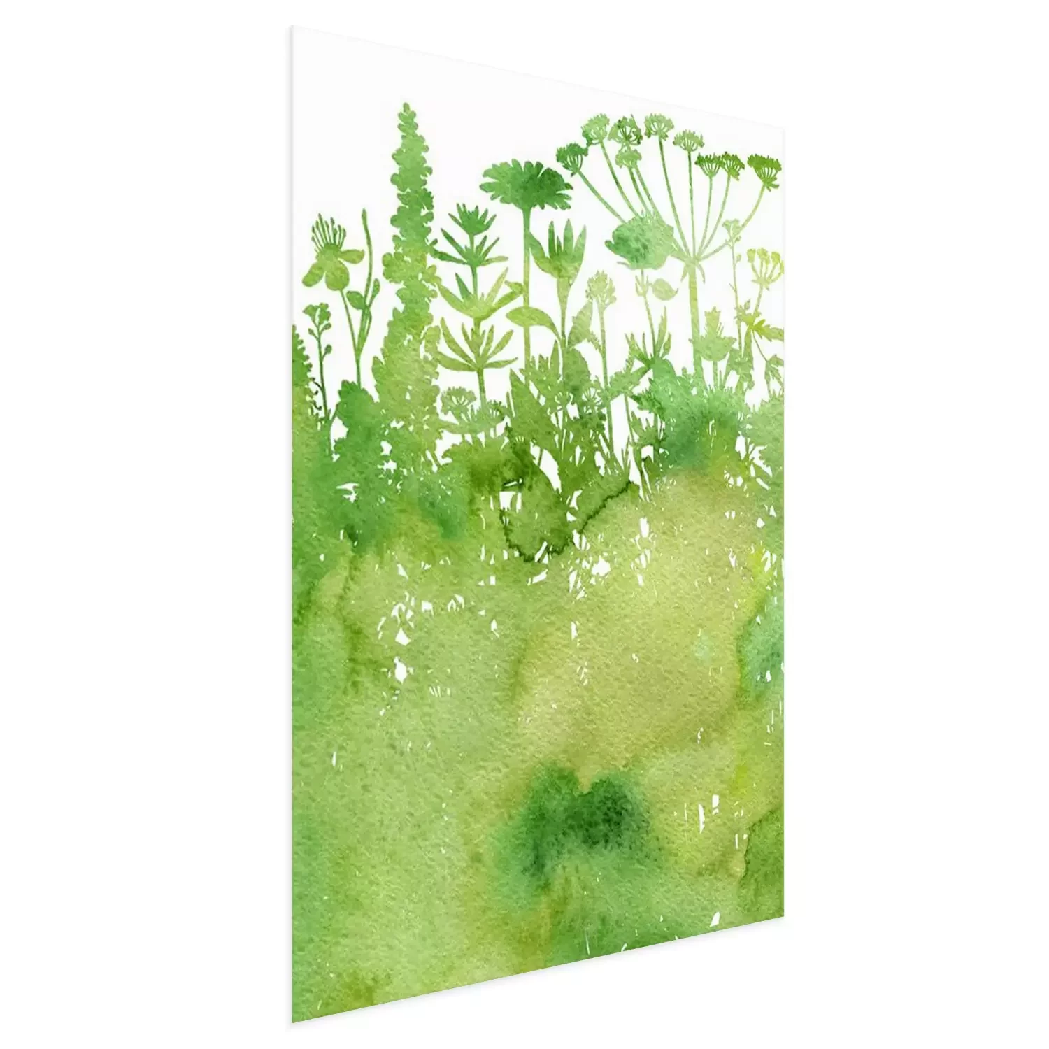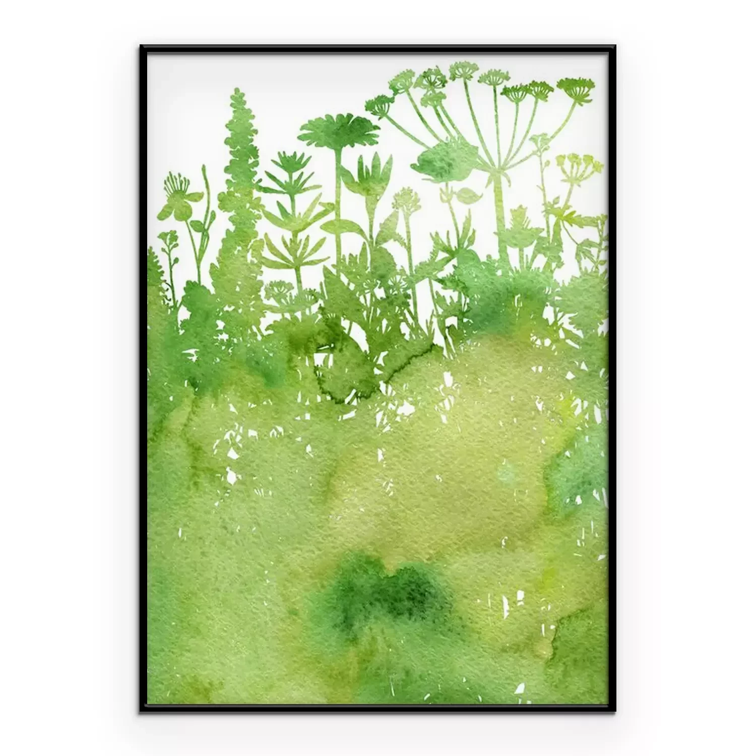 Poster : Fond aquarelle avec dessin d'herbes et de fleurs