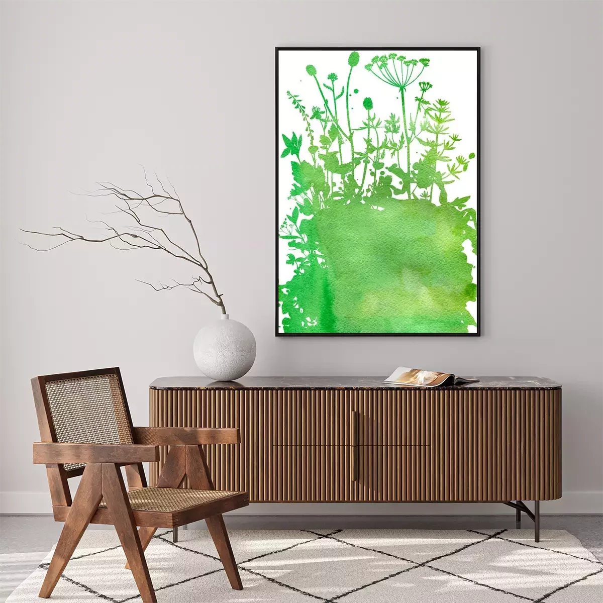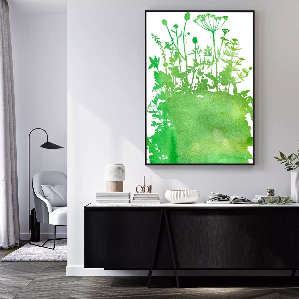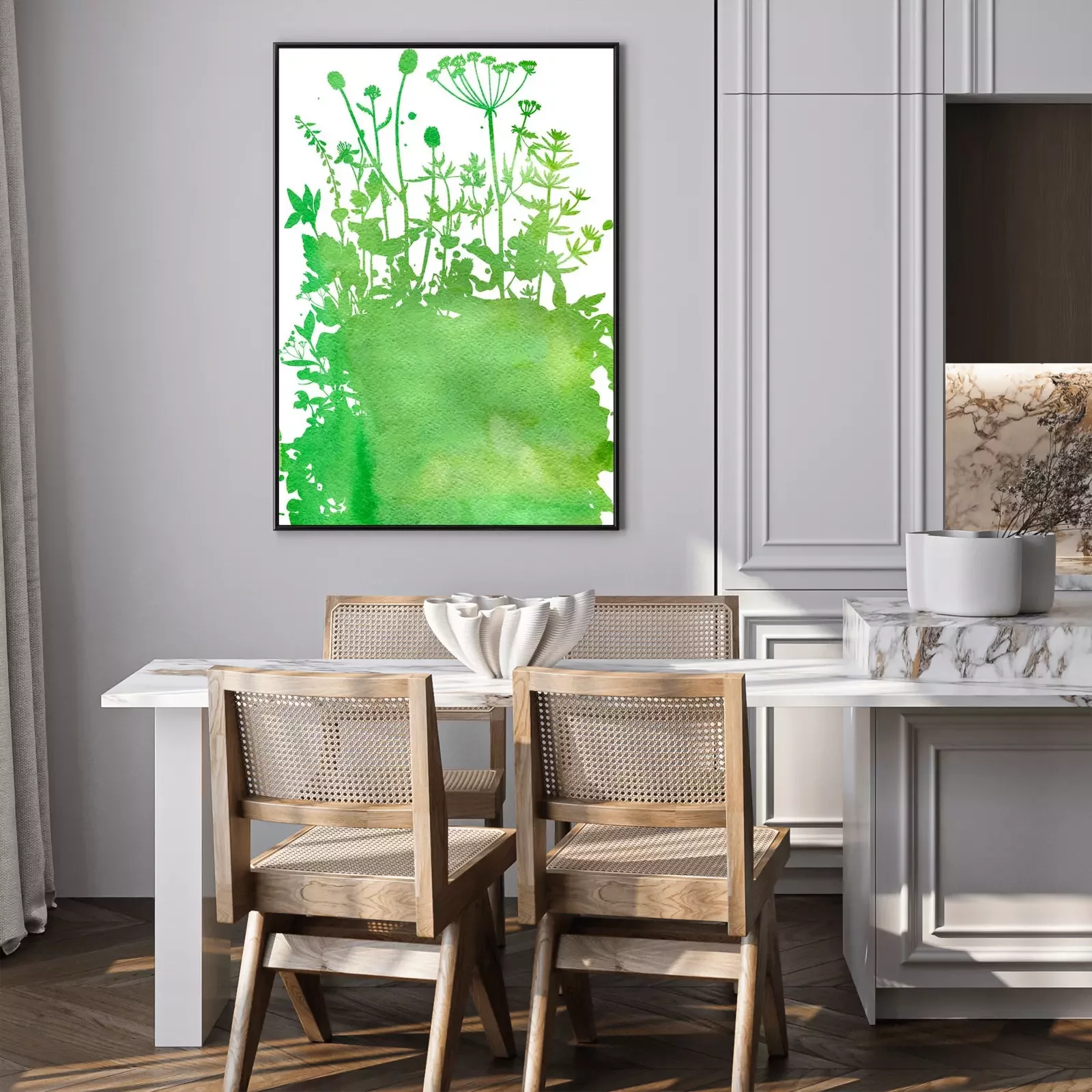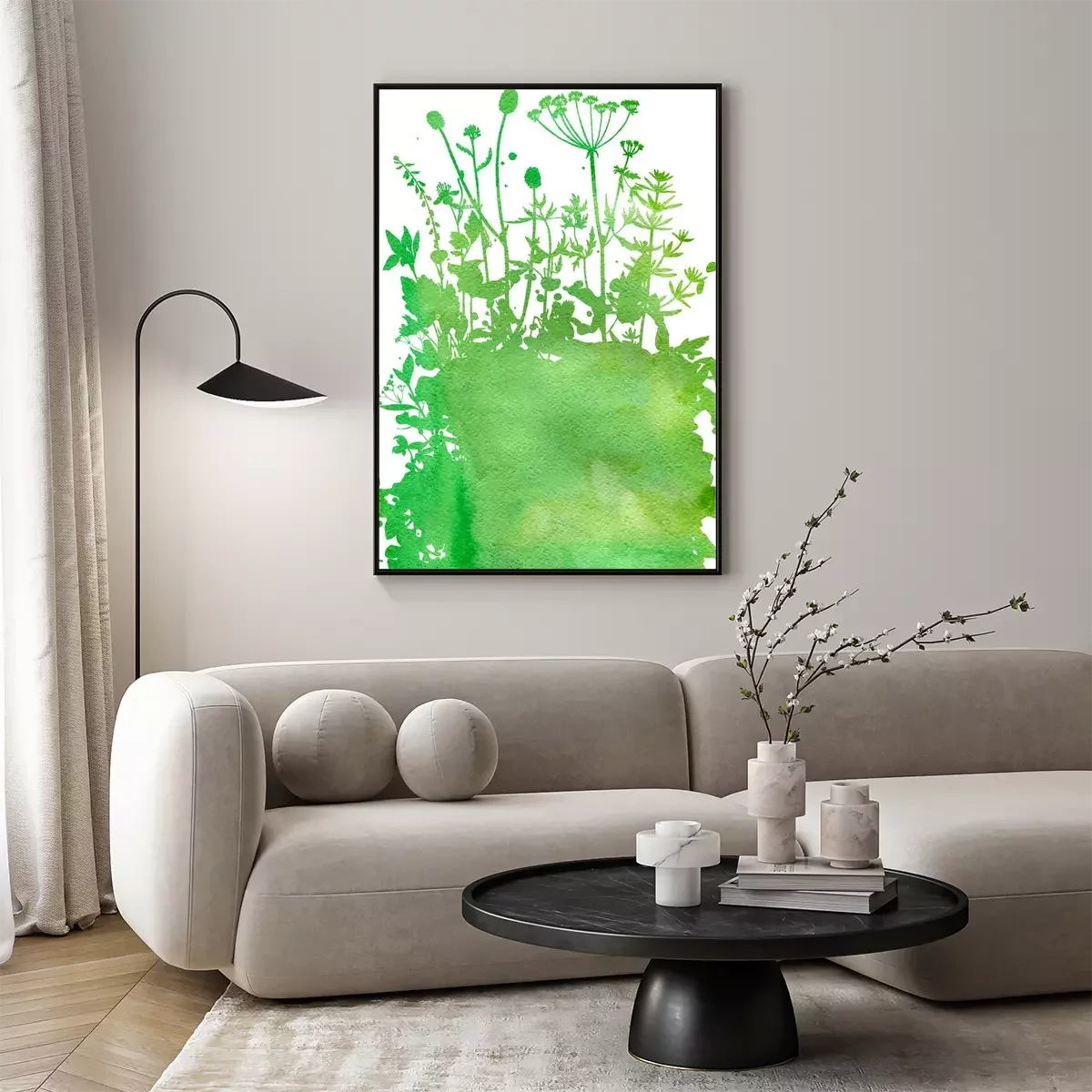 Fond aquarelle avec dessin d'herbes et de fleurs