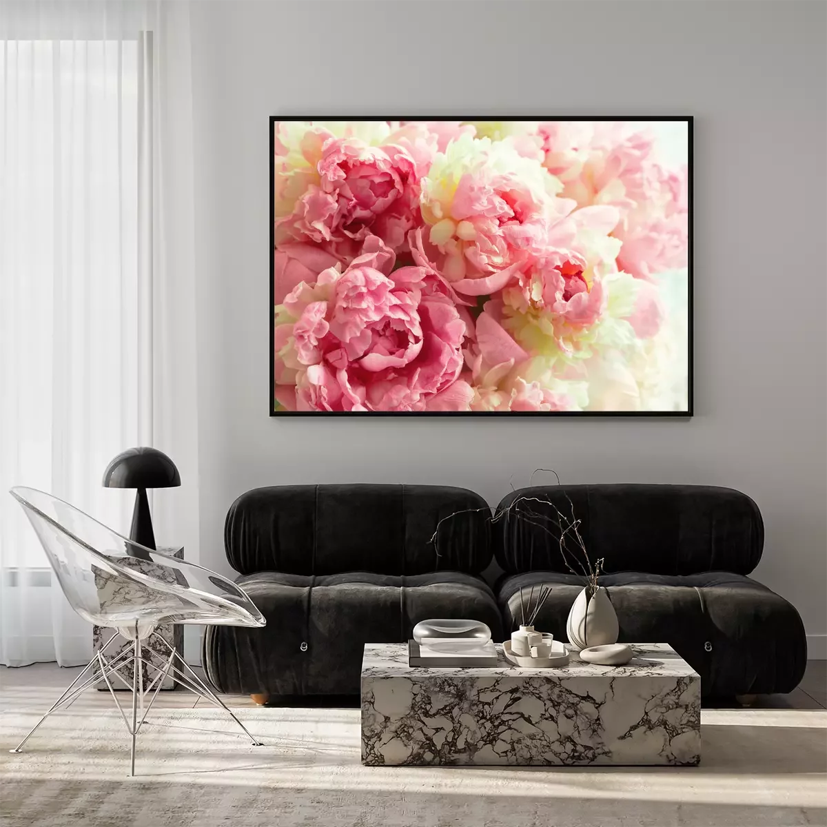 Poster : Fond de fleurs de pivoines roses moelleuses
