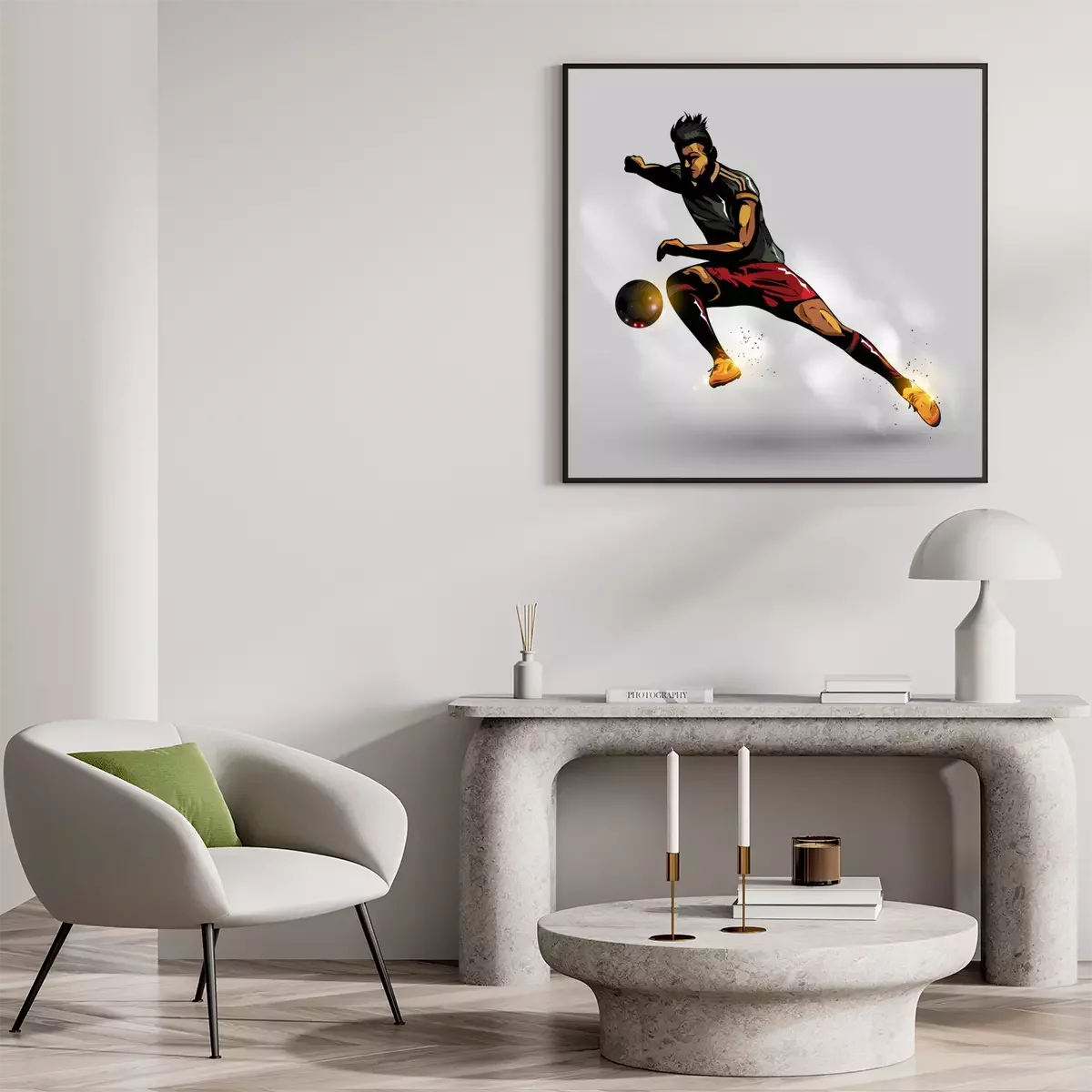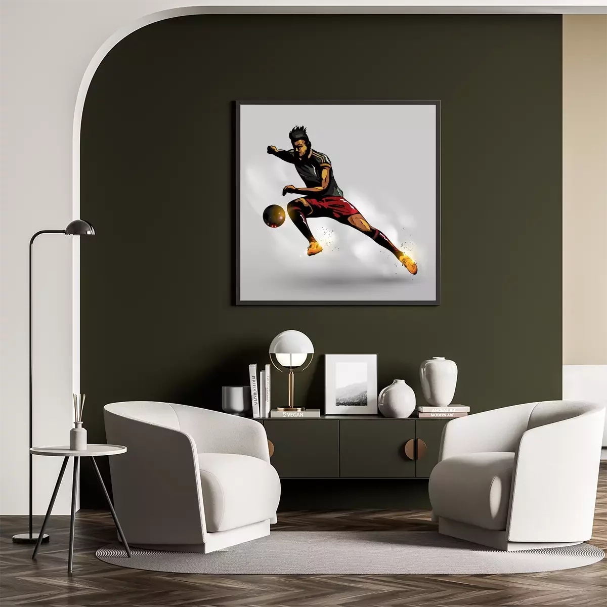 Silhouette d'un footballeur en mouvement dynamique avec un ballon