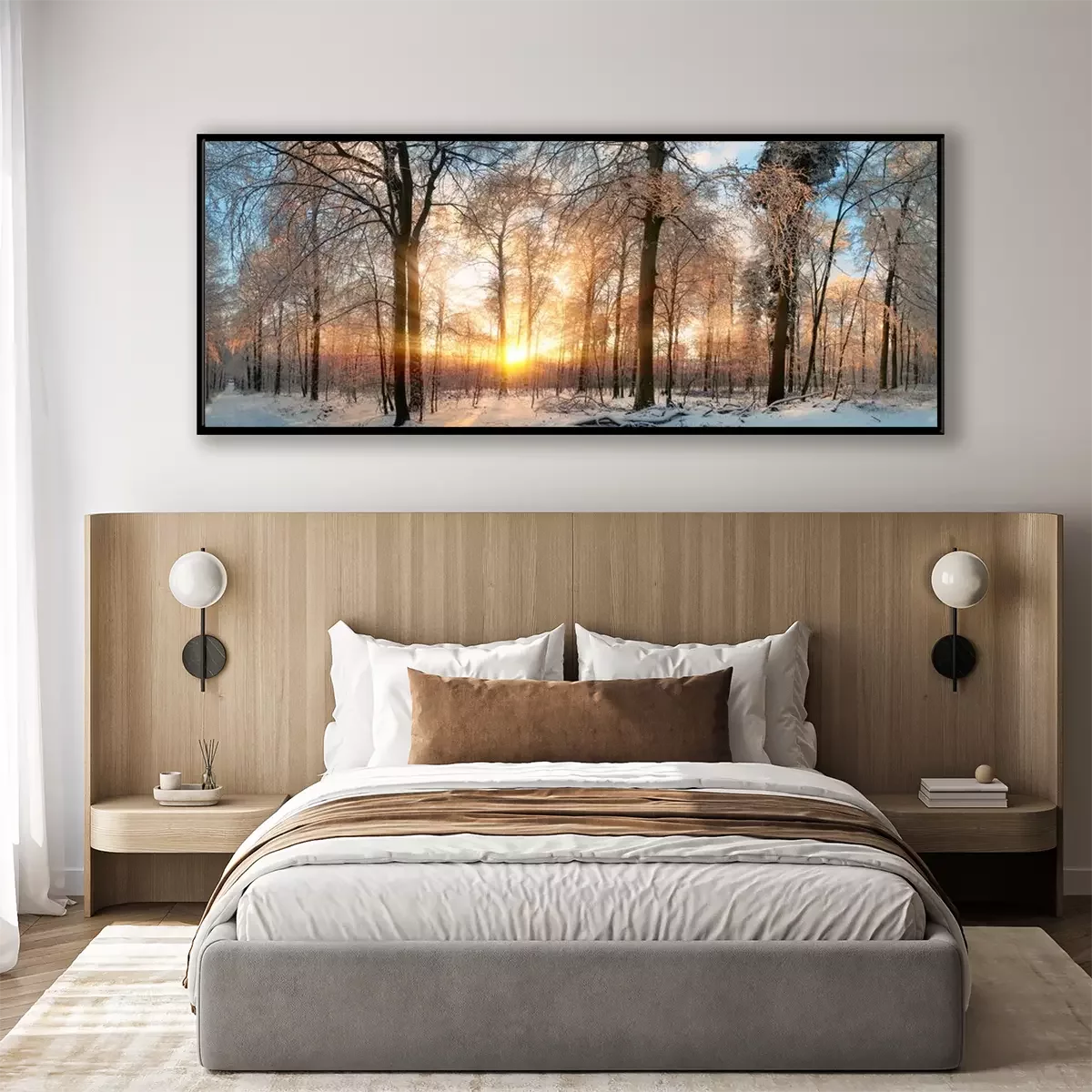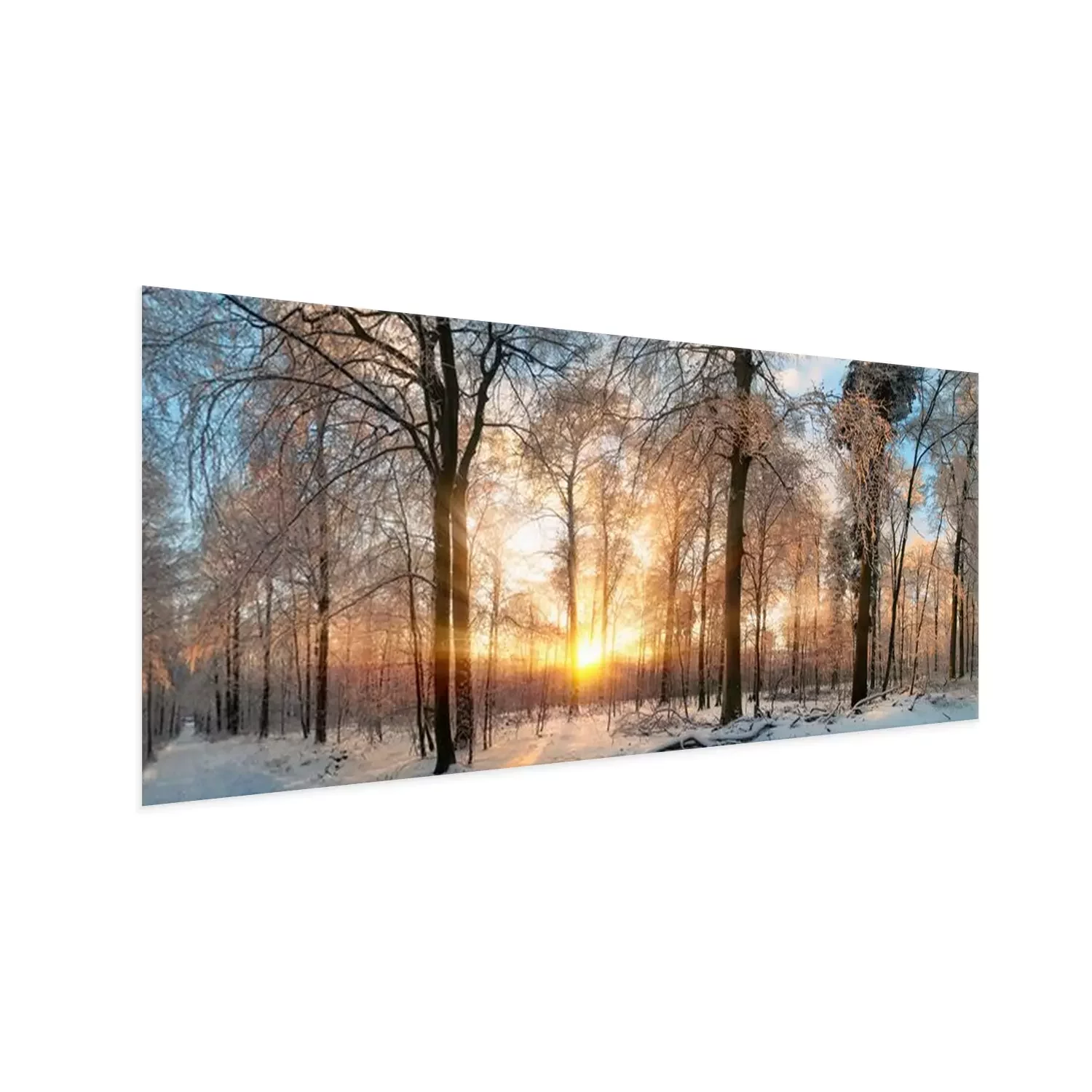 Poster  Forêt d'hiver aux rayons du soleil couchant