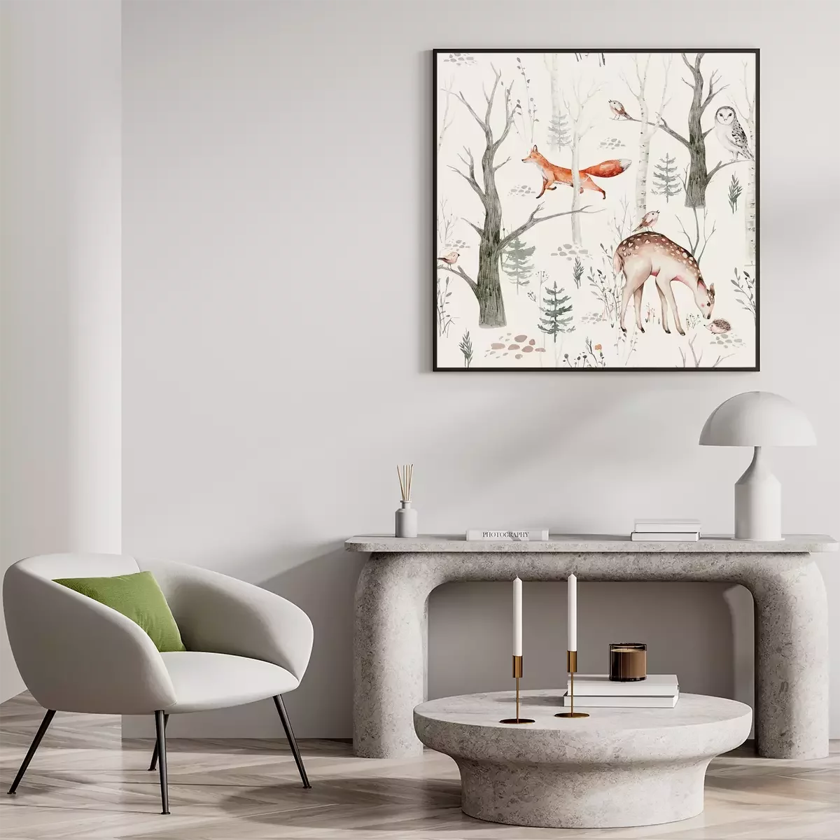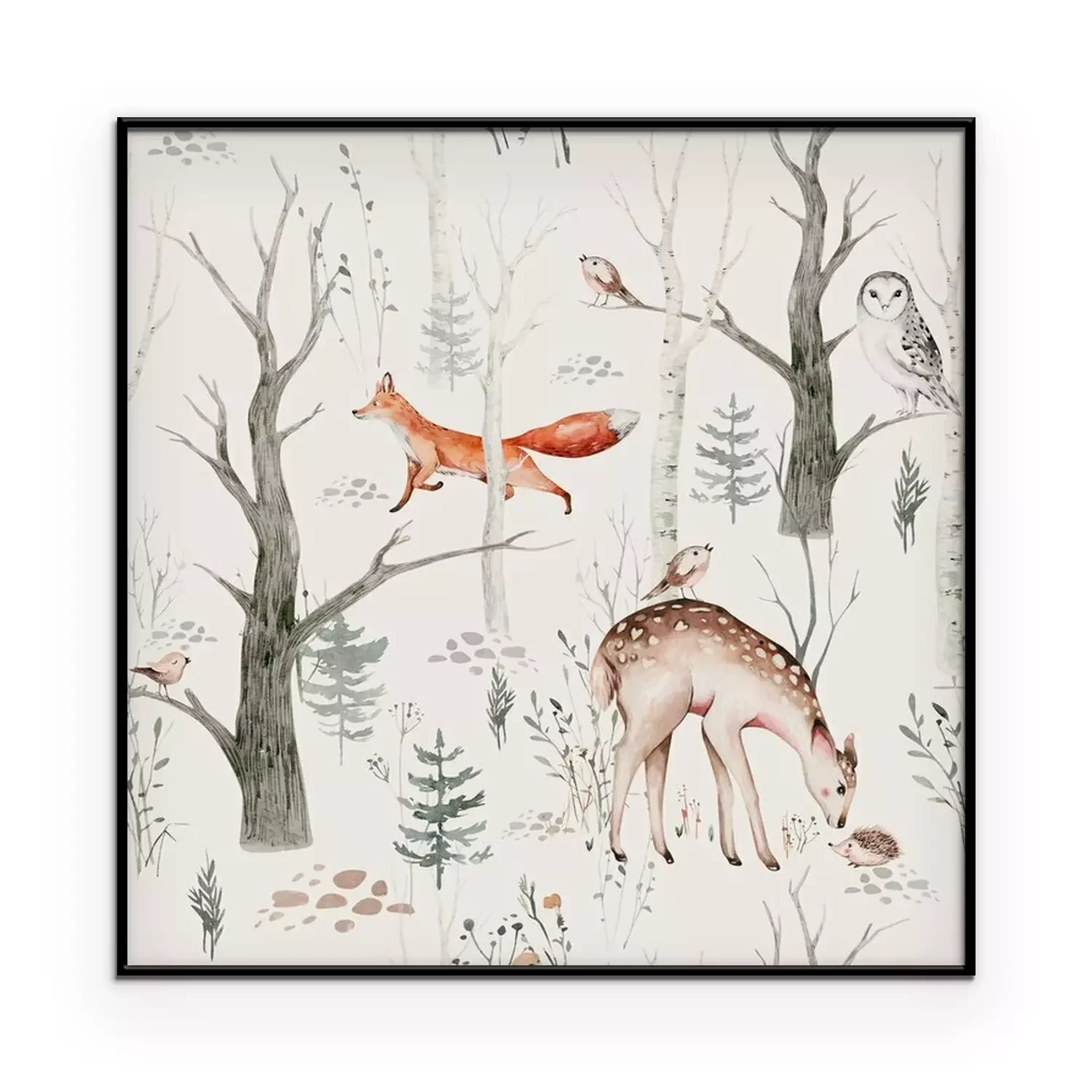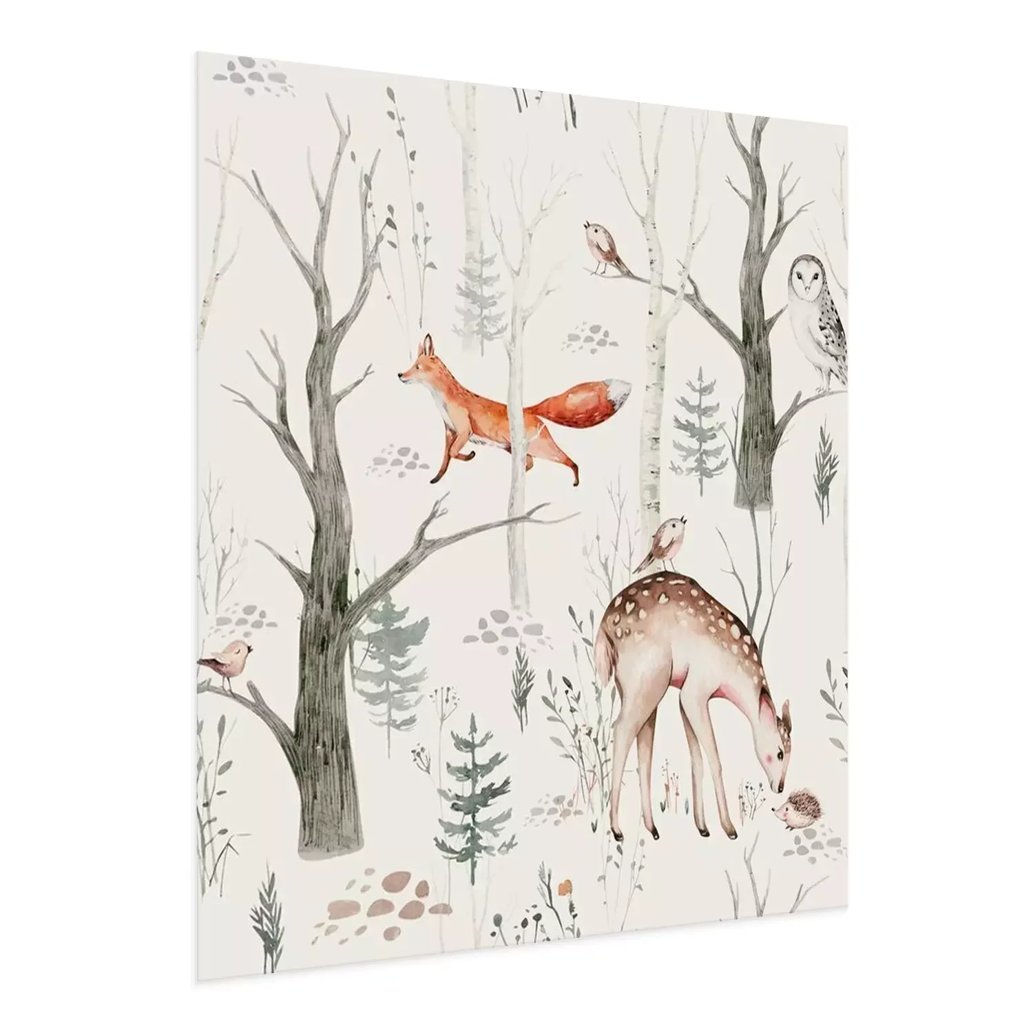 Animaux de la forêt dans un paysage forestier en aquarelle